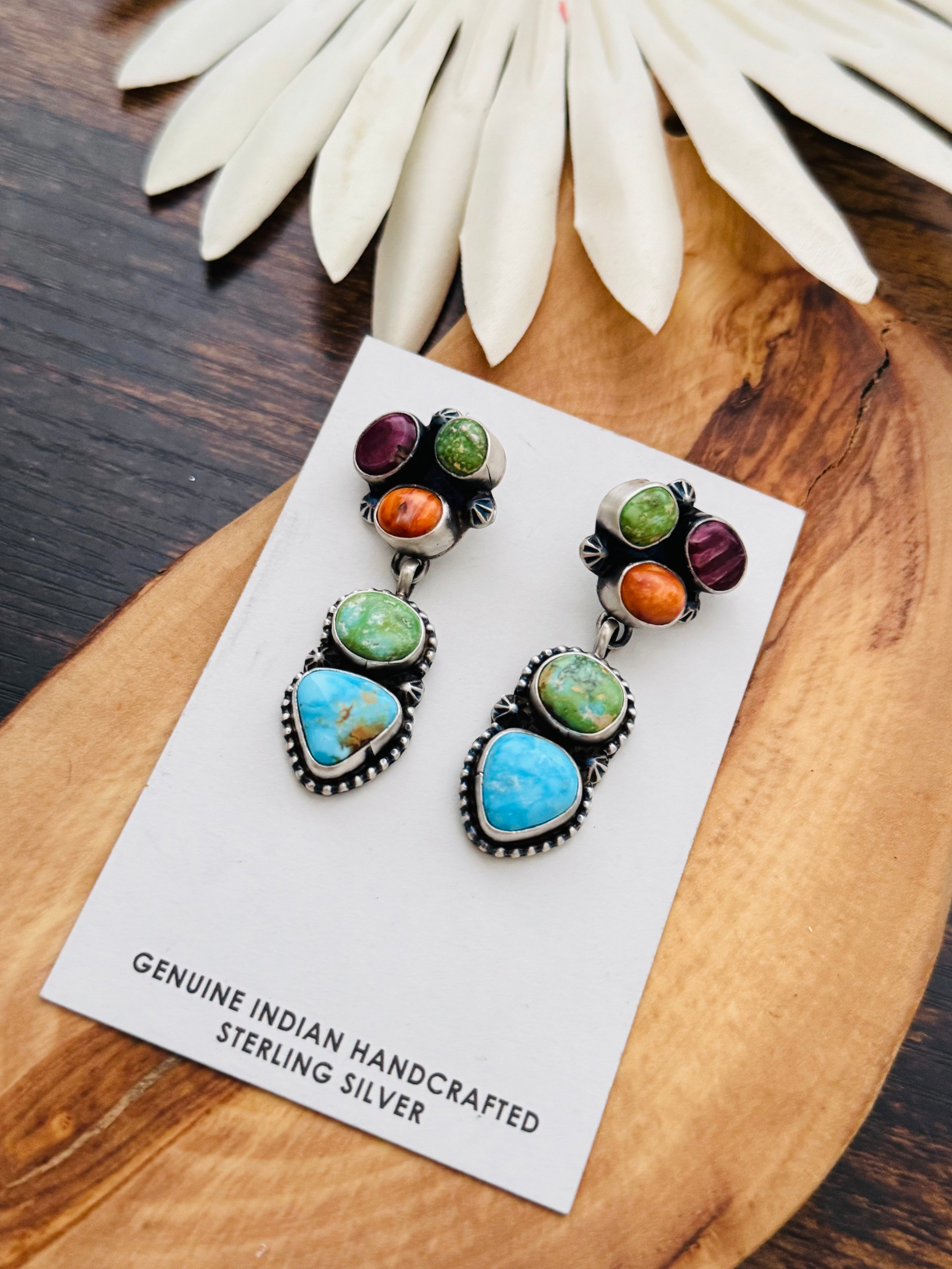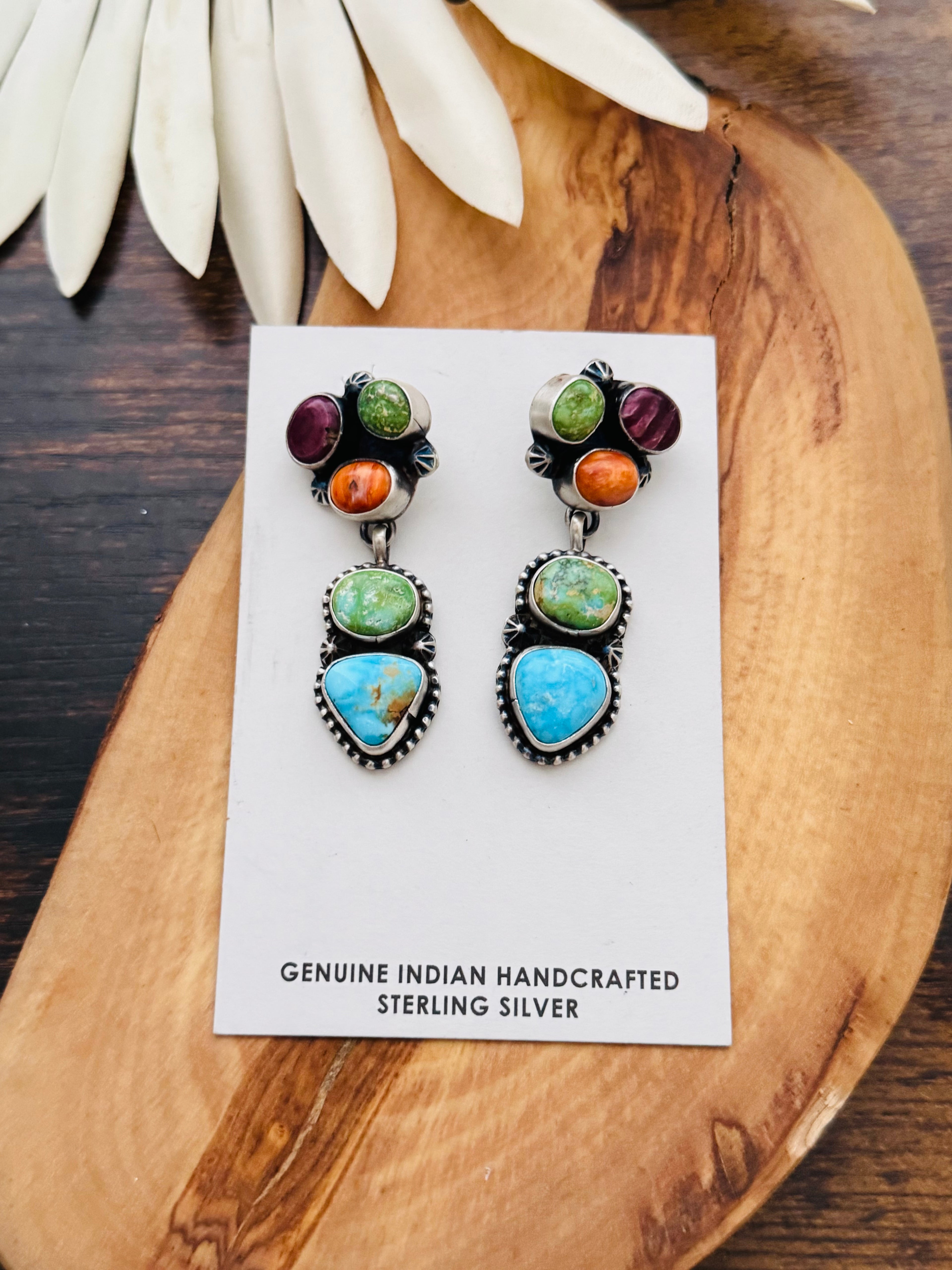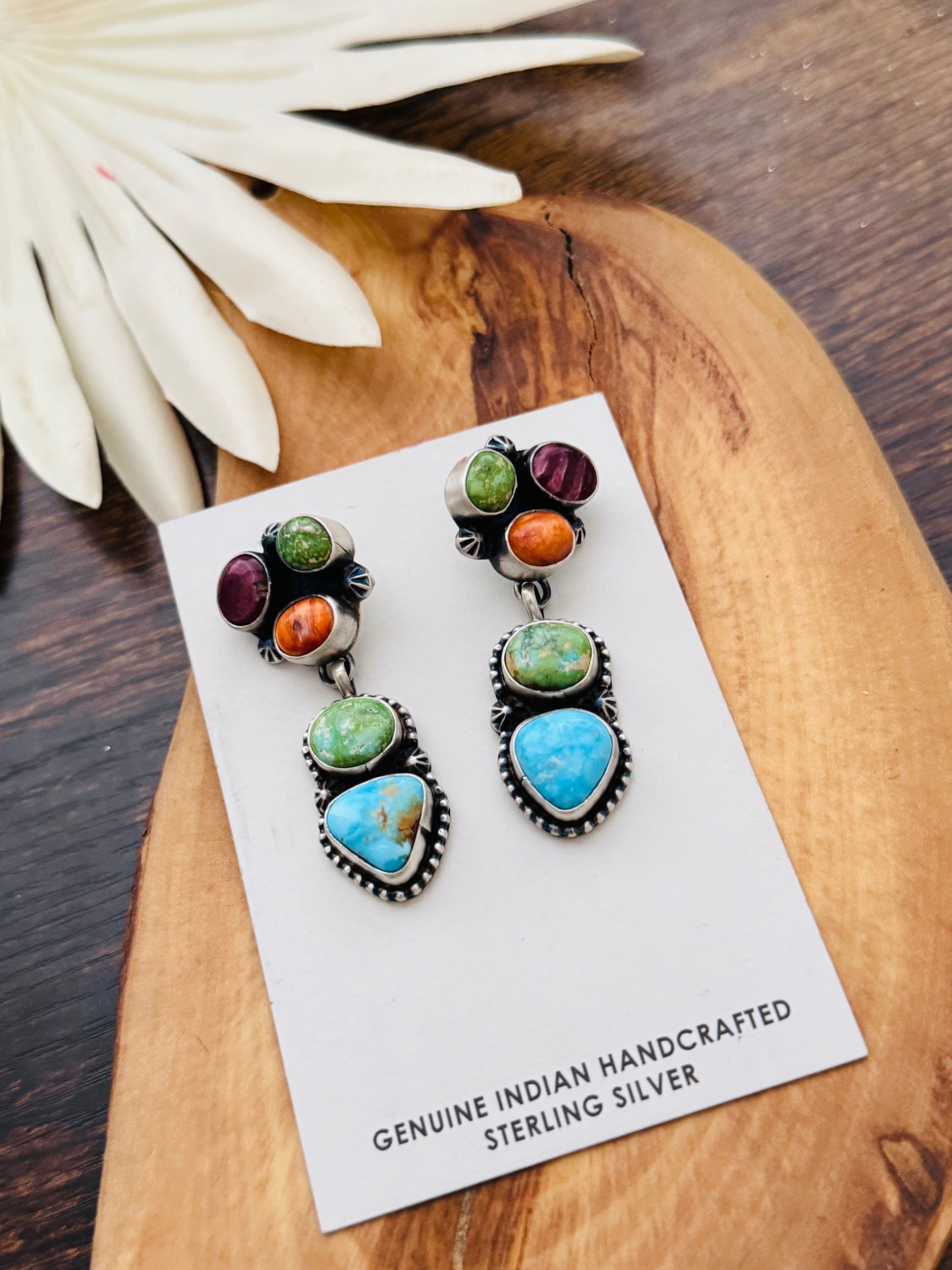 Lorenzo Juan Multi Stone & Sterling Silver Post Dangle Cluster Earrings