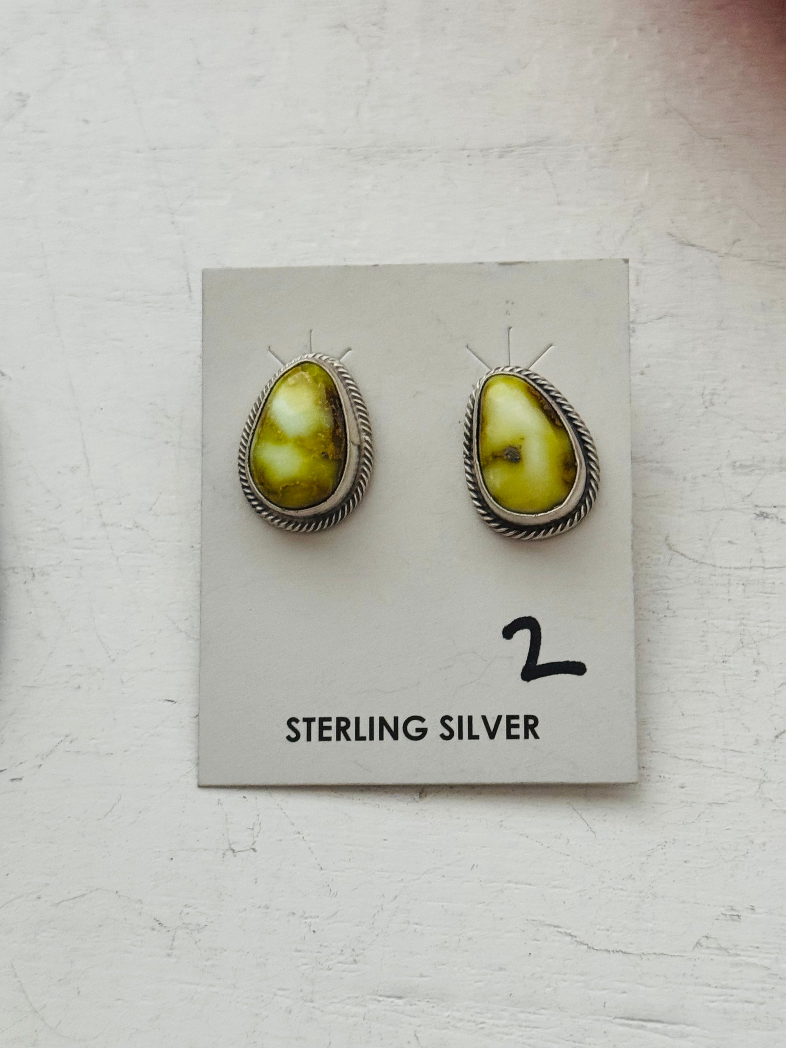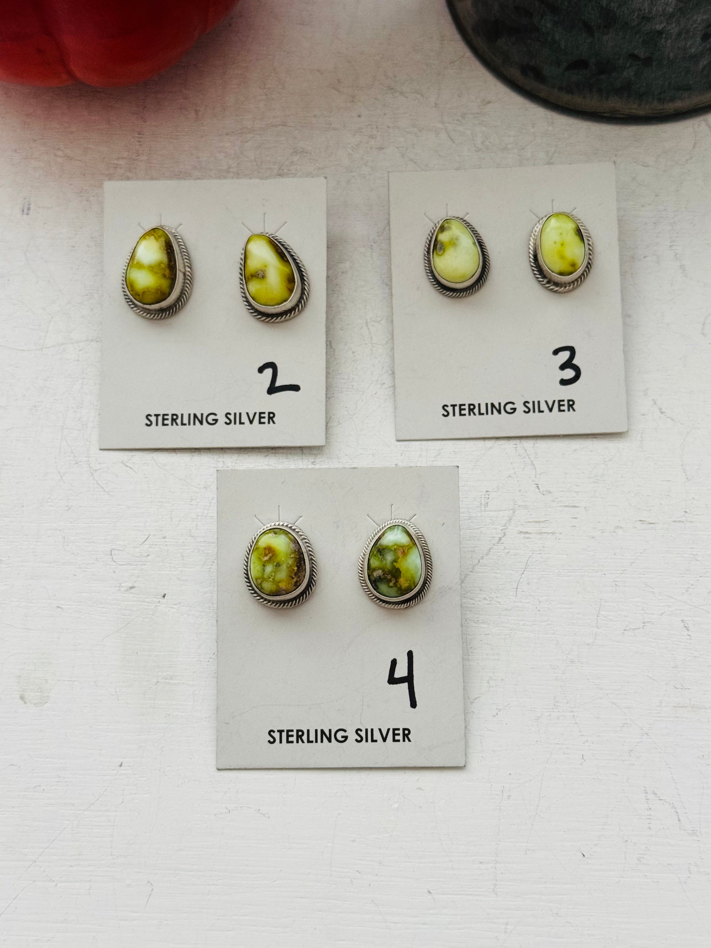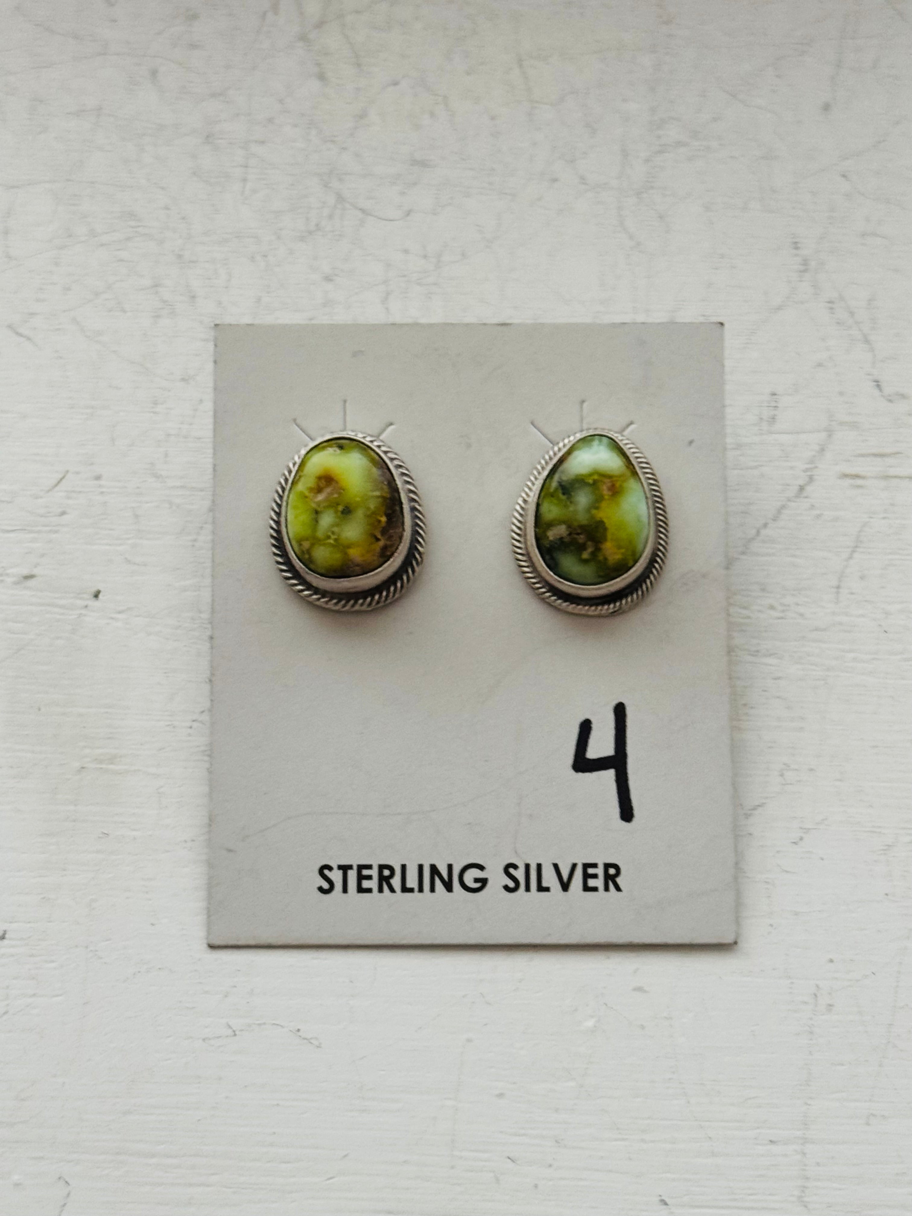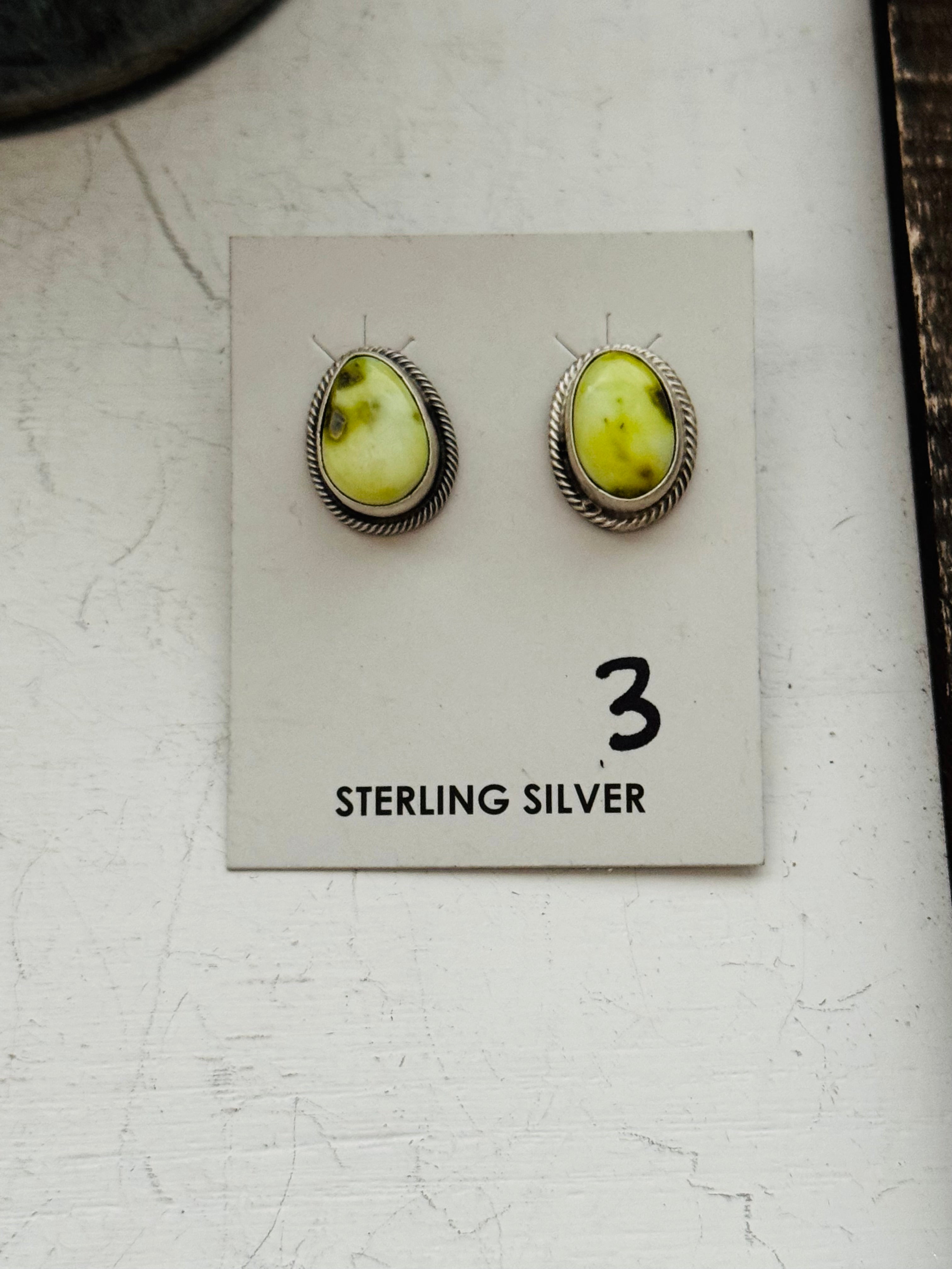 Sheryl Martinez Palomino Variscite & Sterling Silver Post Earrings
