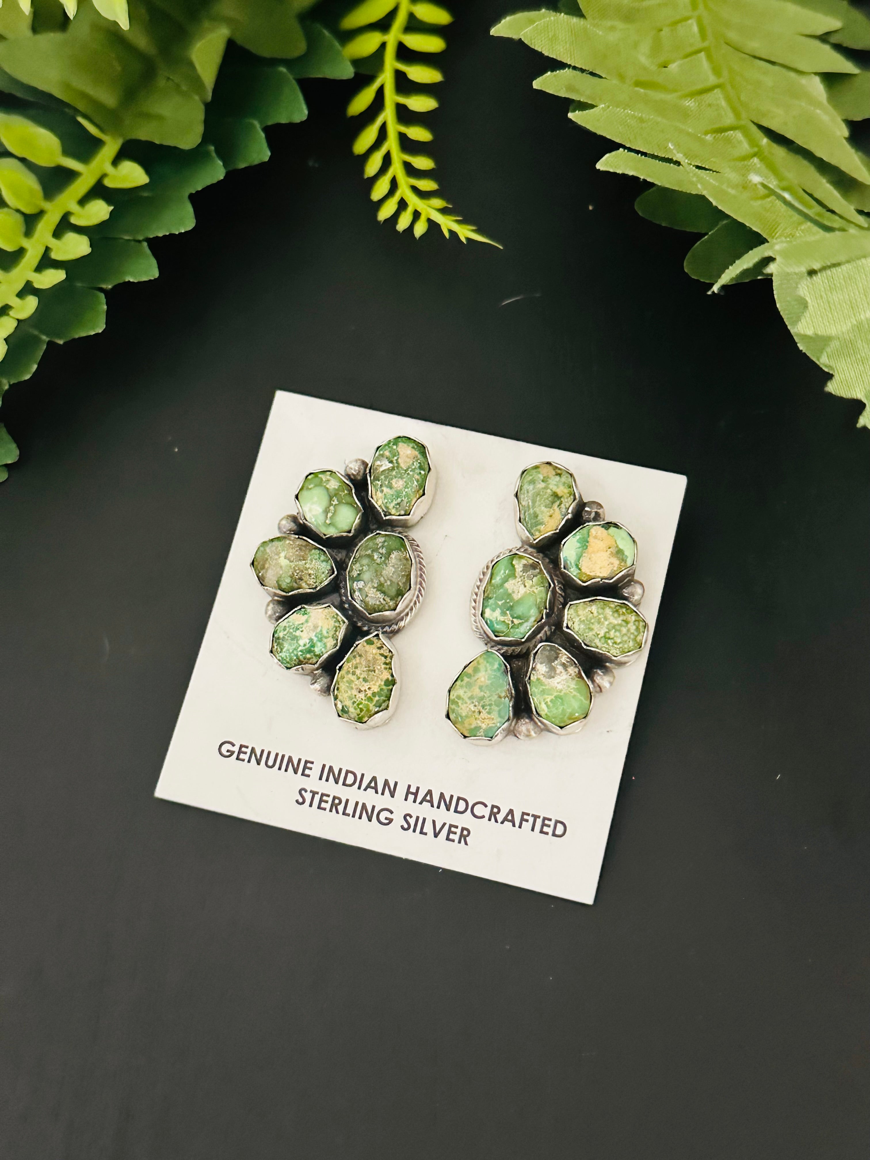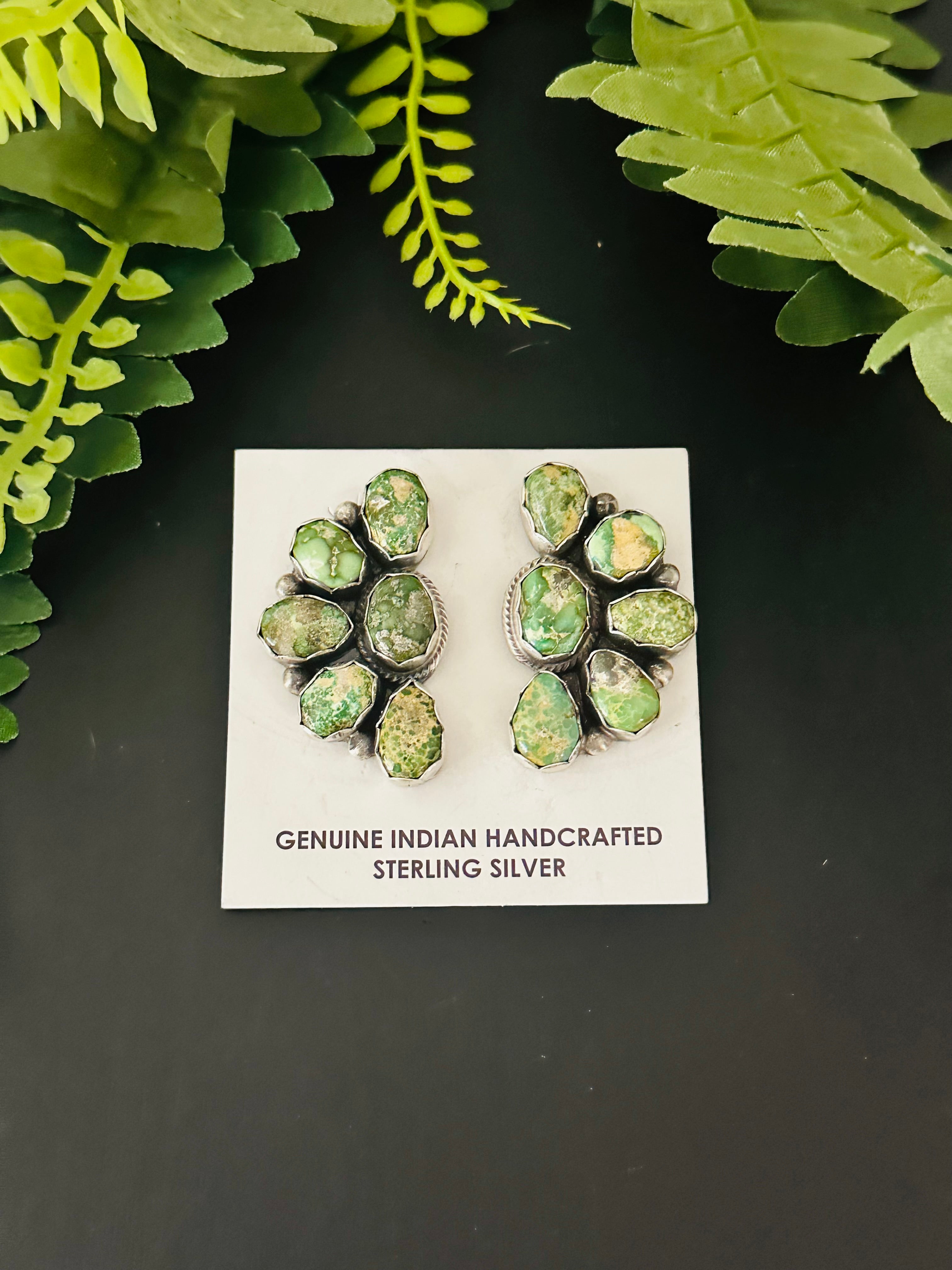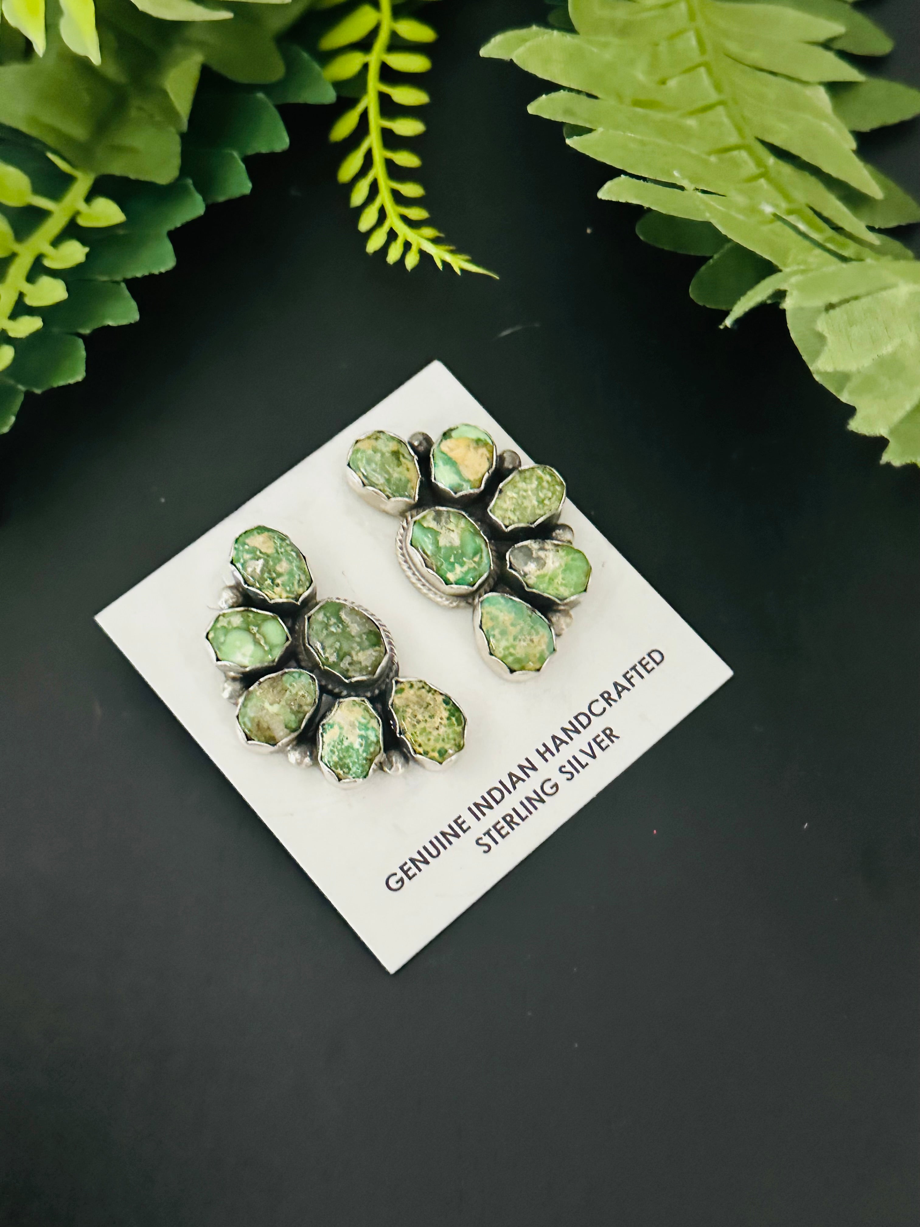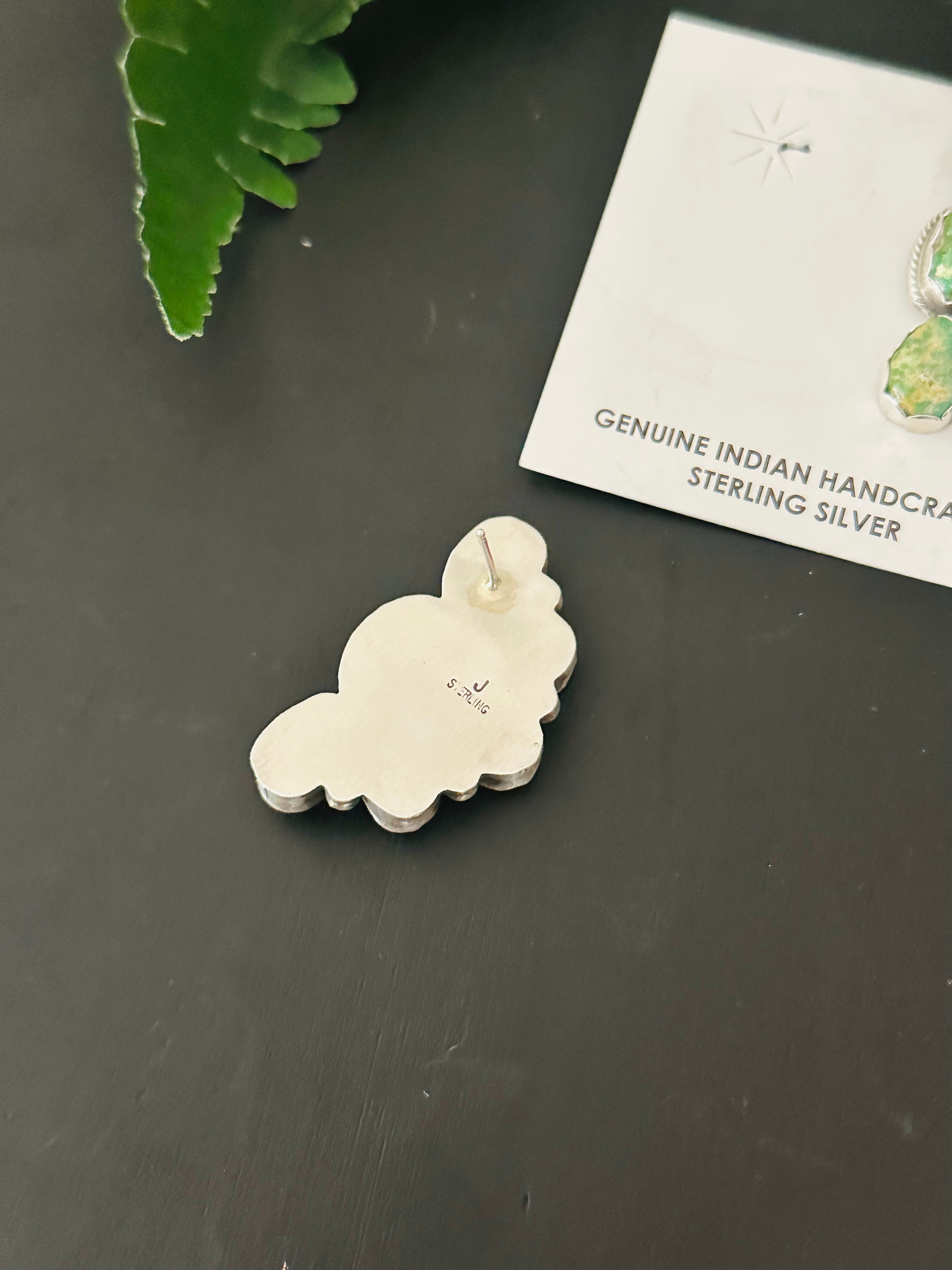 Beautiful post earrings. Lorenzo Juan Sonoran Gold Turquoise & Sterling Silver Post Dangle Earrings. It measures 1 5/8 inches long and 1 inch wide. Signed and stamped.