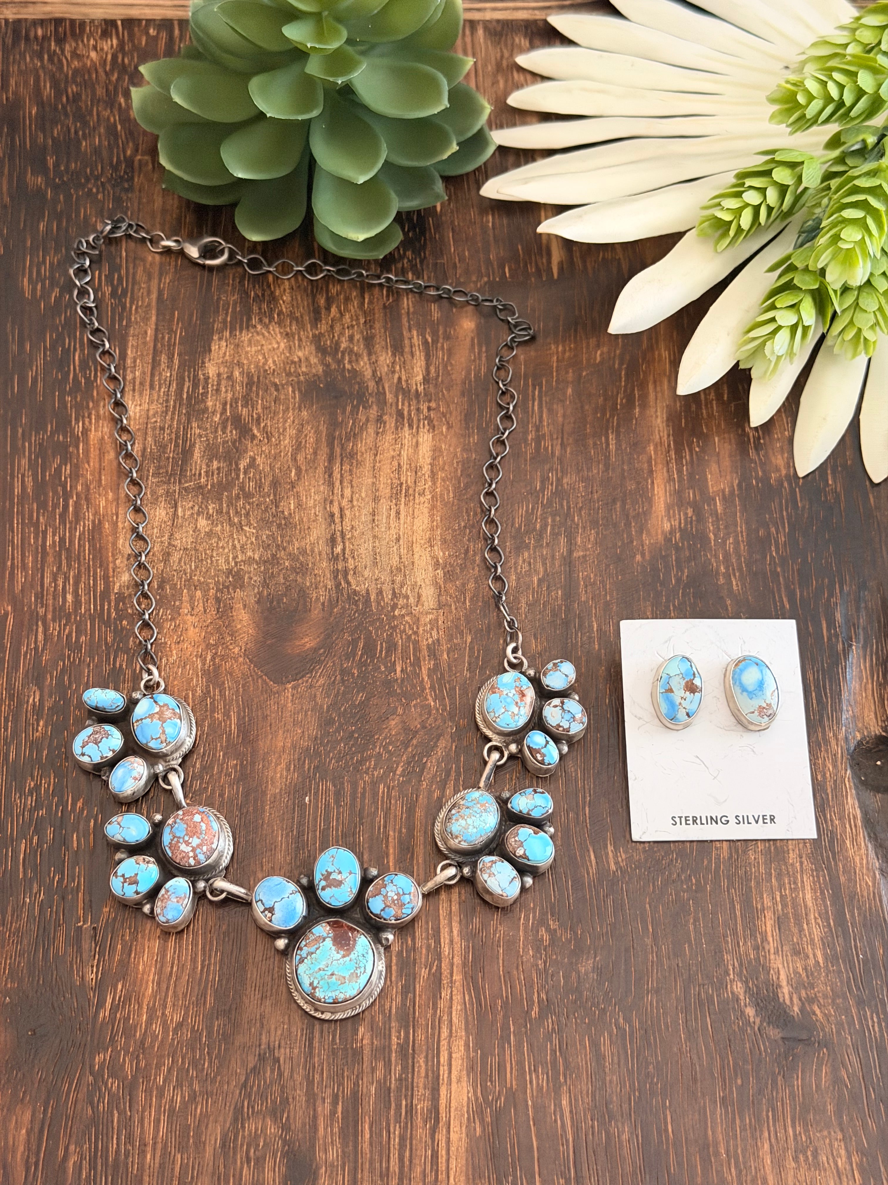 Lydia Begay Golden Hills Turquoise & Sterling Silver Cluster Necklace Set