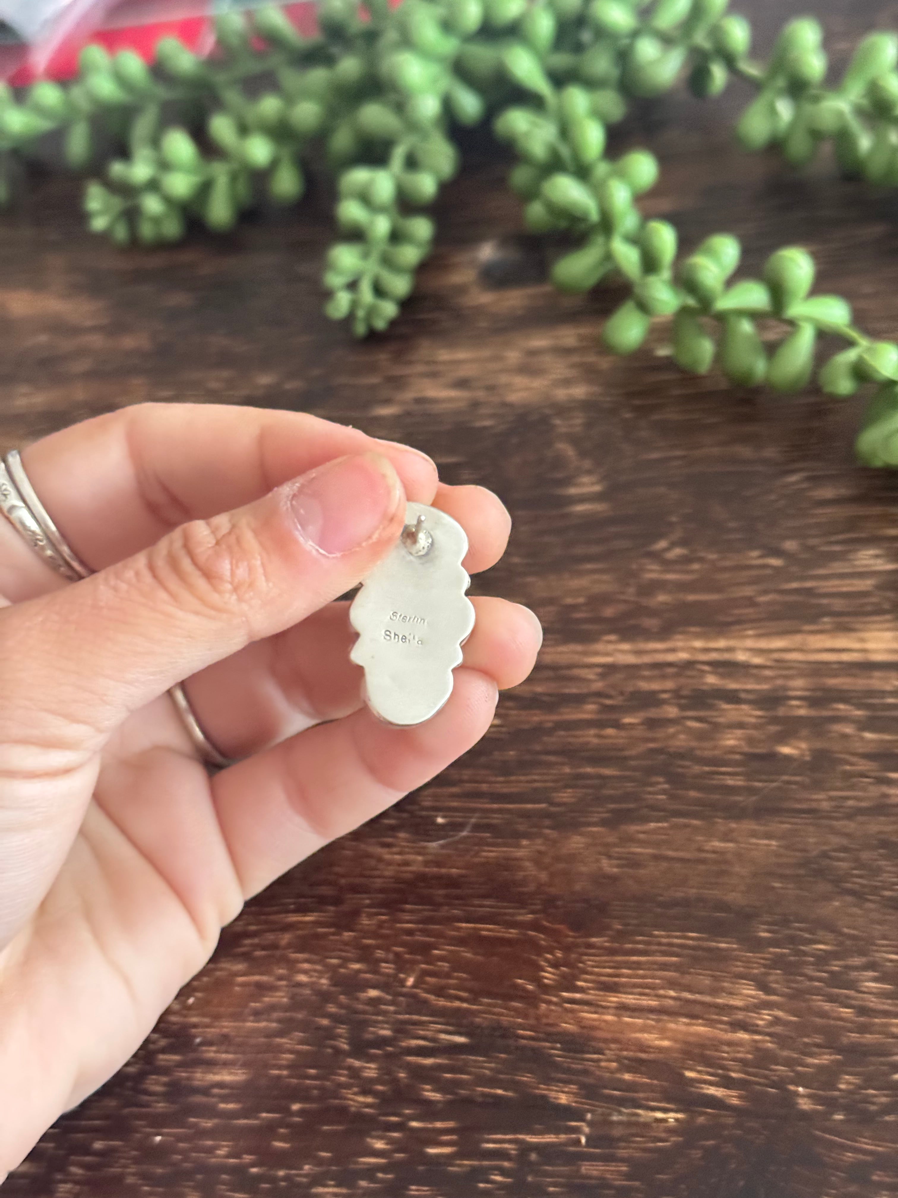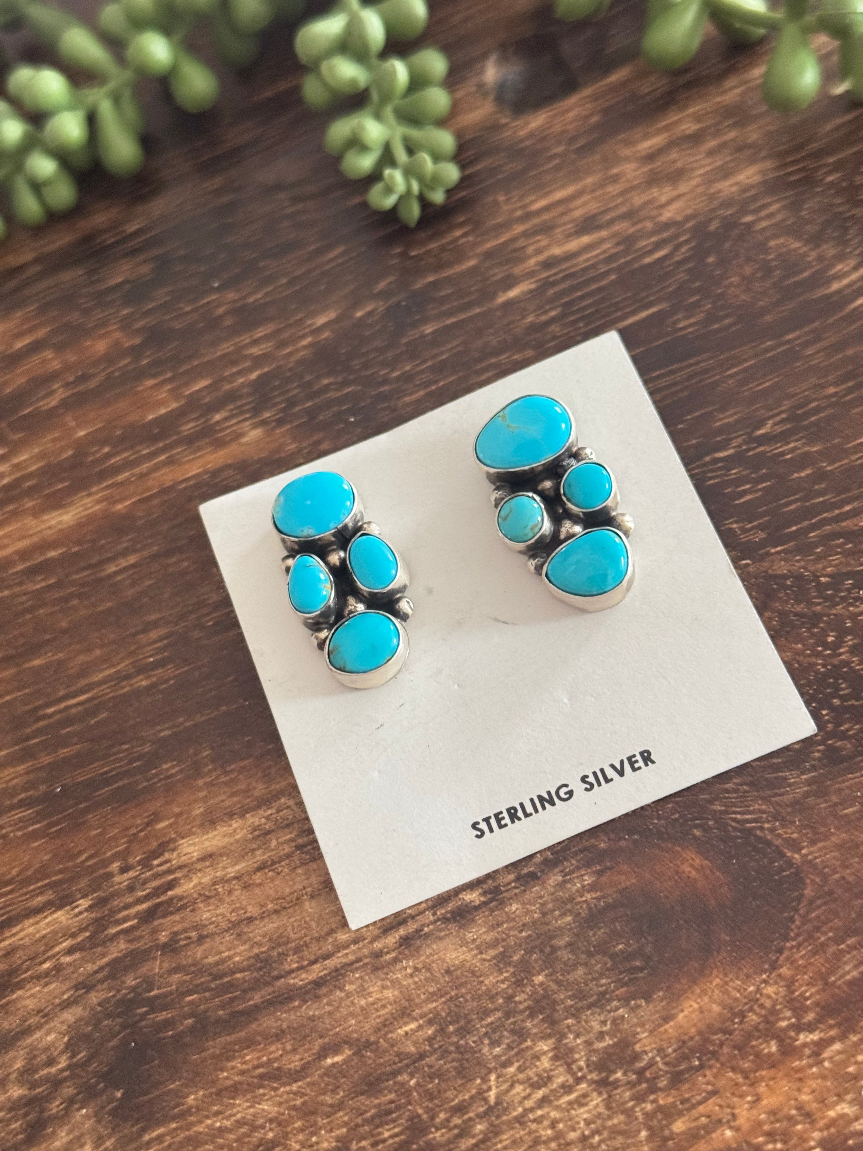 Lydia Begay Kingman Turquoise & Sterling Silver Post Dangle Cluster Earrings