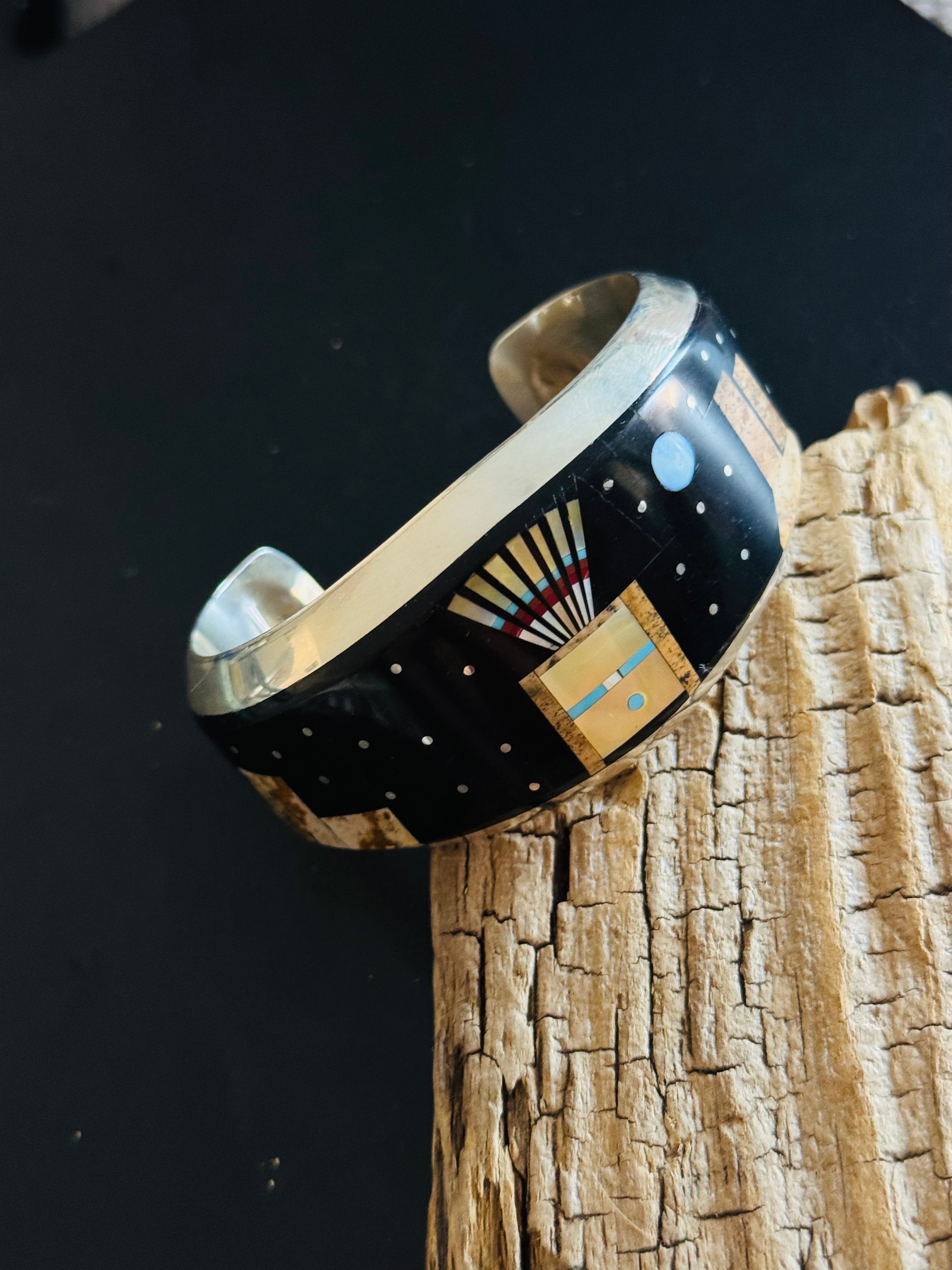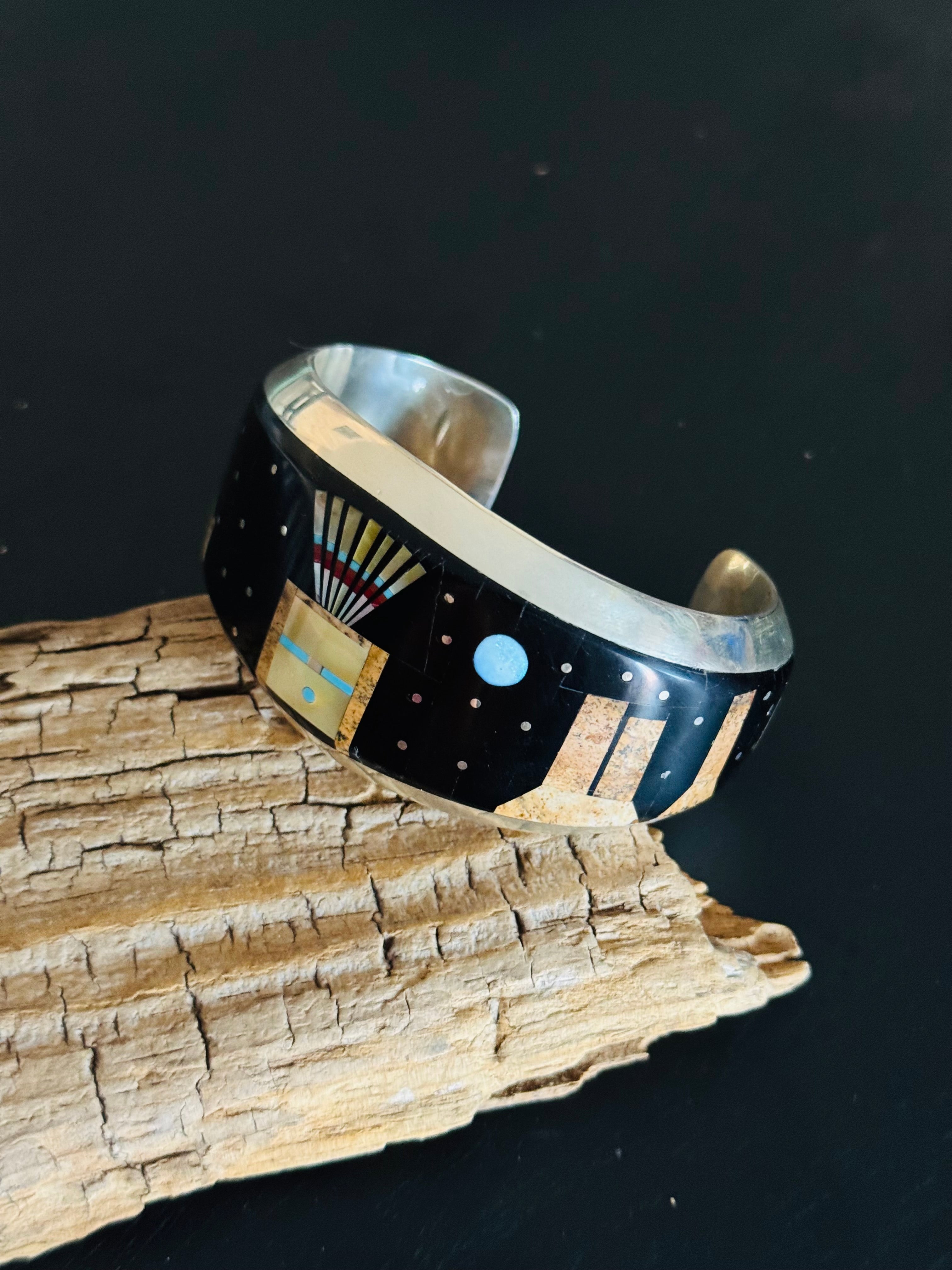 Vintage Emory Yazzie Multi Stone & Sterling Silver Inlay Galaxy Cuff Bracelet