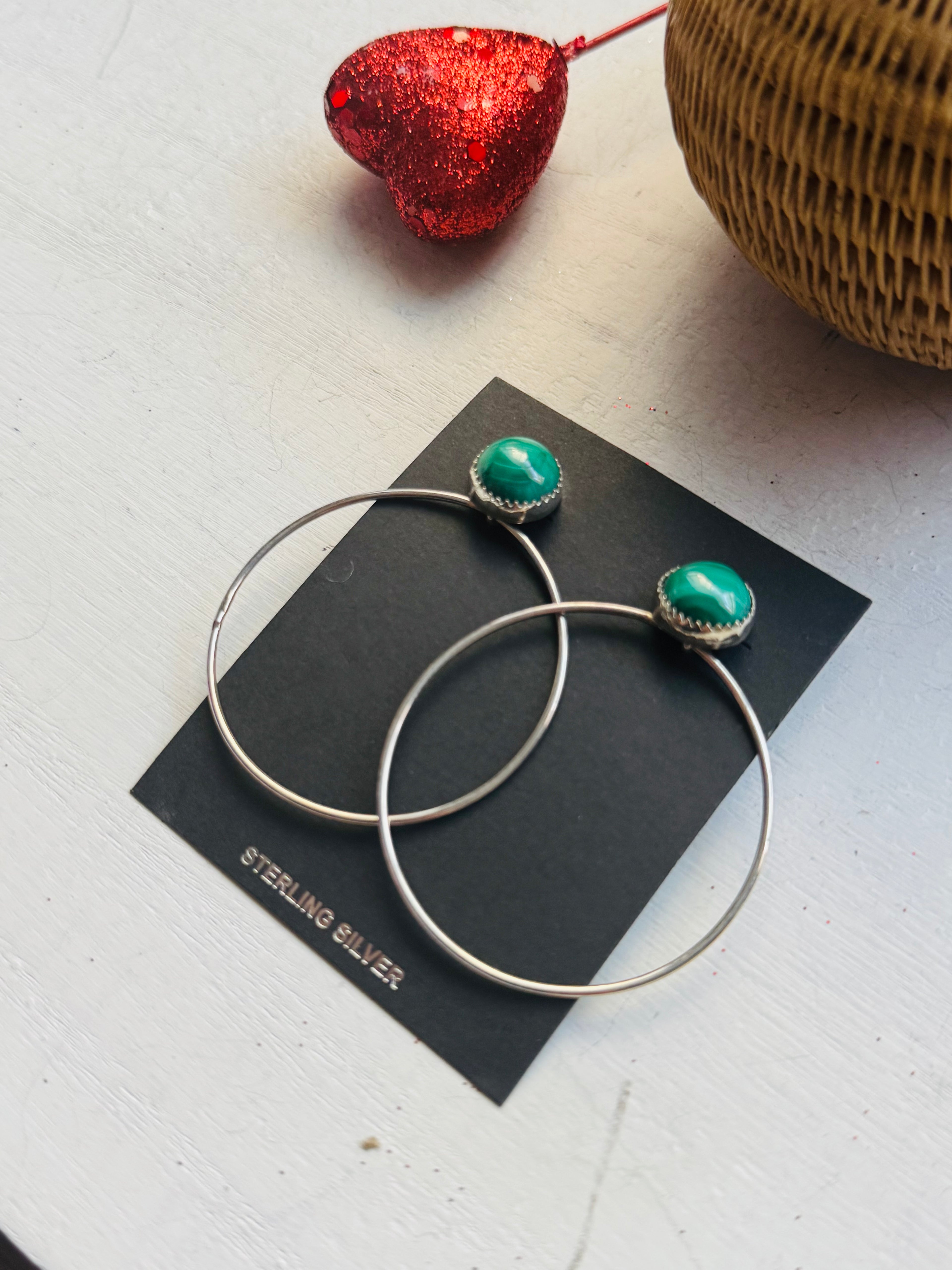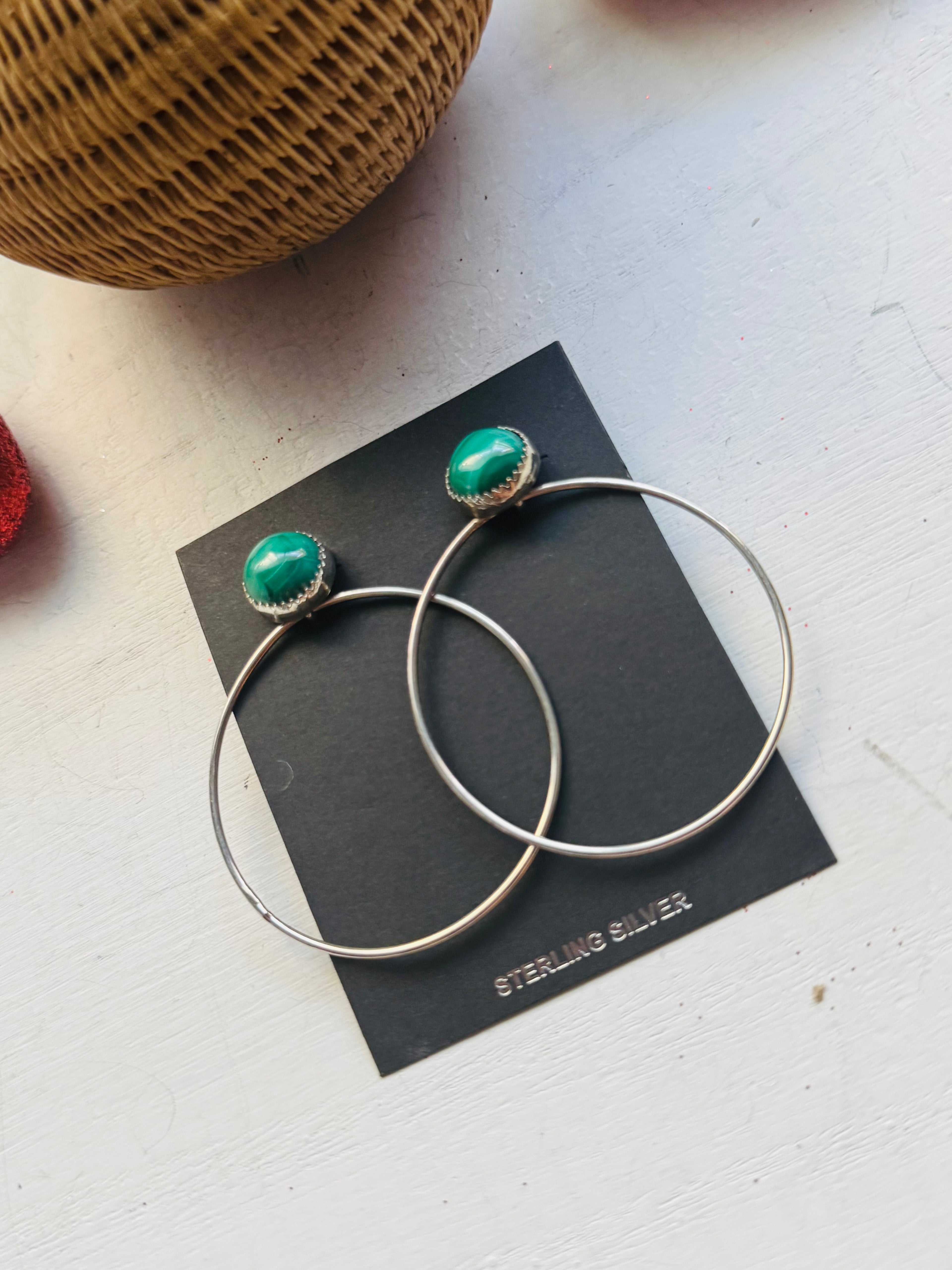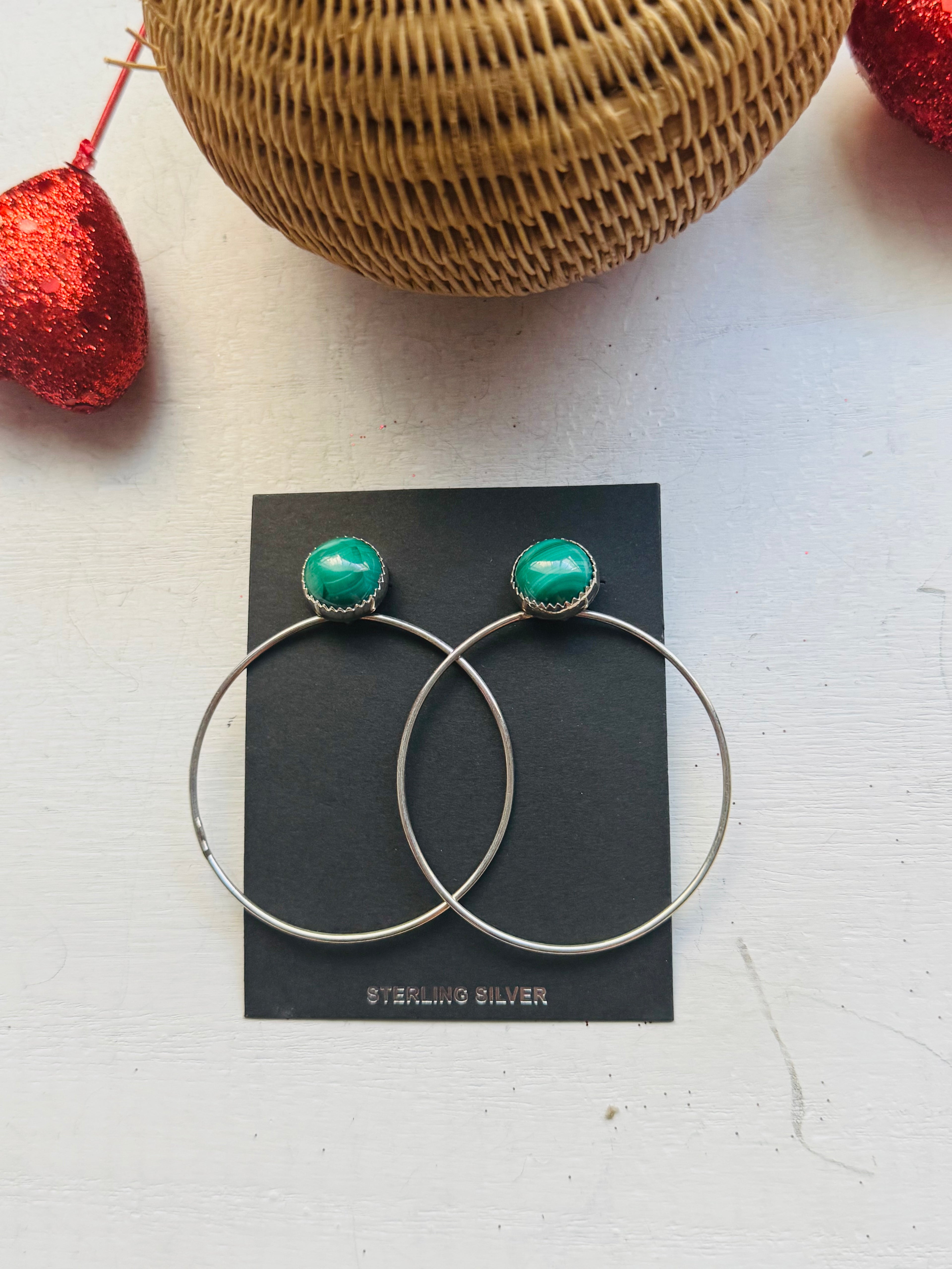 Navajo Malachite & Sterling Silver Post Dangle Earrings