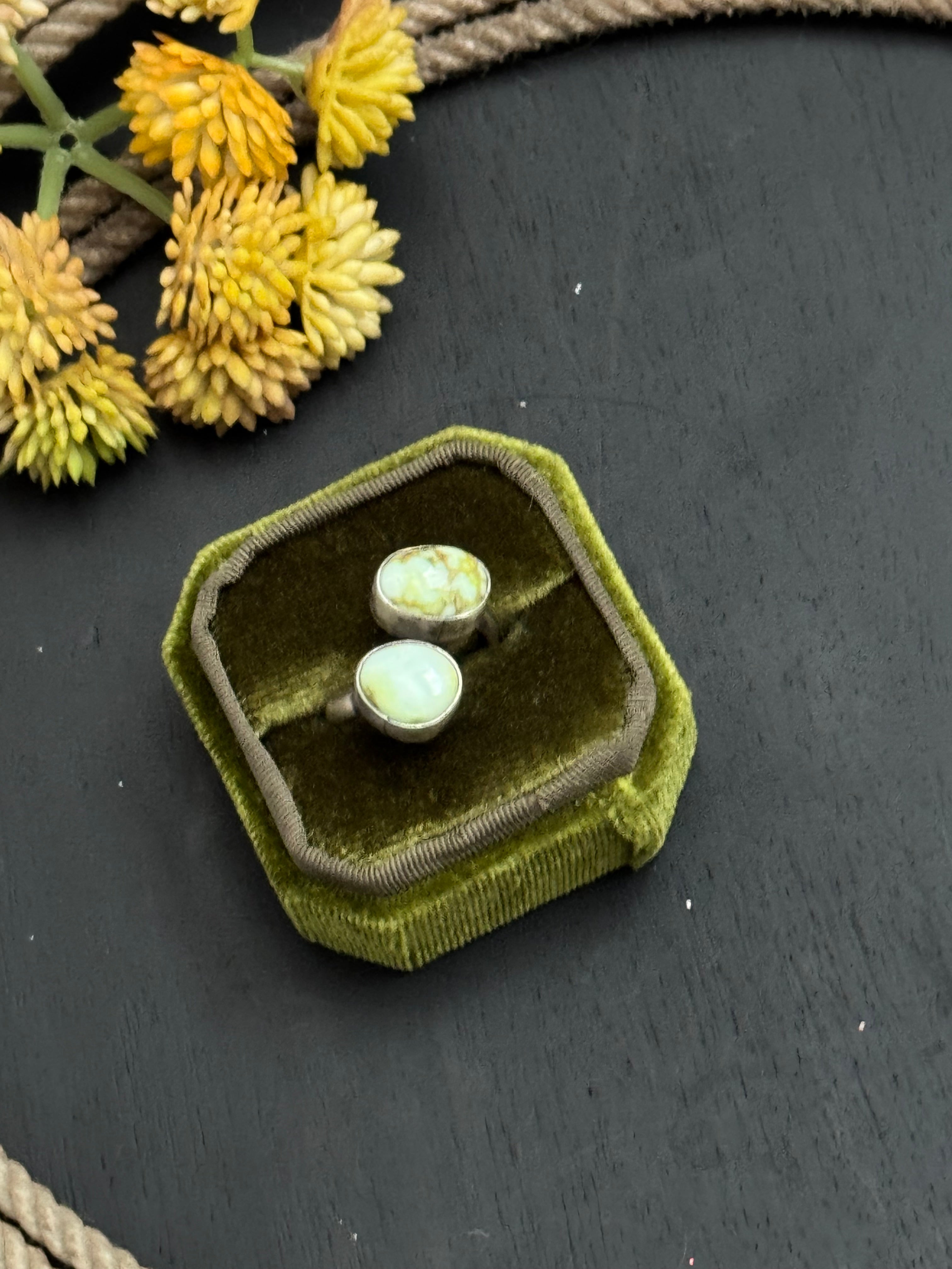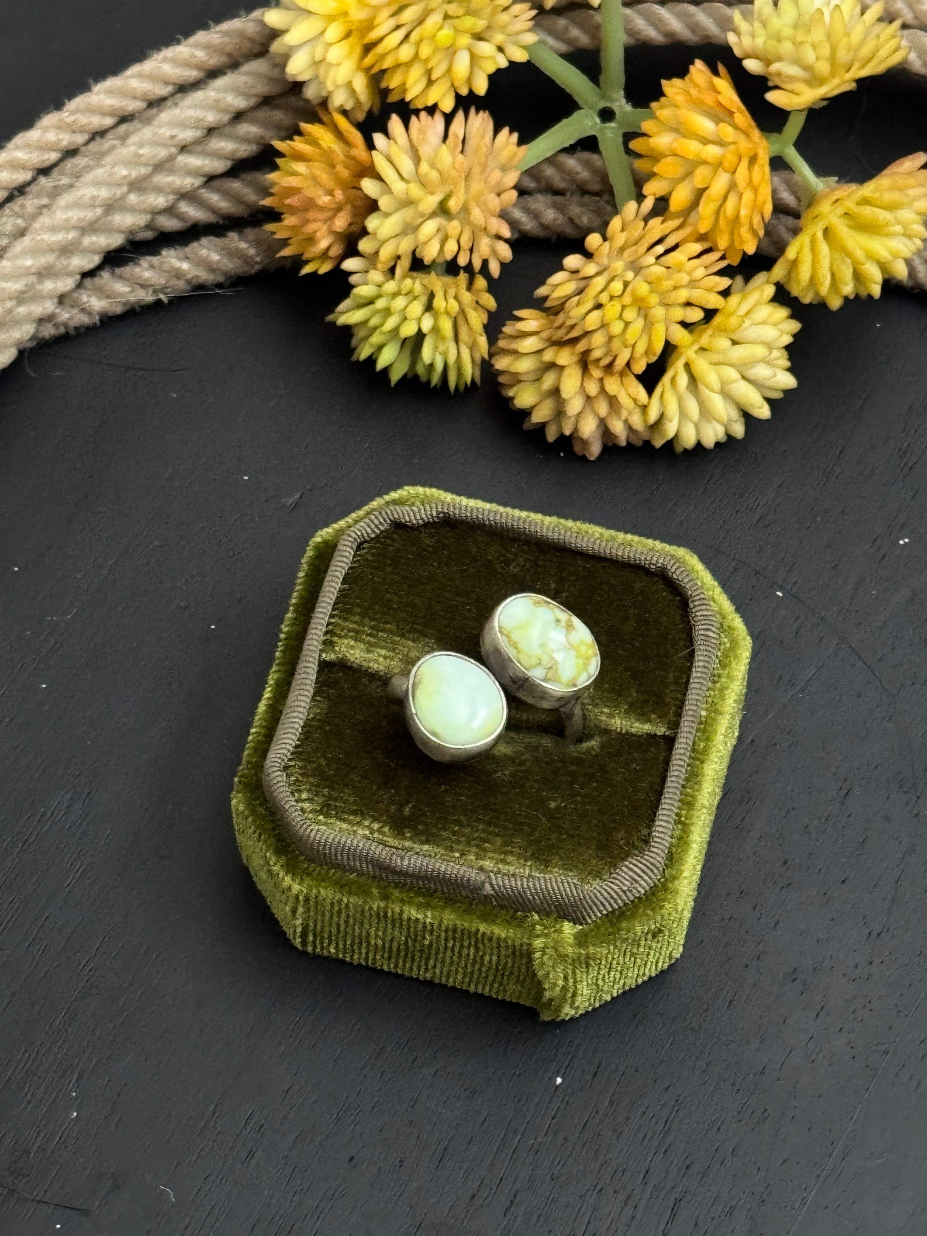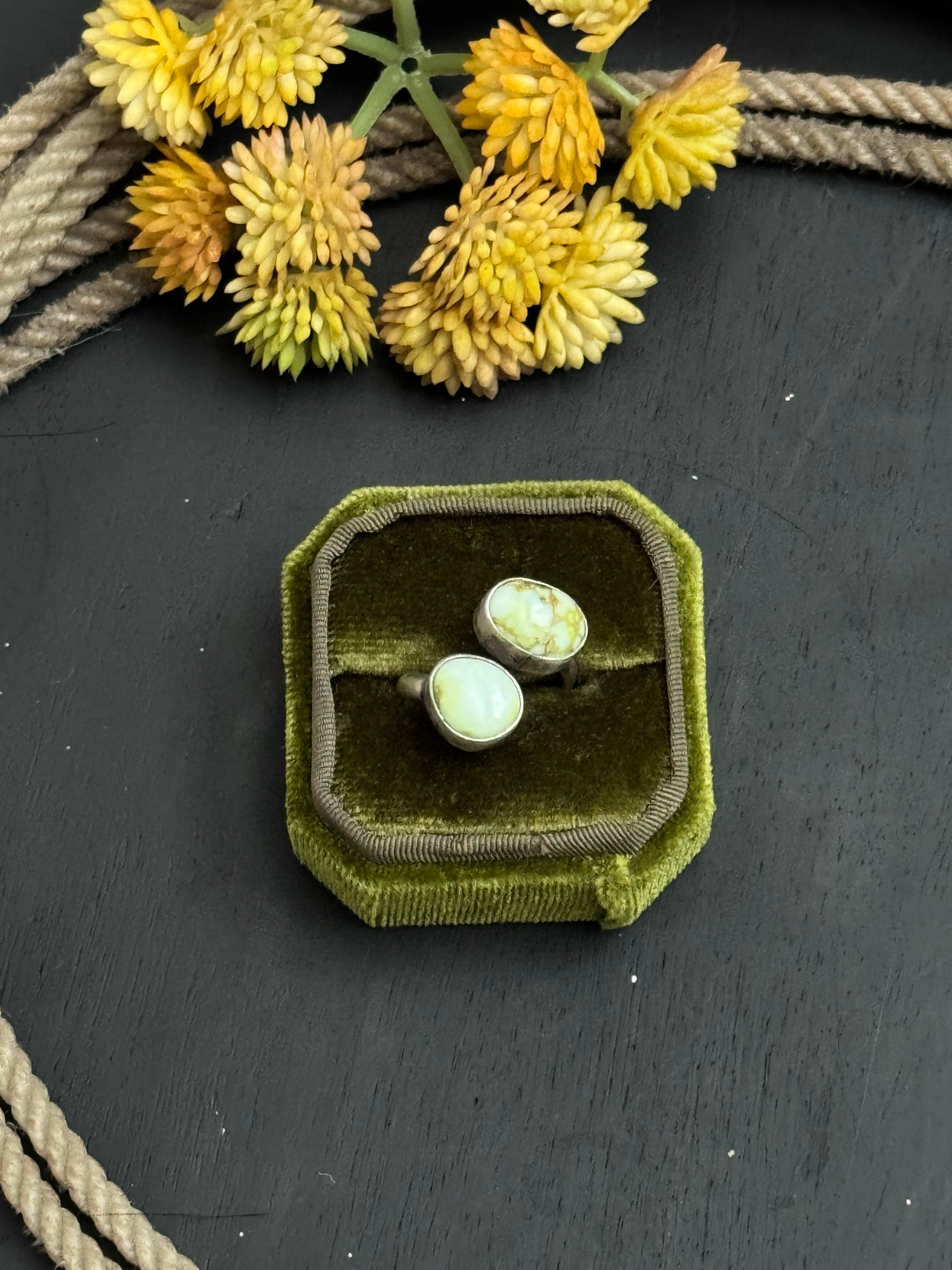 Amazing ring. Ester Sam Palomino Variscite & Sterling Silver Adjustable Ring. It measures 7/8 of an inch long. Signed by the artist and stamped sterling silver.