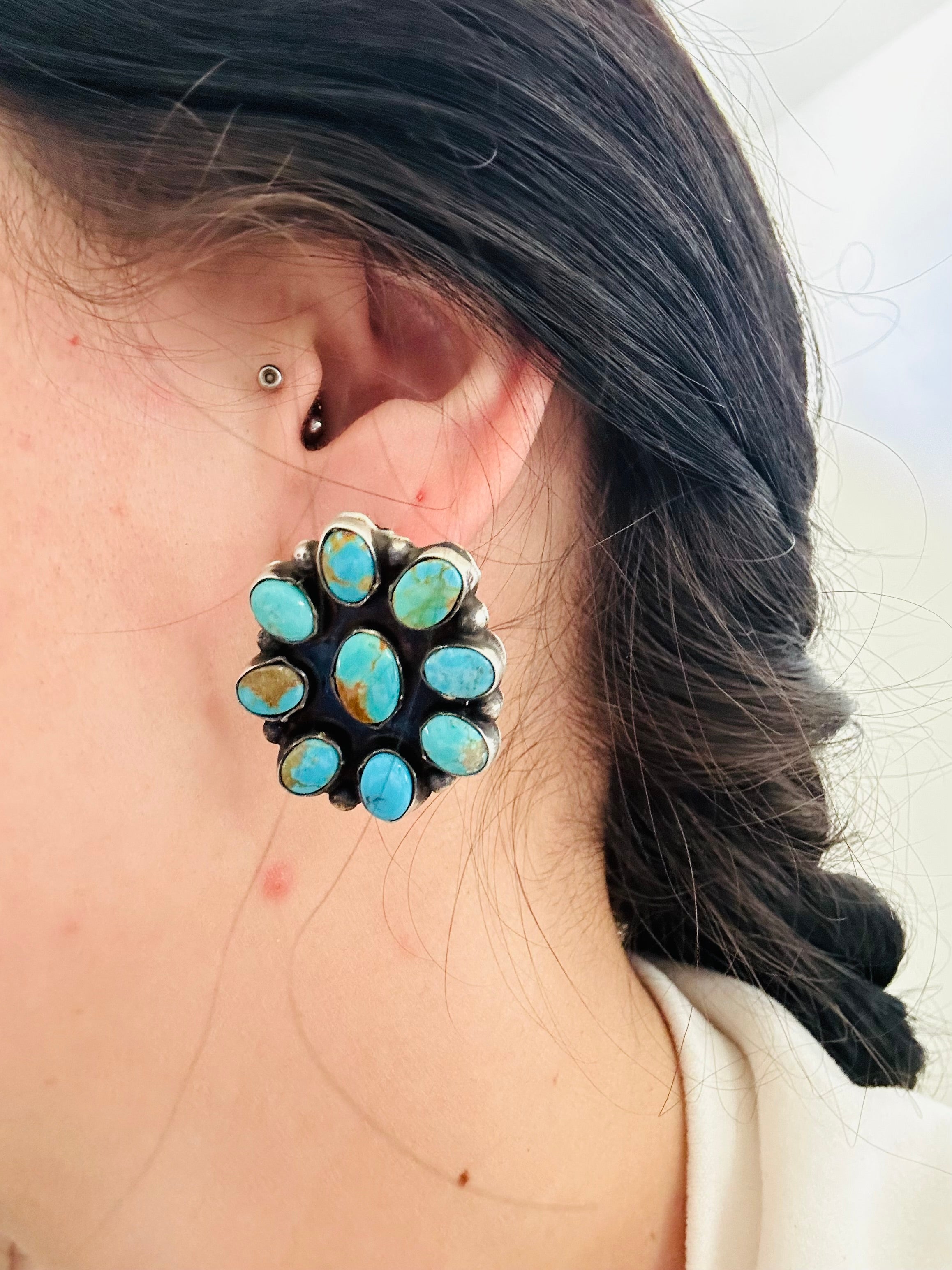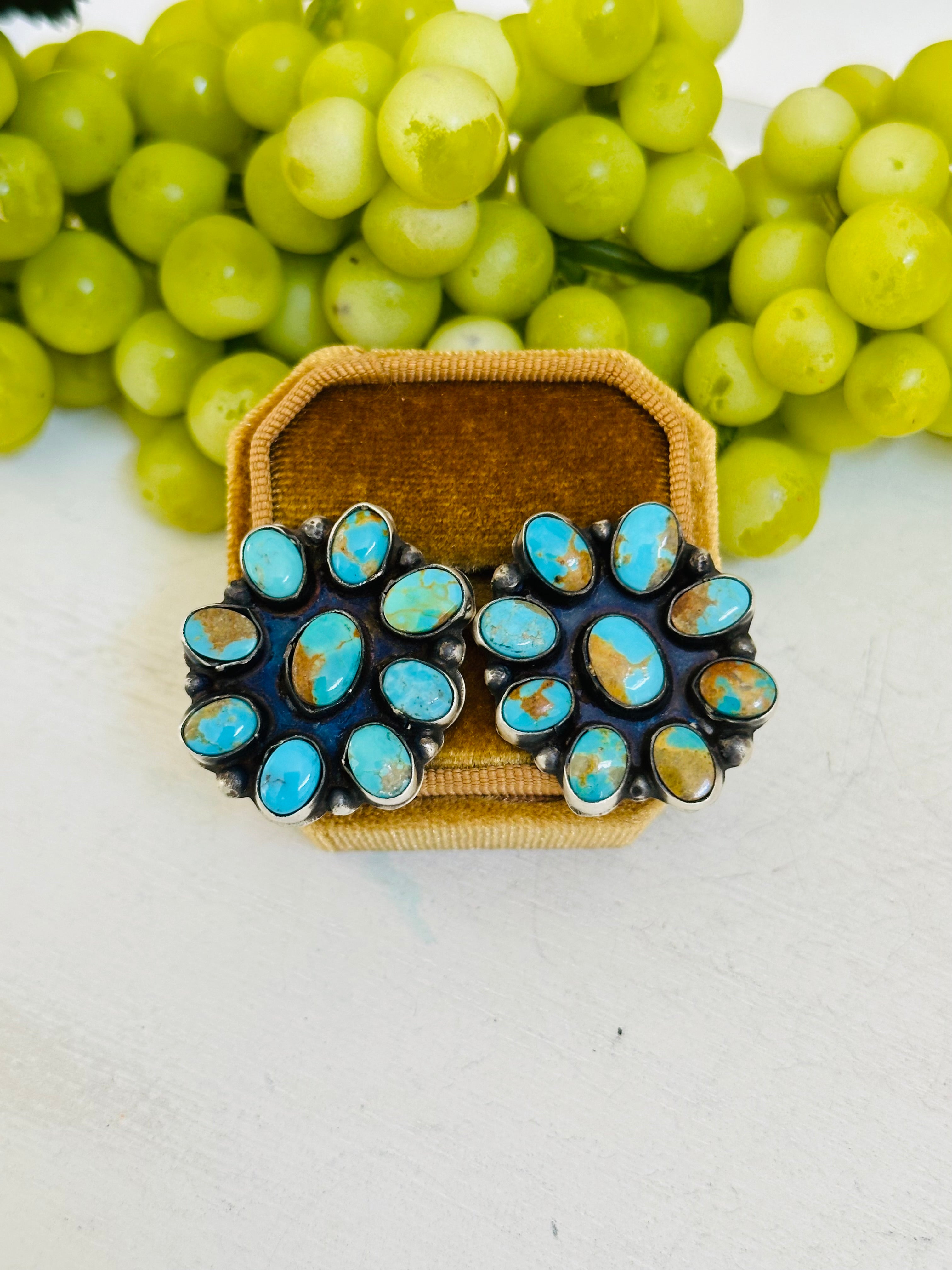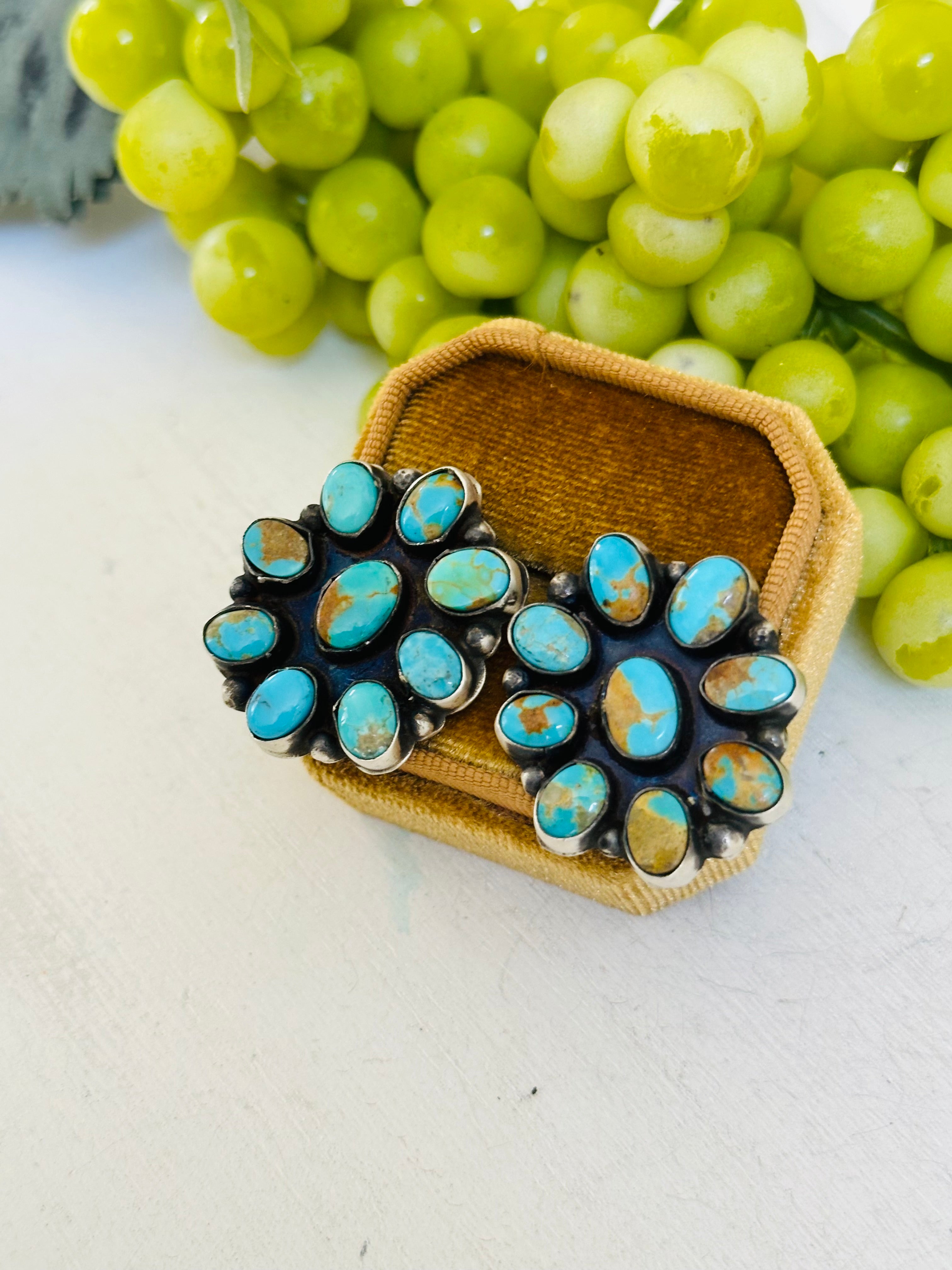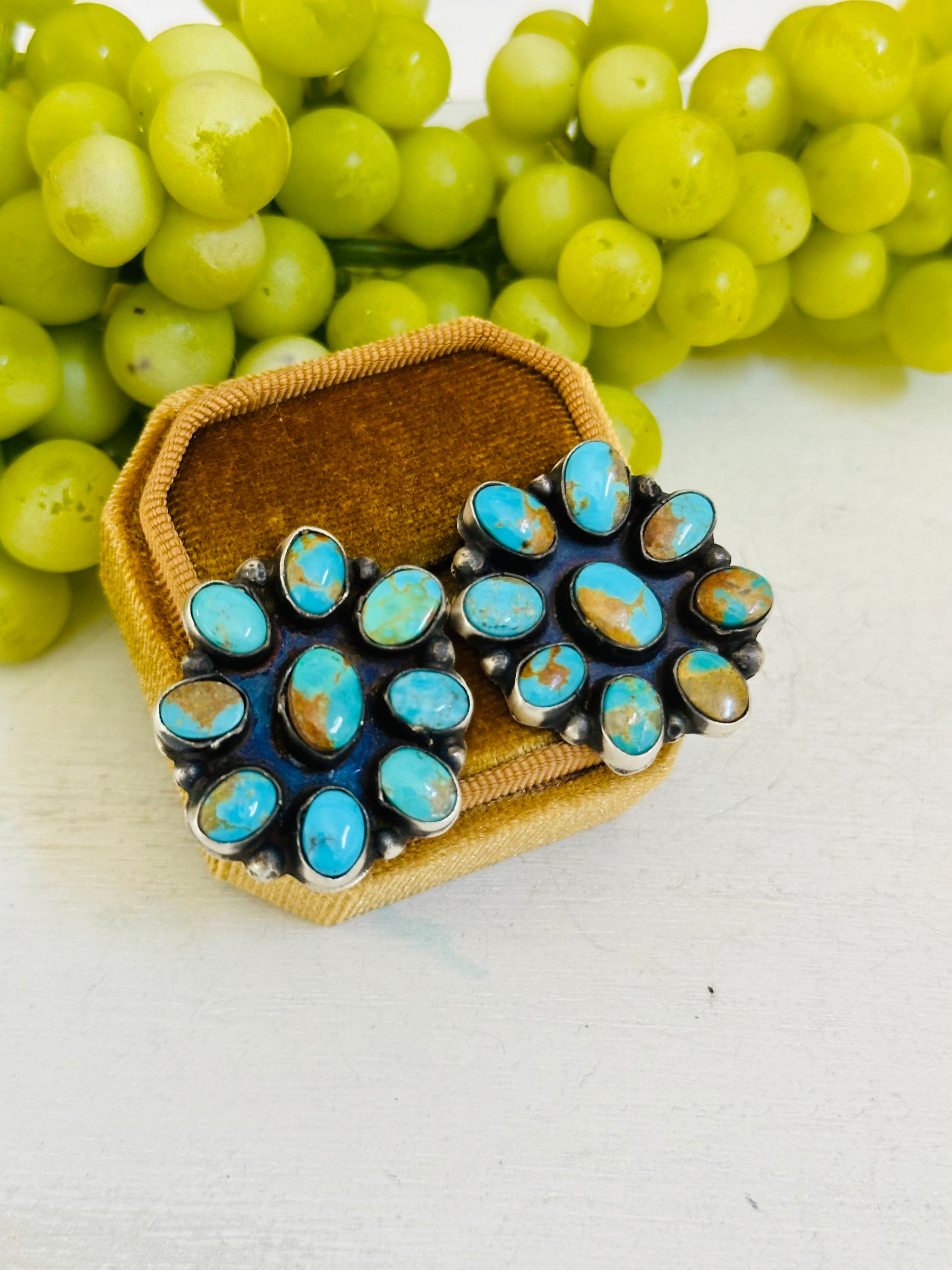 Navajo Handmade Royston Turquoise & Sterling Silver Post Cluster Earrings