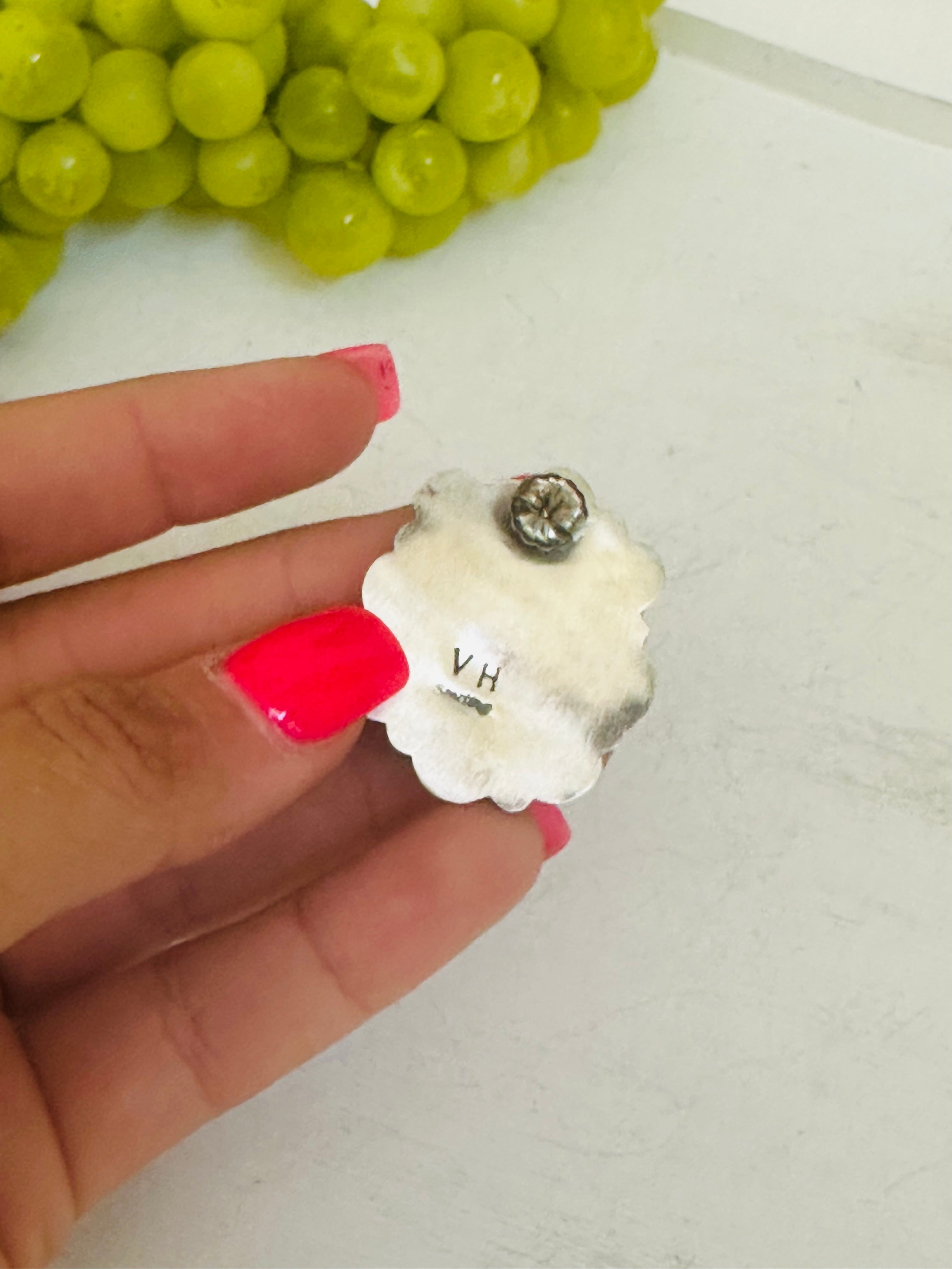 Beautiful post earrings, perfect for your everyday wear. Navajo Handmade Royston Turquoise & Sterling Silver Post Earrings. It measures 1 1/4 inches long and 1 inch wide. Signed by the artist and stamped sterling silver.