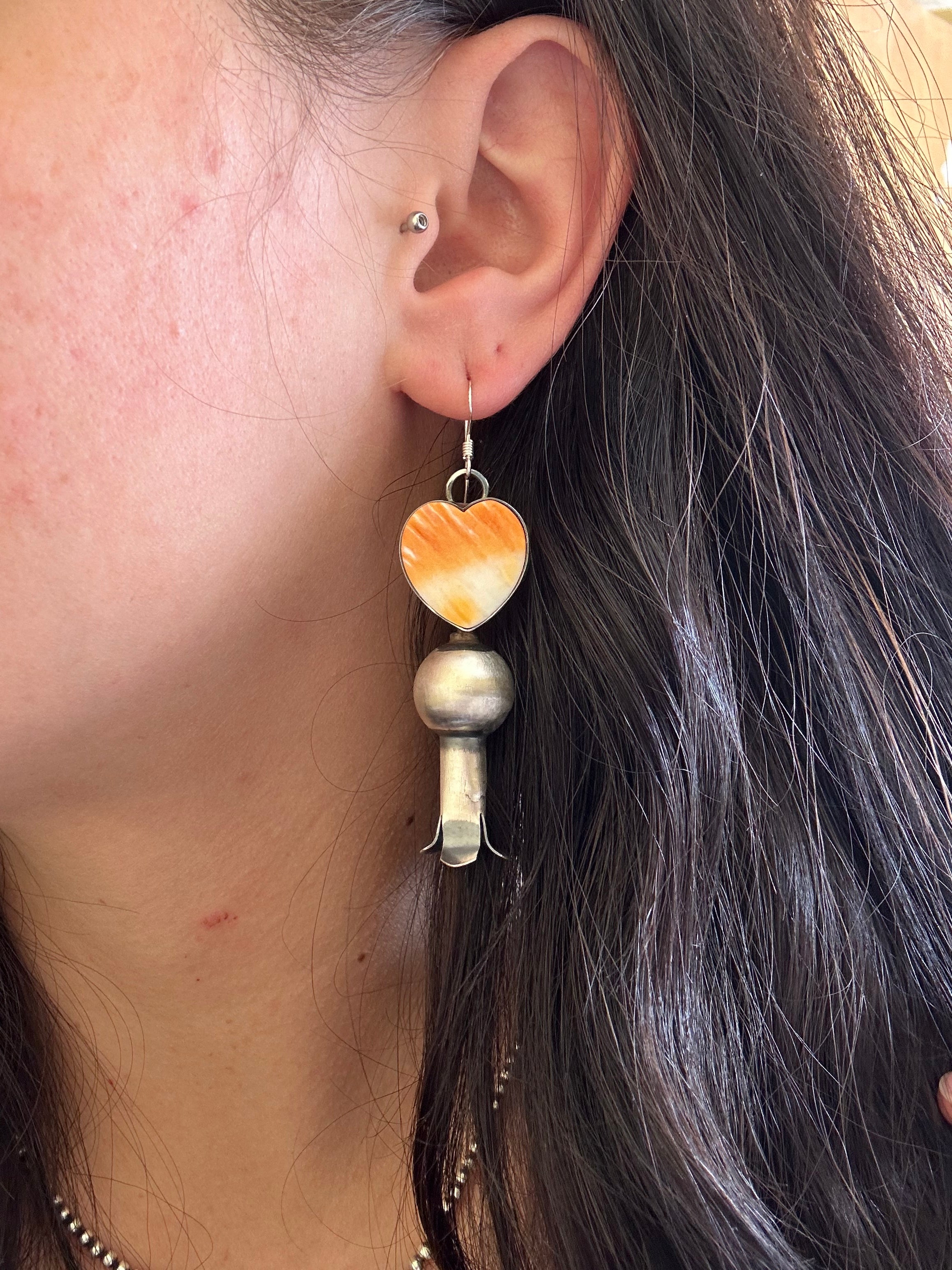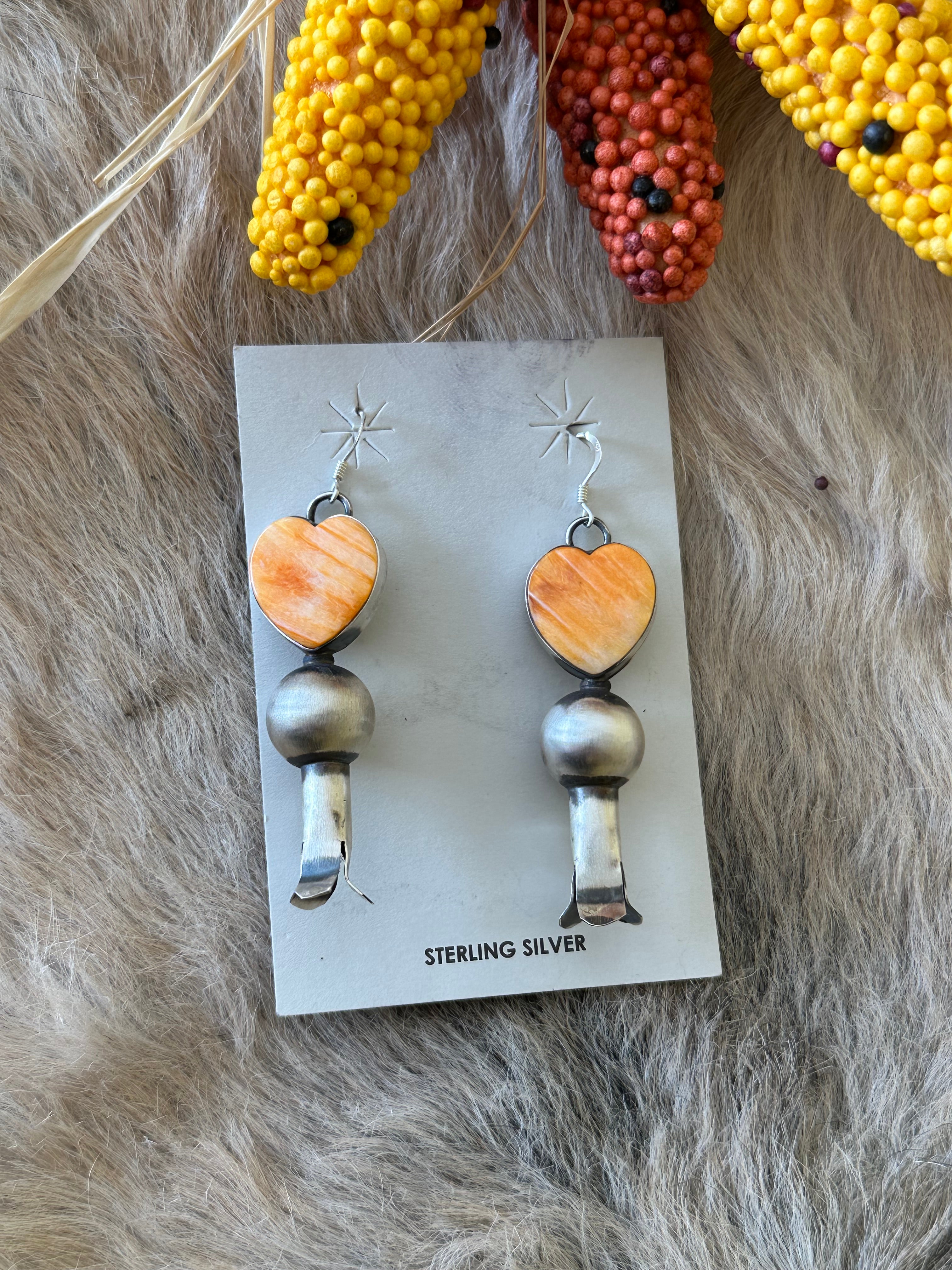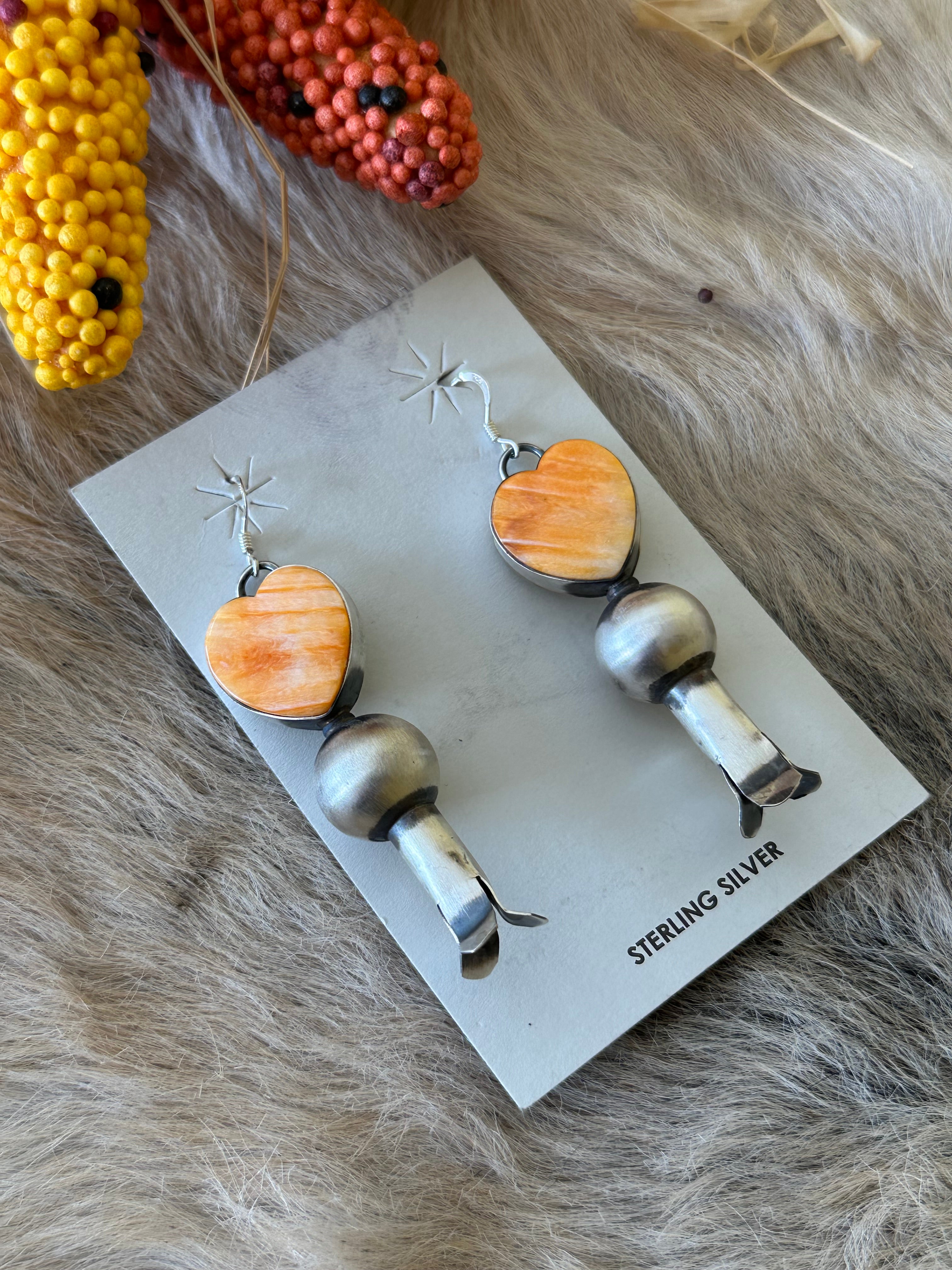 Navajo Handmade Spiny Oyster & Sterling Silver Dangle Earrings