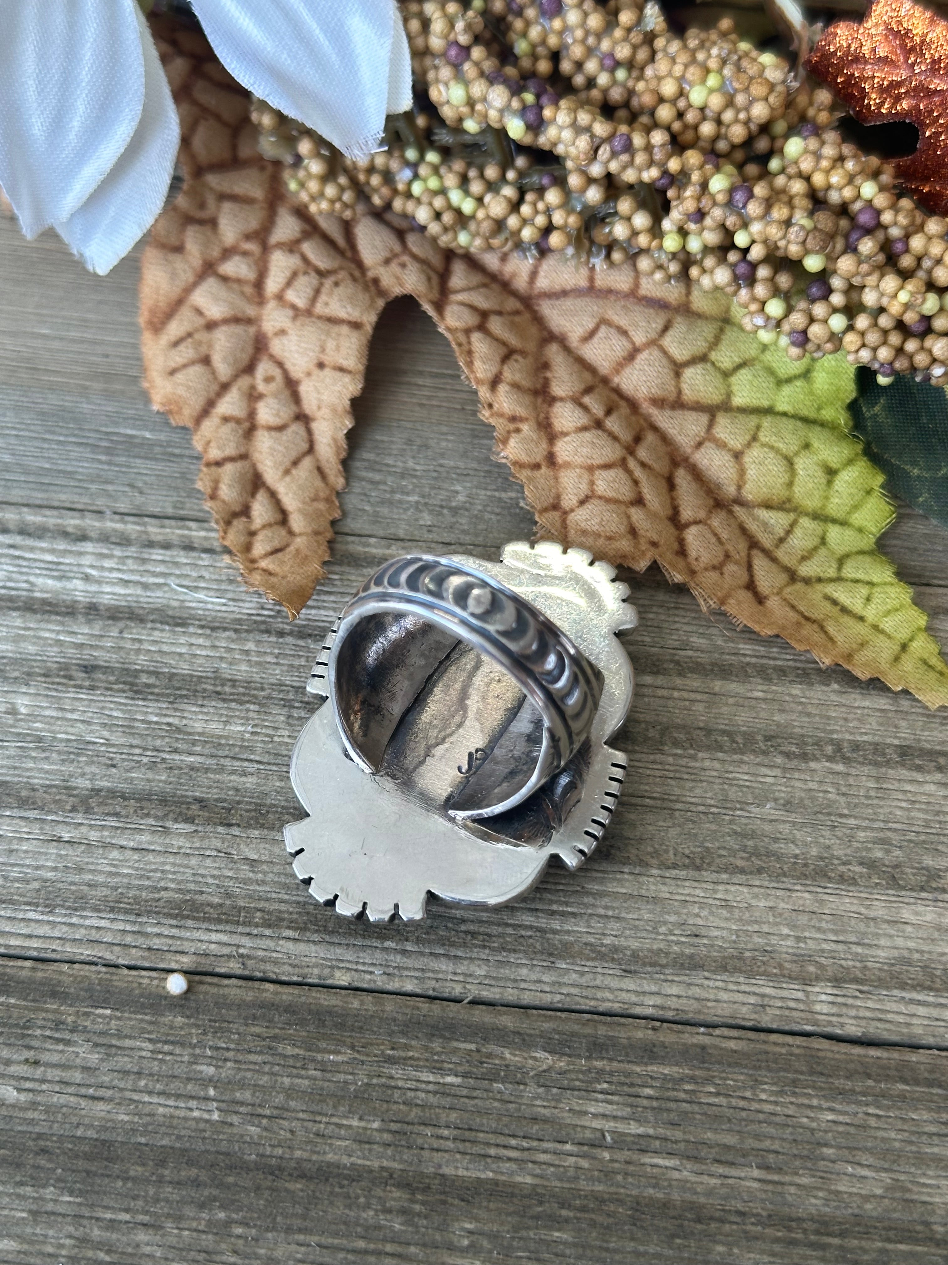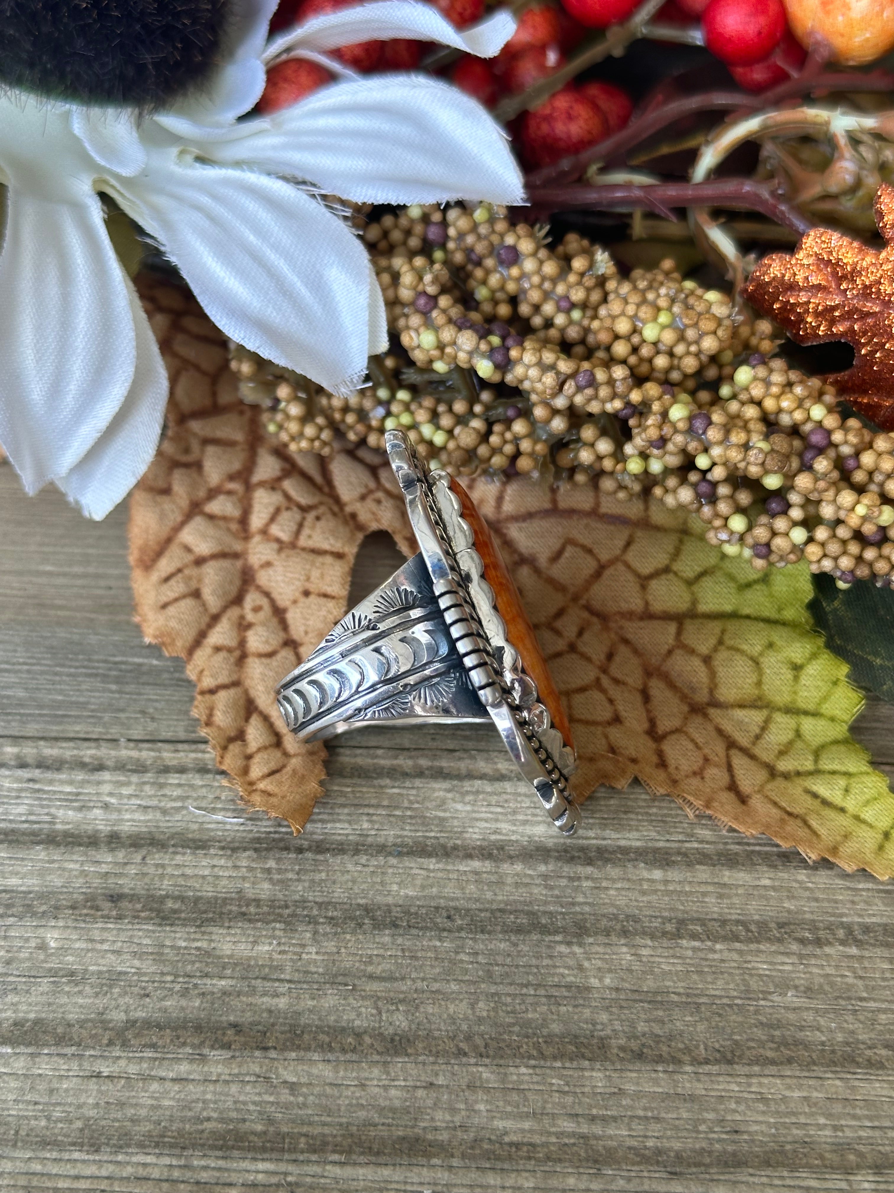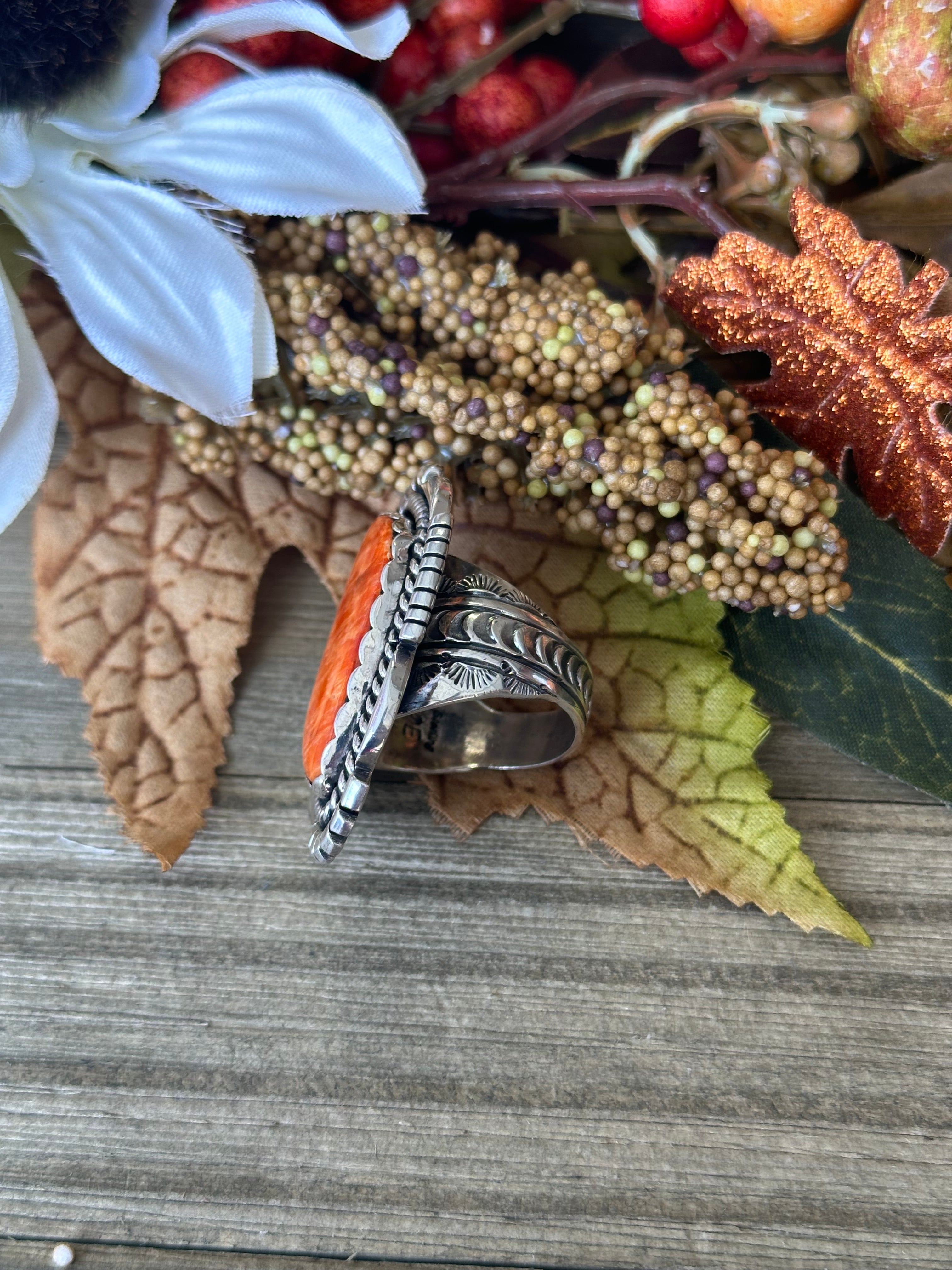 Navajo Handmade Spiny Oyster & Sterling Silver Ring Size 11.25