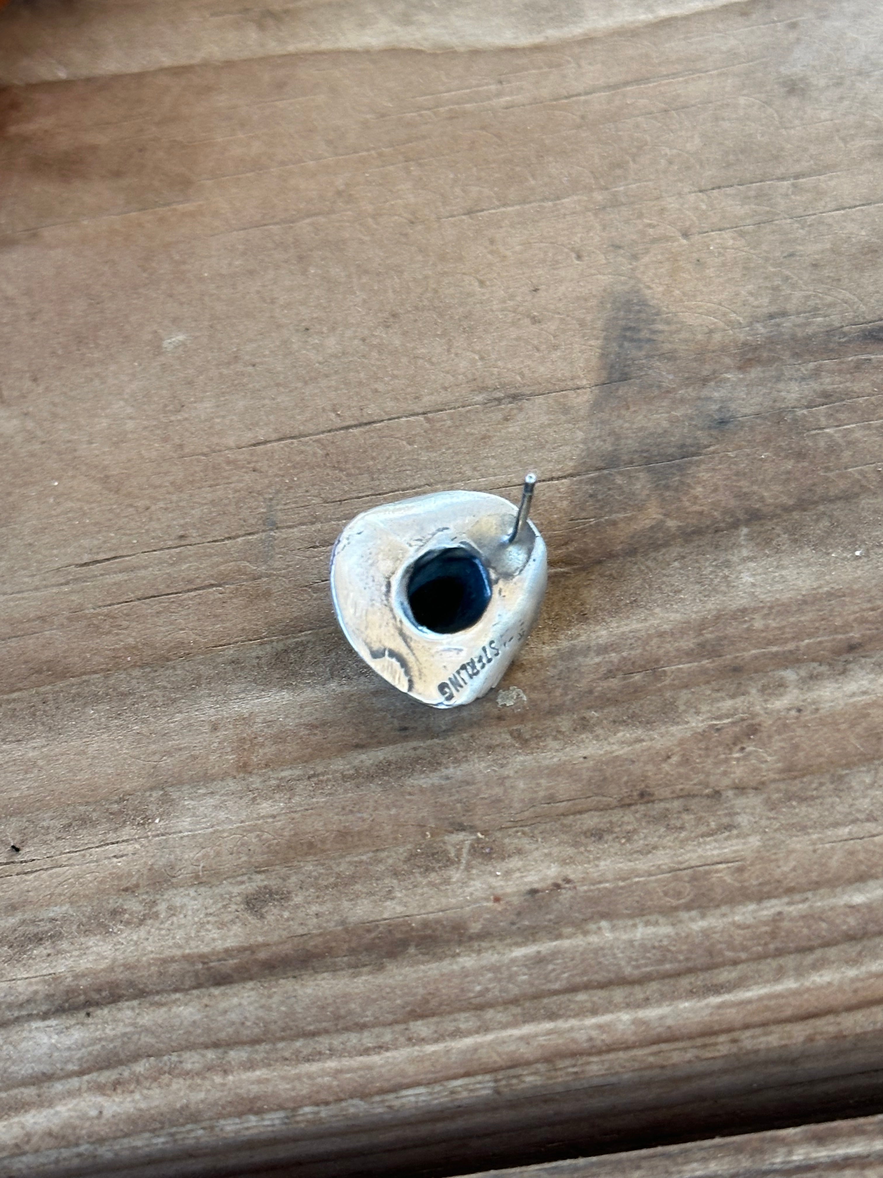 Beautiful post earrings, perfect for your everyday wear. Navajo Handmade Sterling Silver Post Cowboy Hat Earrings. It measures 3/4 of an inch long and 5/8 of an inch wide. Signed by the artist and stamped sterling silver.