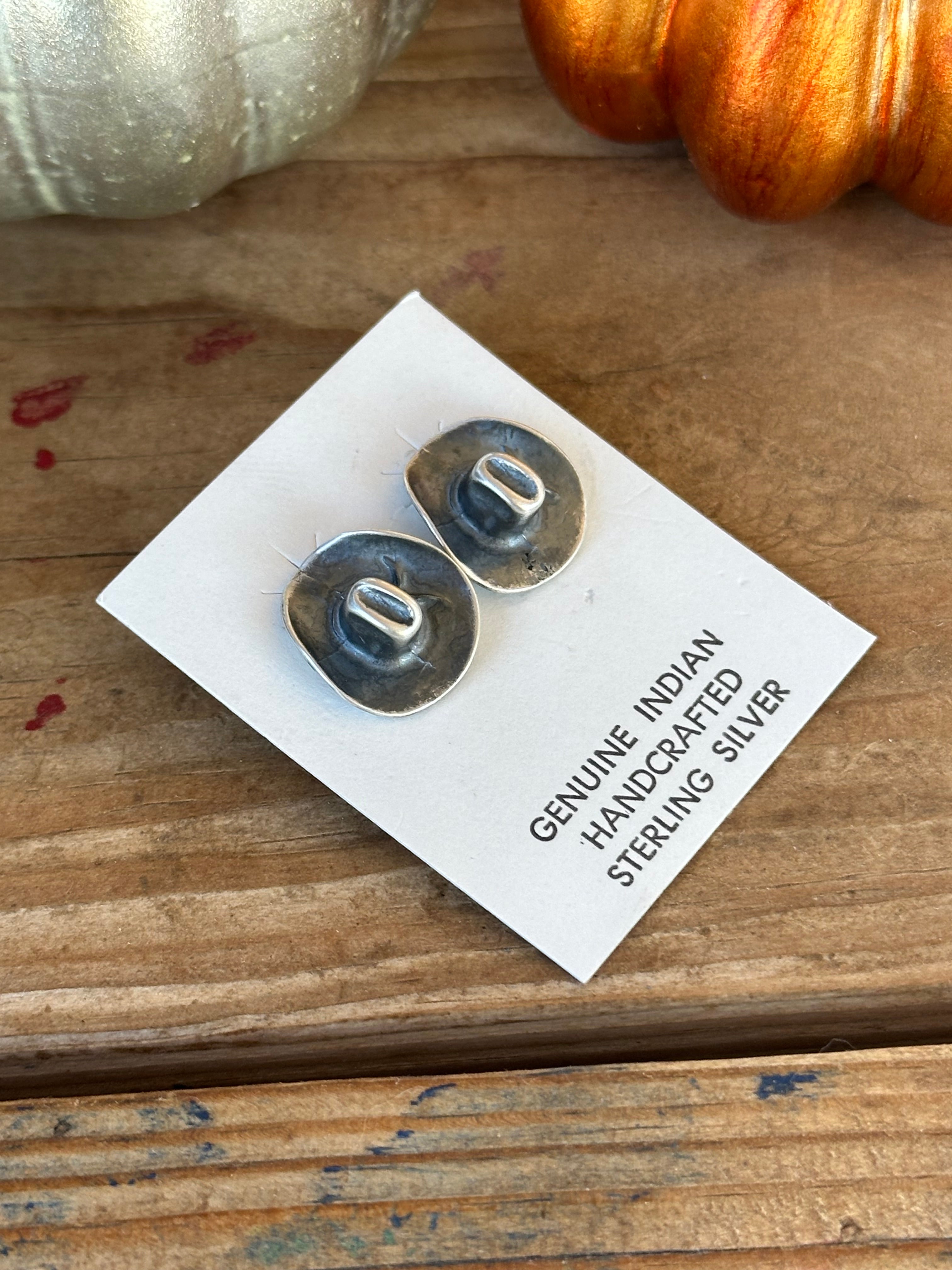 Navajo Handmade Sterling Silver Post Cowboy Hat Earrings