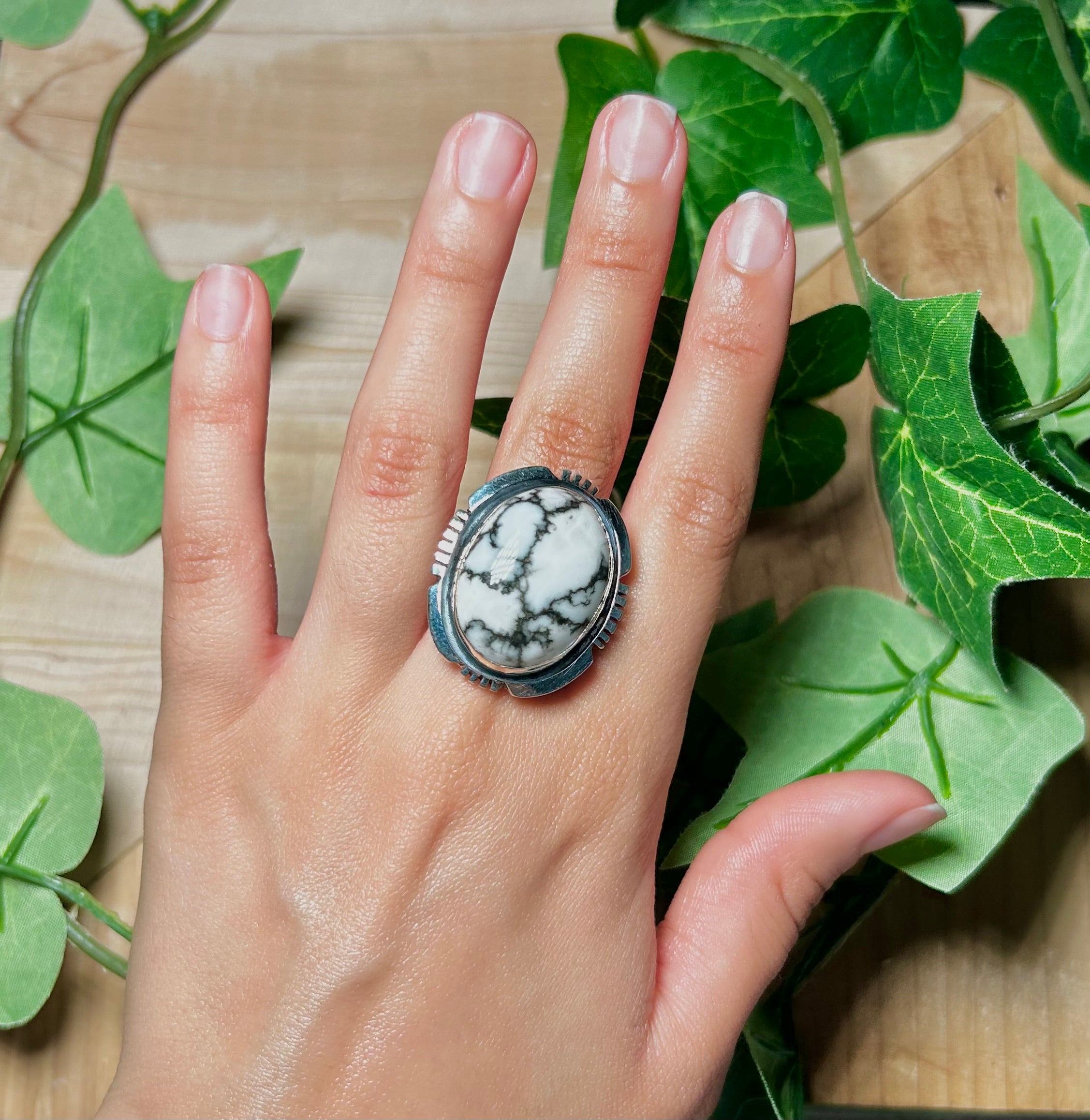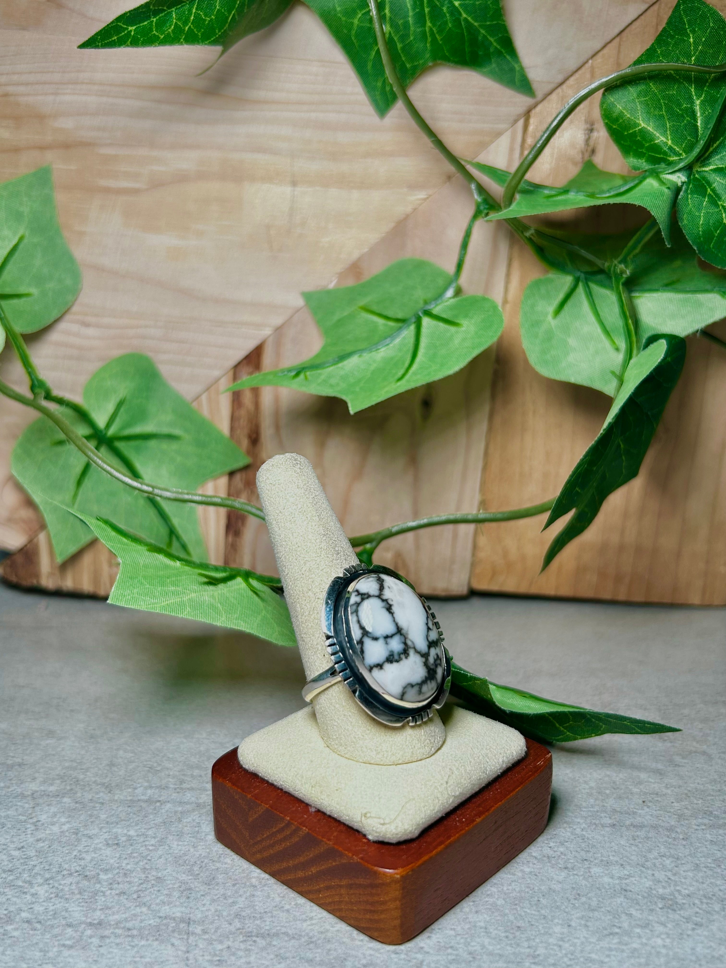 Navajo Made White Buffalo and Sterling Silver Ring Size 10.5