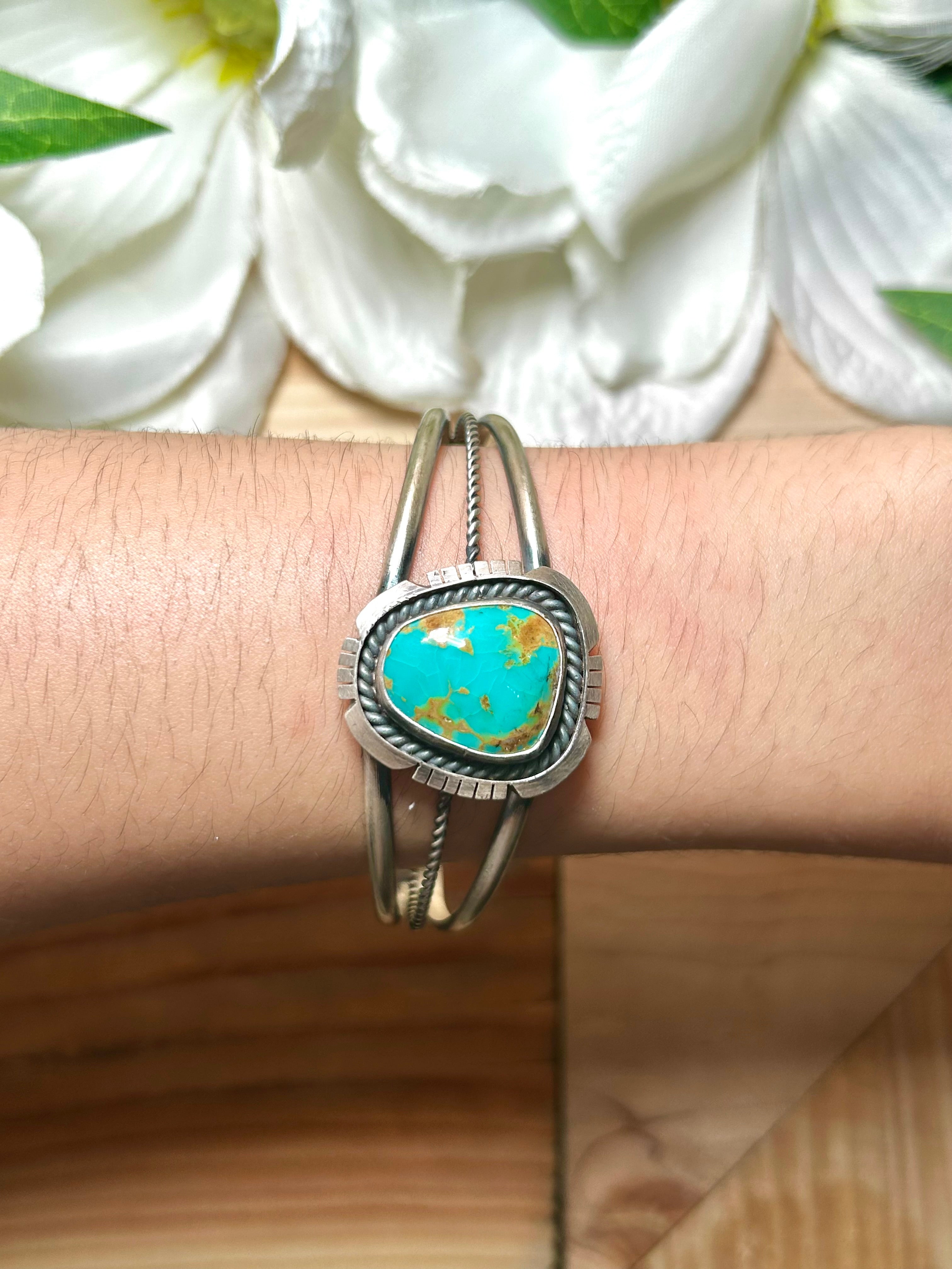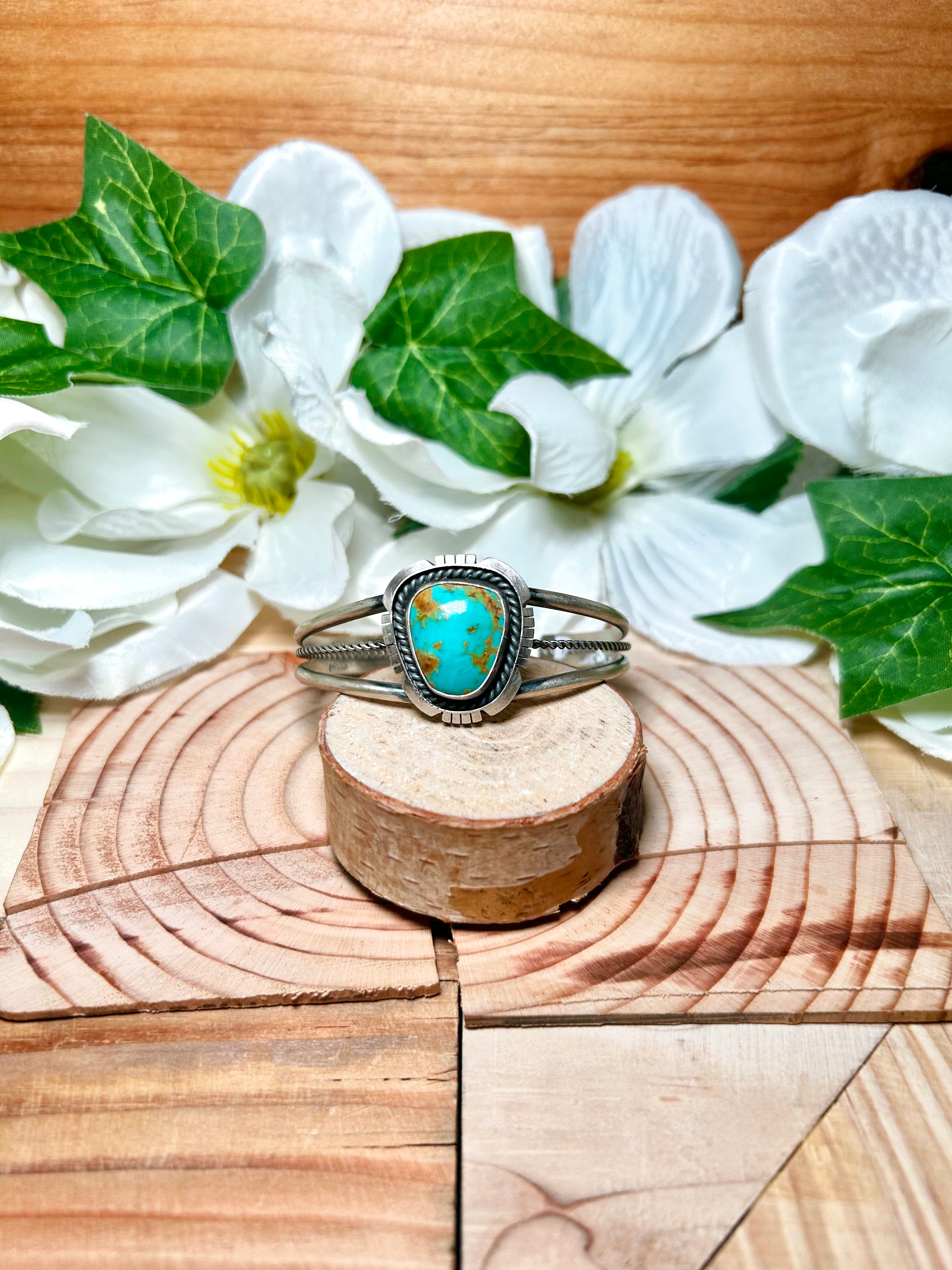 Navajo Made Red Skin Turquoise & Sterling Silver Cuff Bracelet