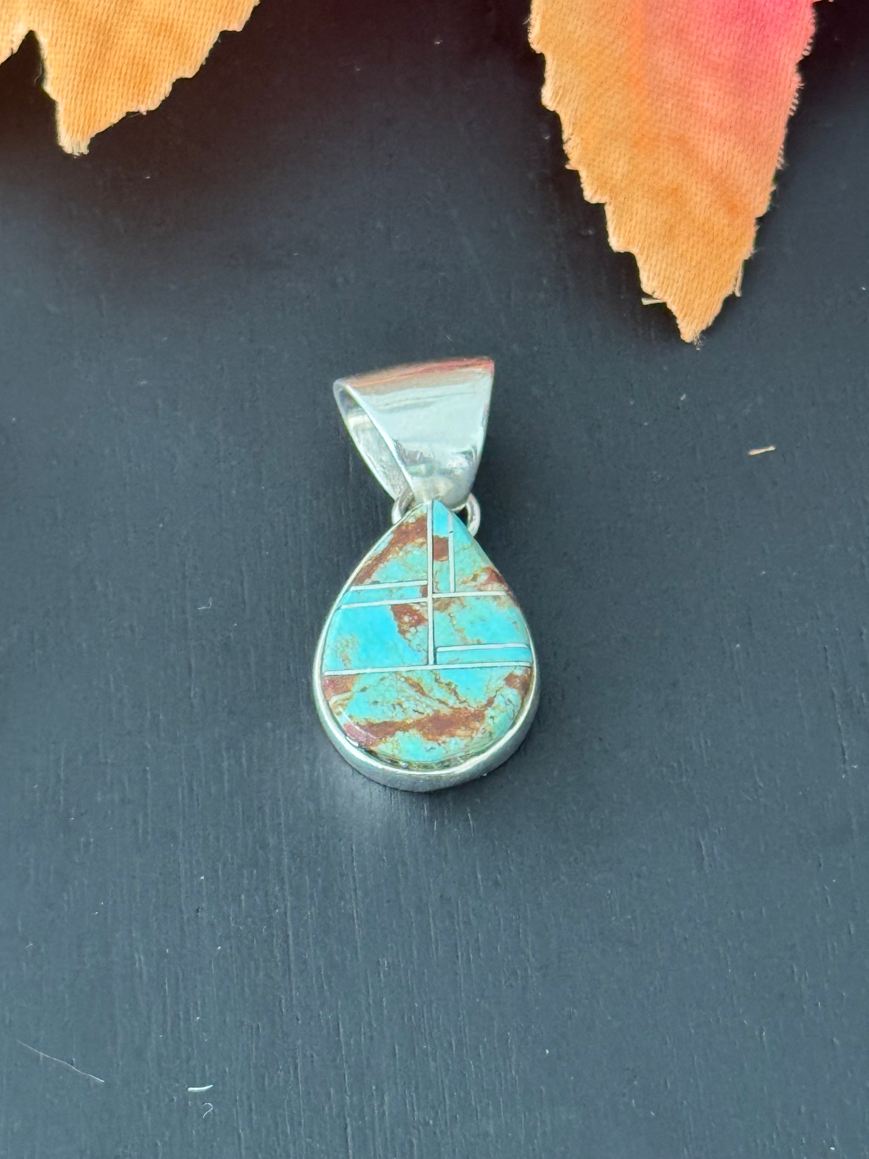 Navajo Made #8 Turquoise & Sterling Silver Inlay Pendant