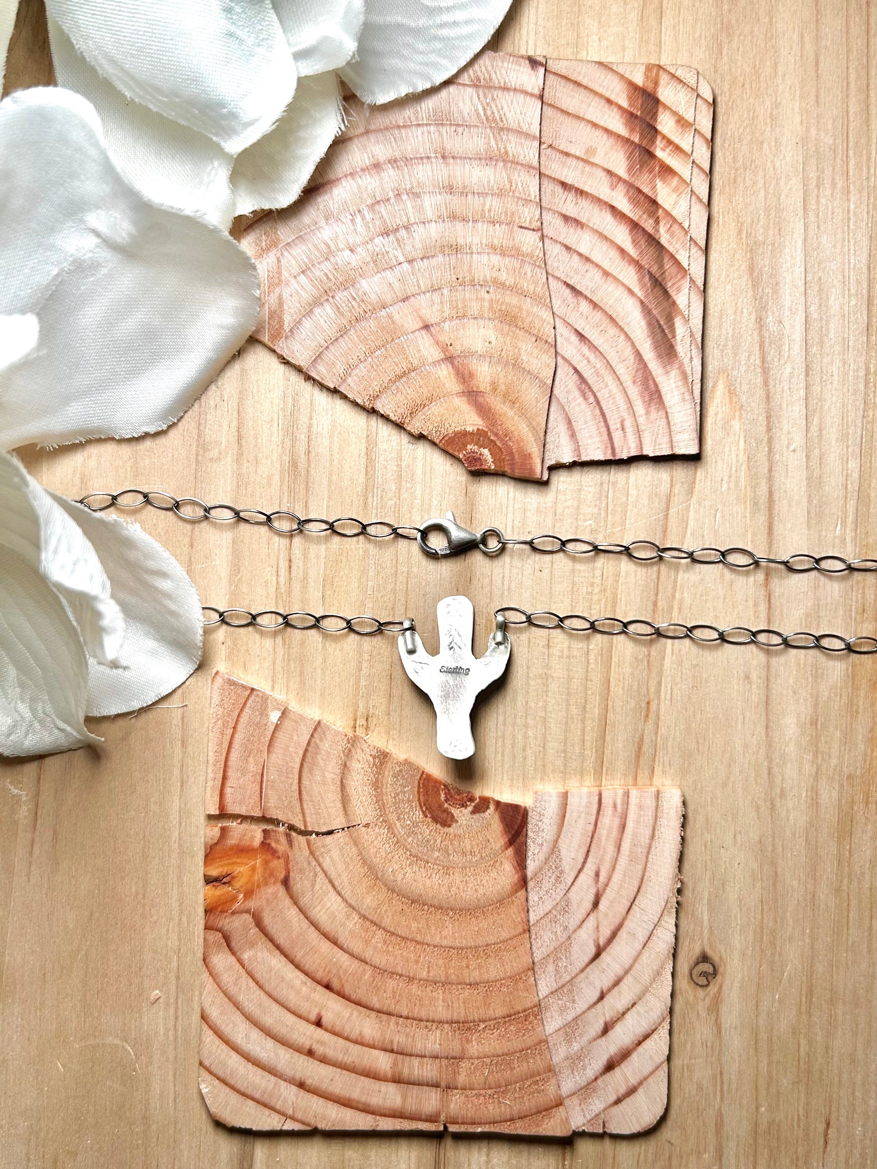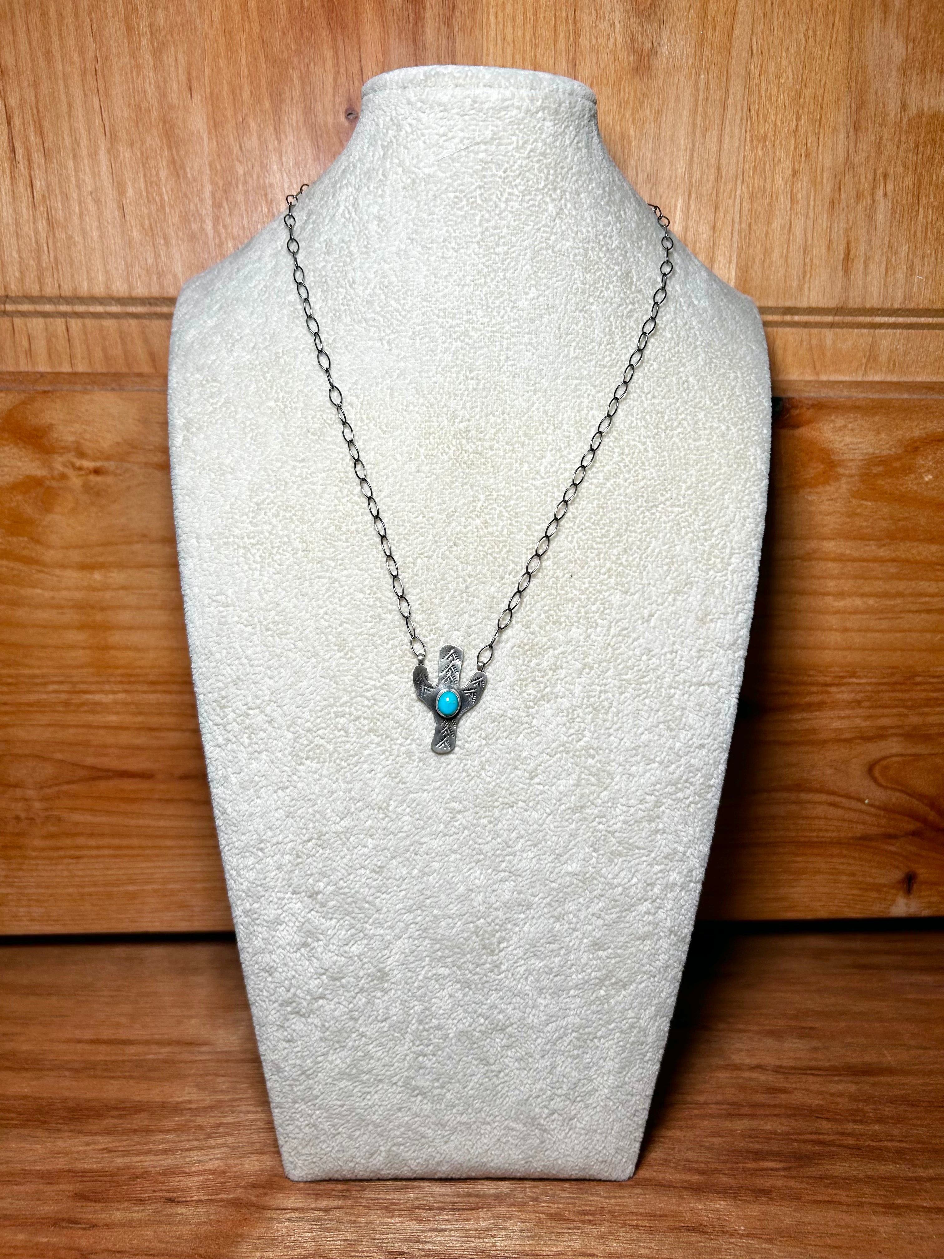 Navajo Made Kingman Turquoise & Sterling Silver Necklace. It measures 20 1/2 inches long with hang while the chain measures 18 1/4 inches long. Signed by the artist and stamped sterling silver.