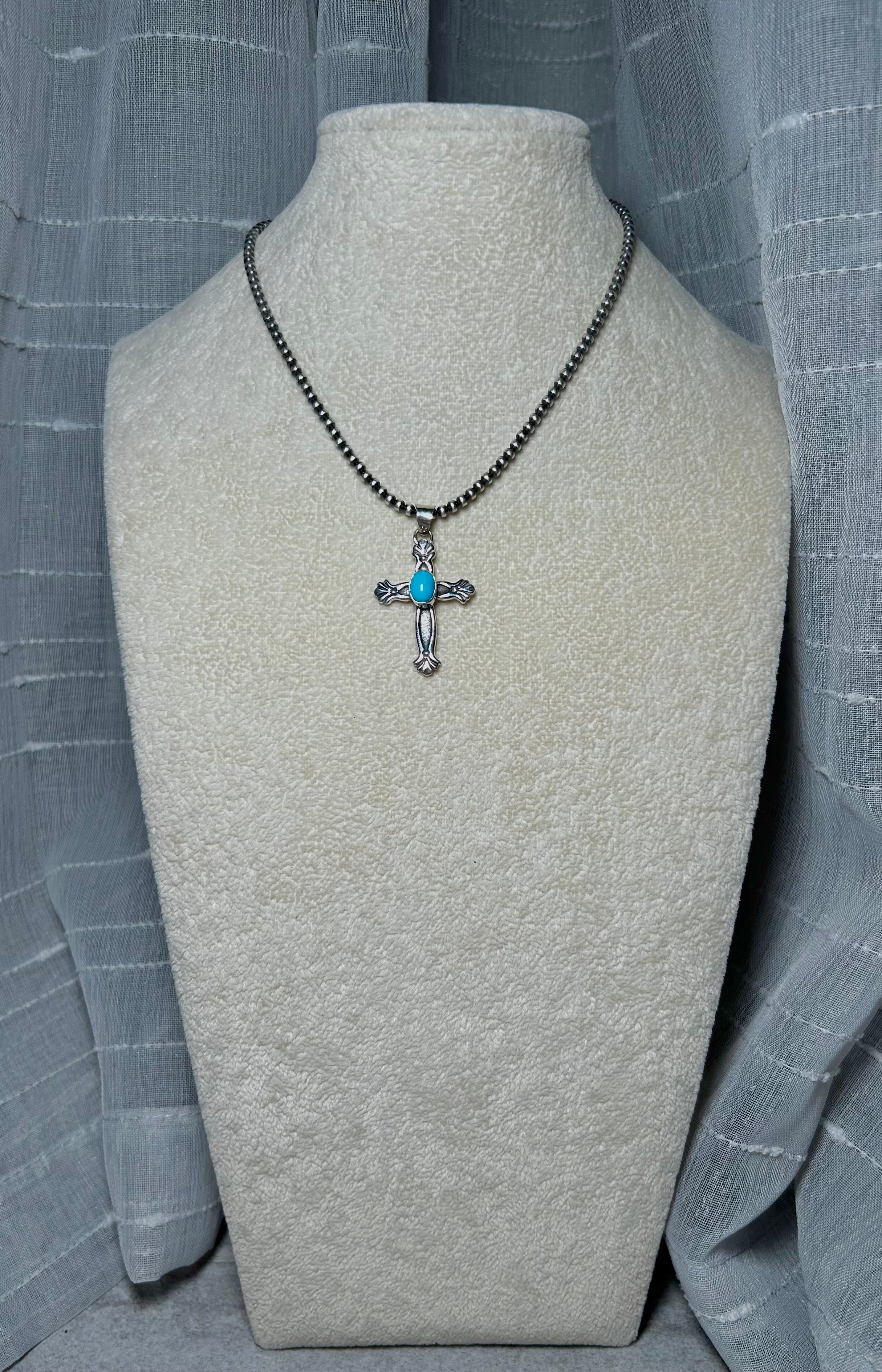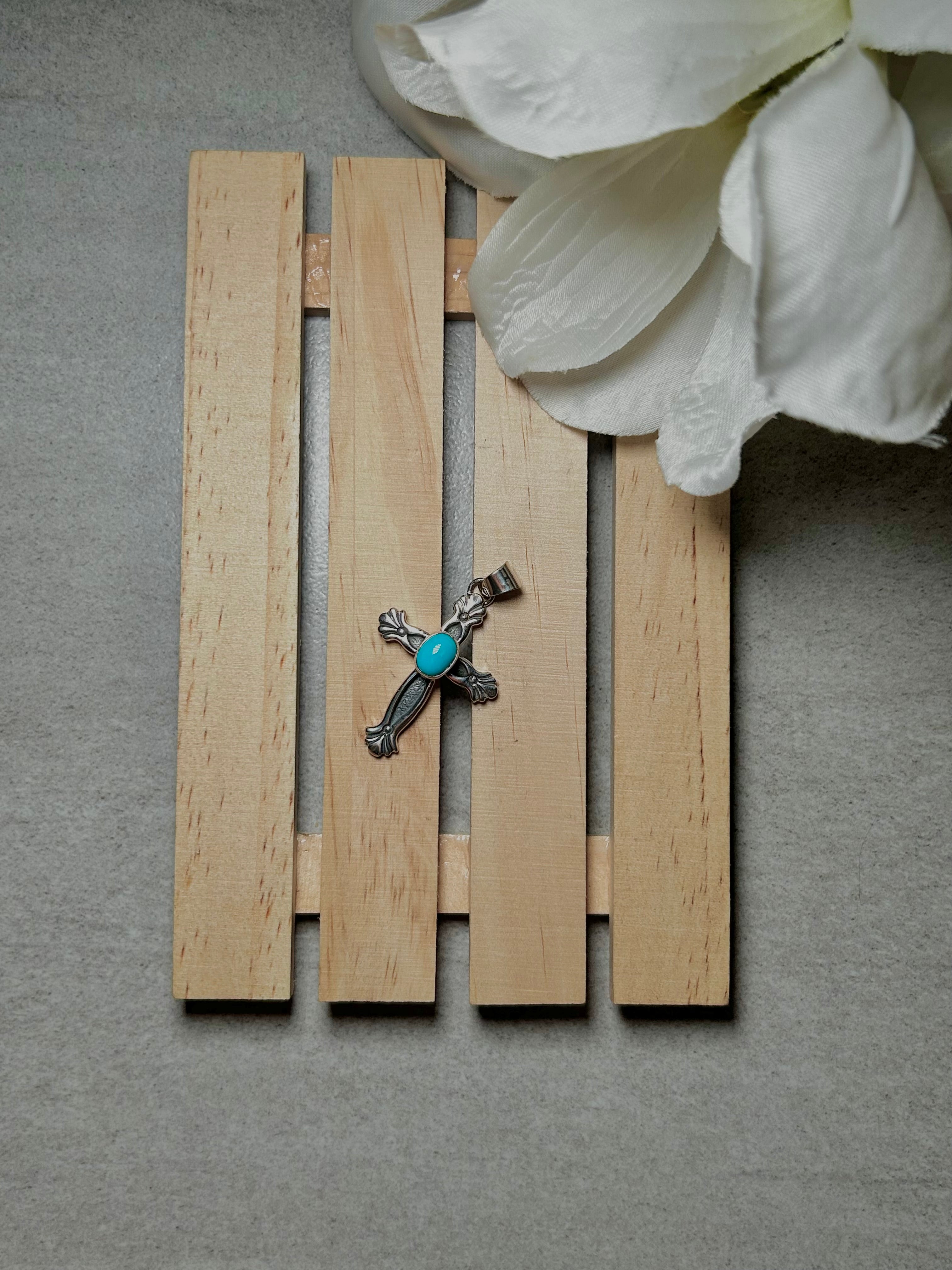 Navajo Made Kingman Turquoise & Sterling Silver Pendant