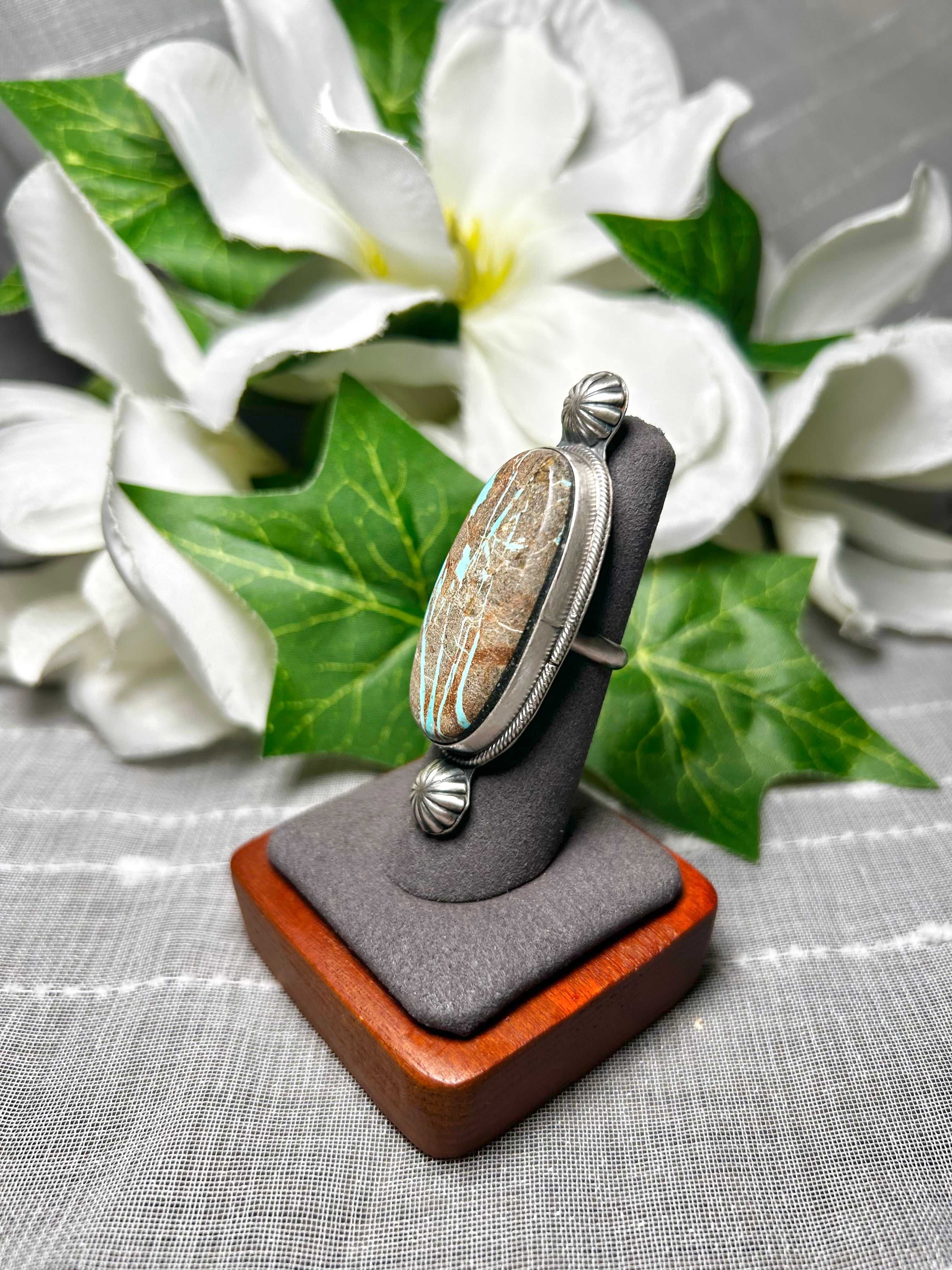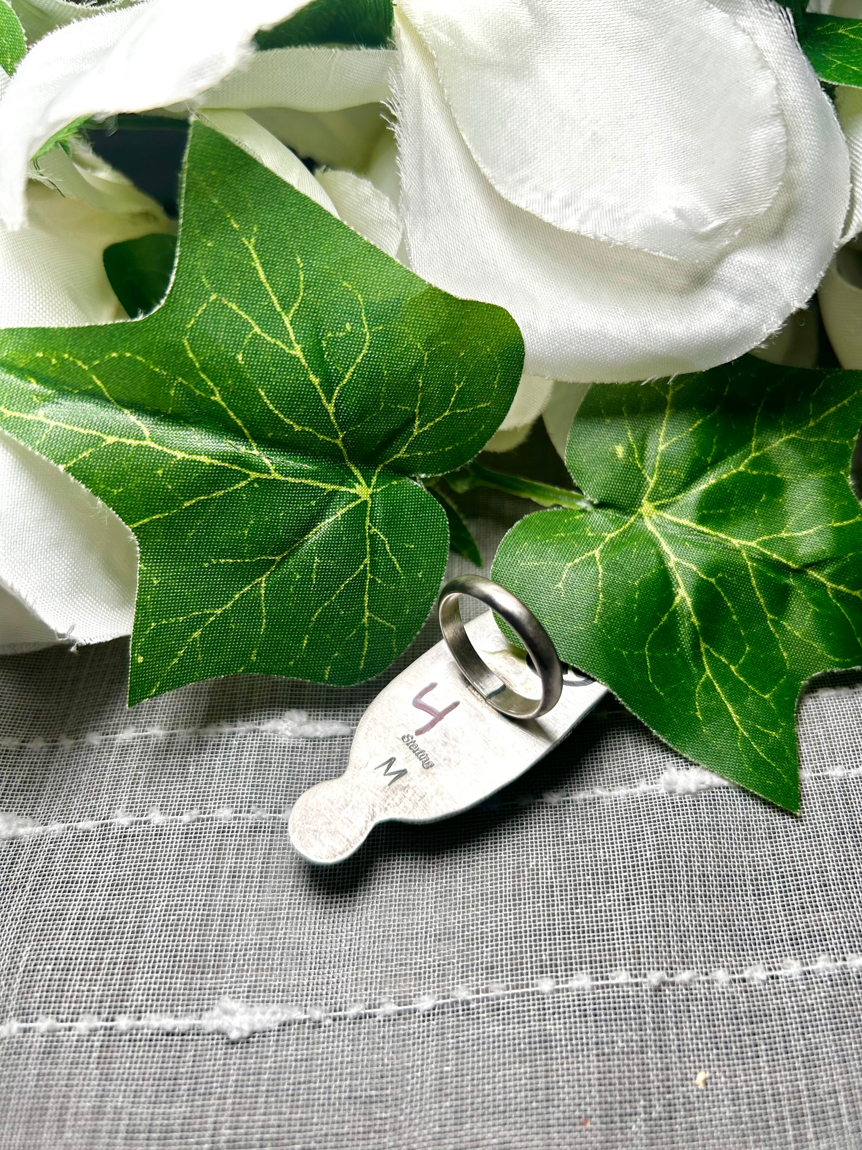 Navajo Made Pilot Mountain Turquoise & Sterling Silver Ring Size 6