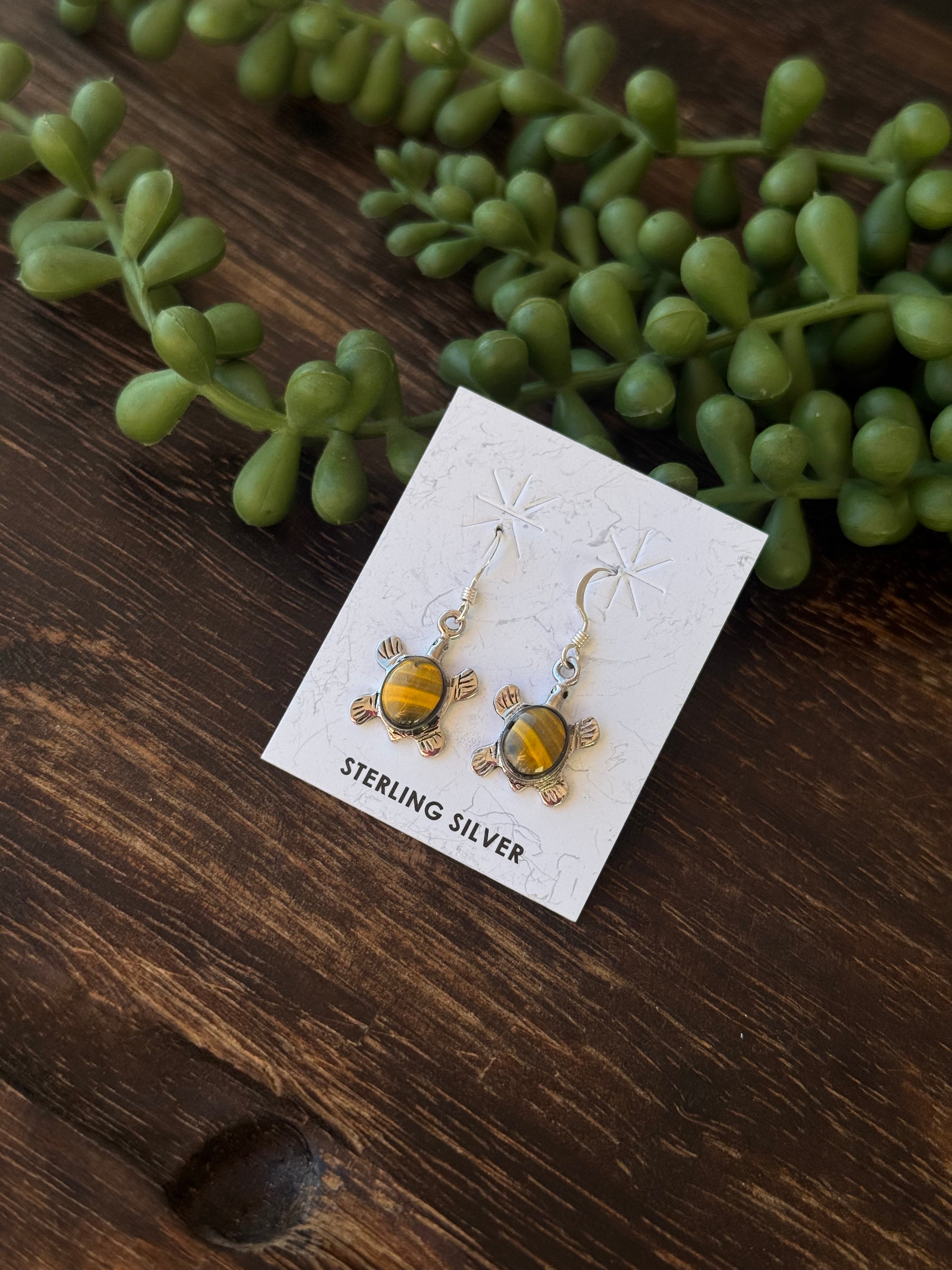 Navajo Made BB Agate & Sterling Silver Dangle Turtle Earrings