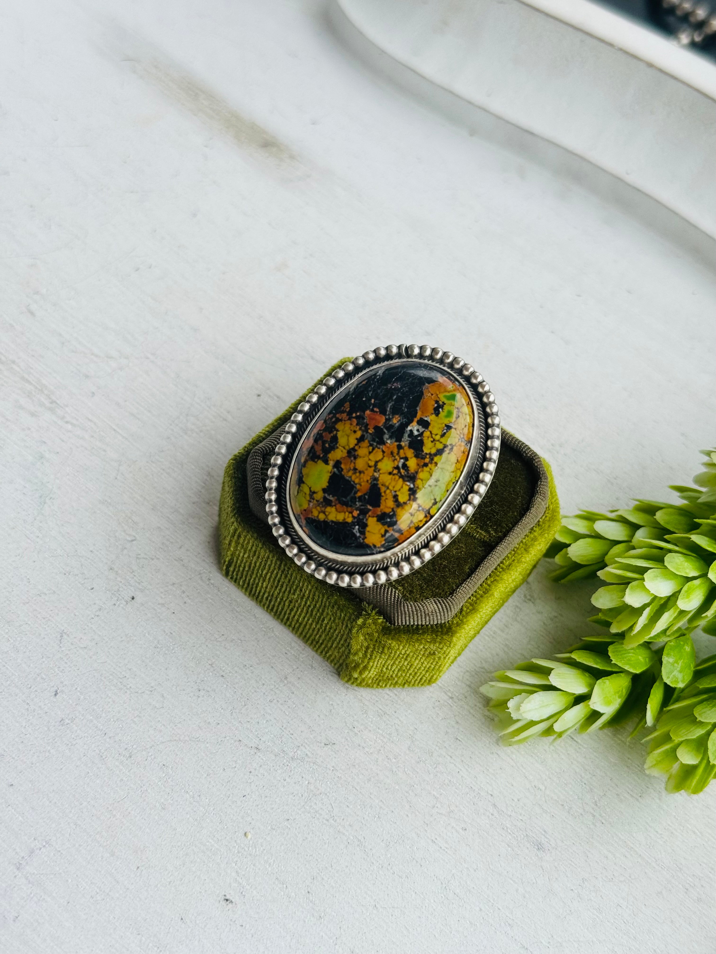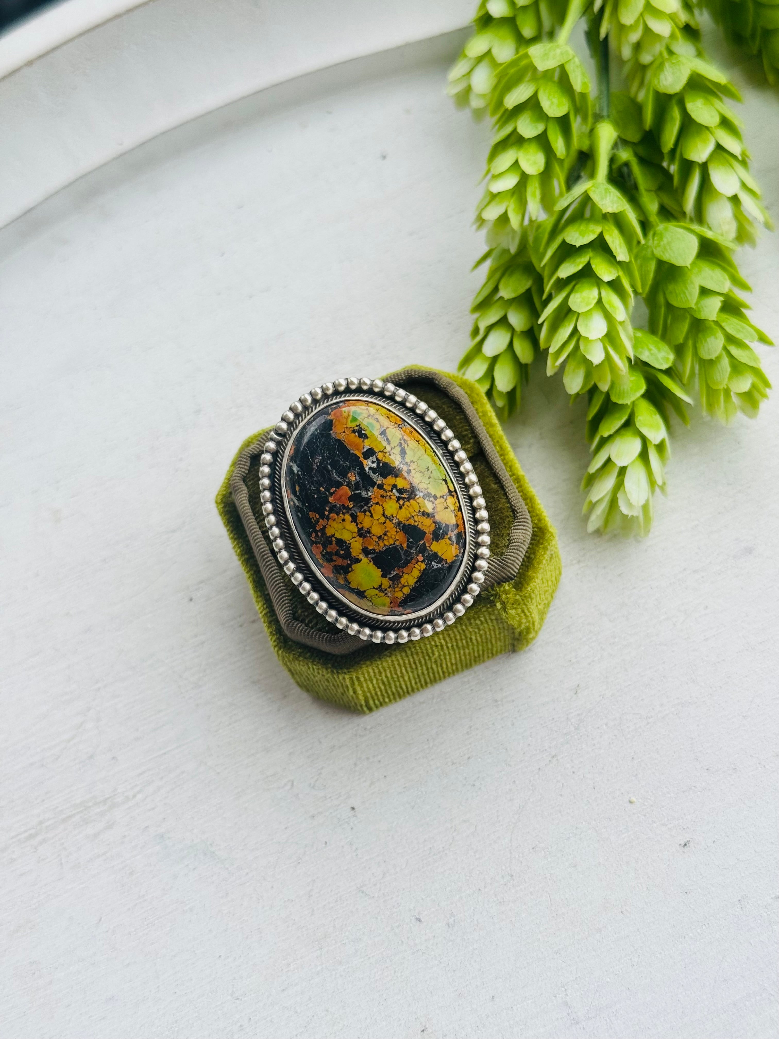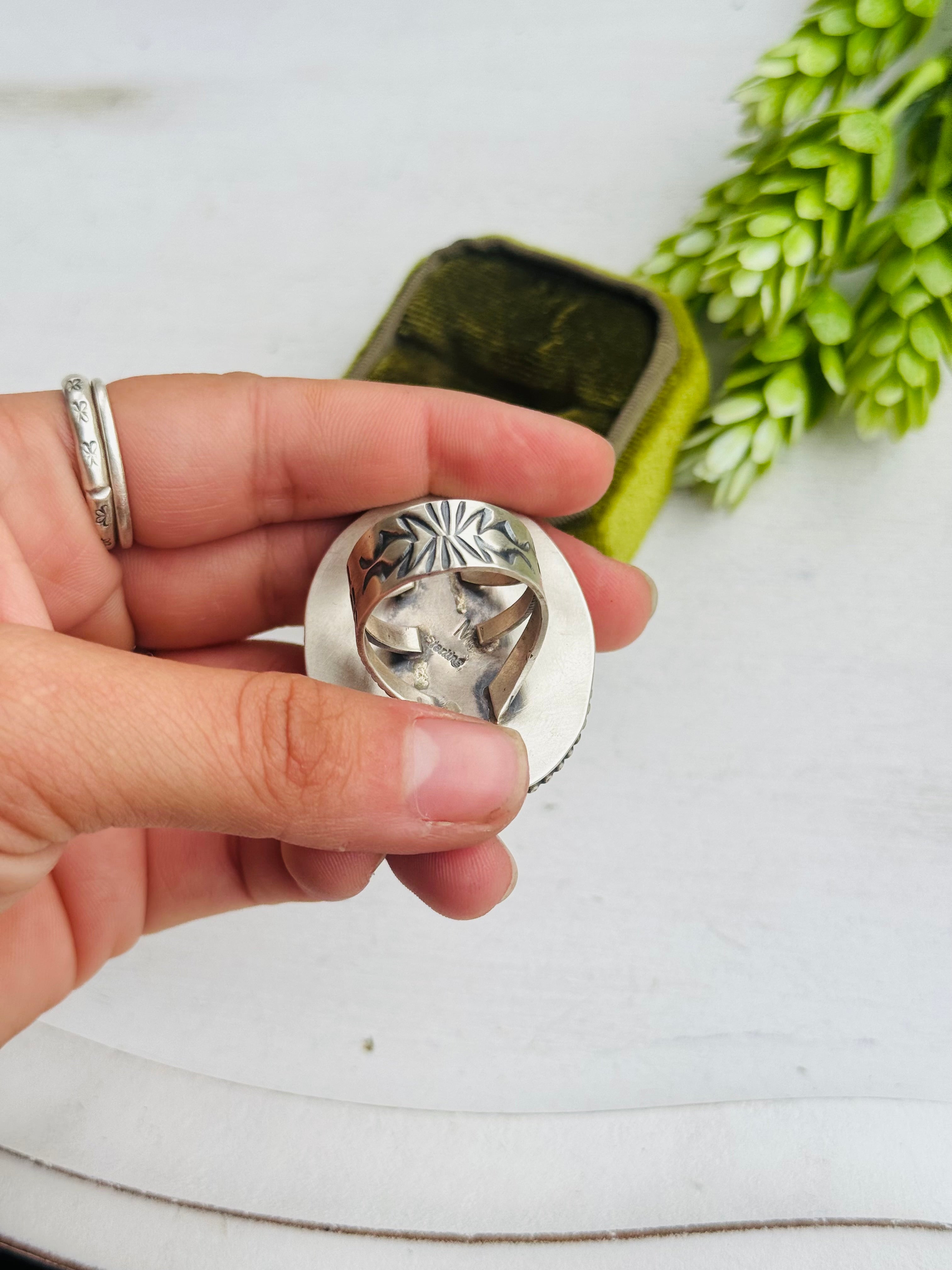 Navajo Made Black Jack Turquoise & Sterling Silver Ring Size 8.5