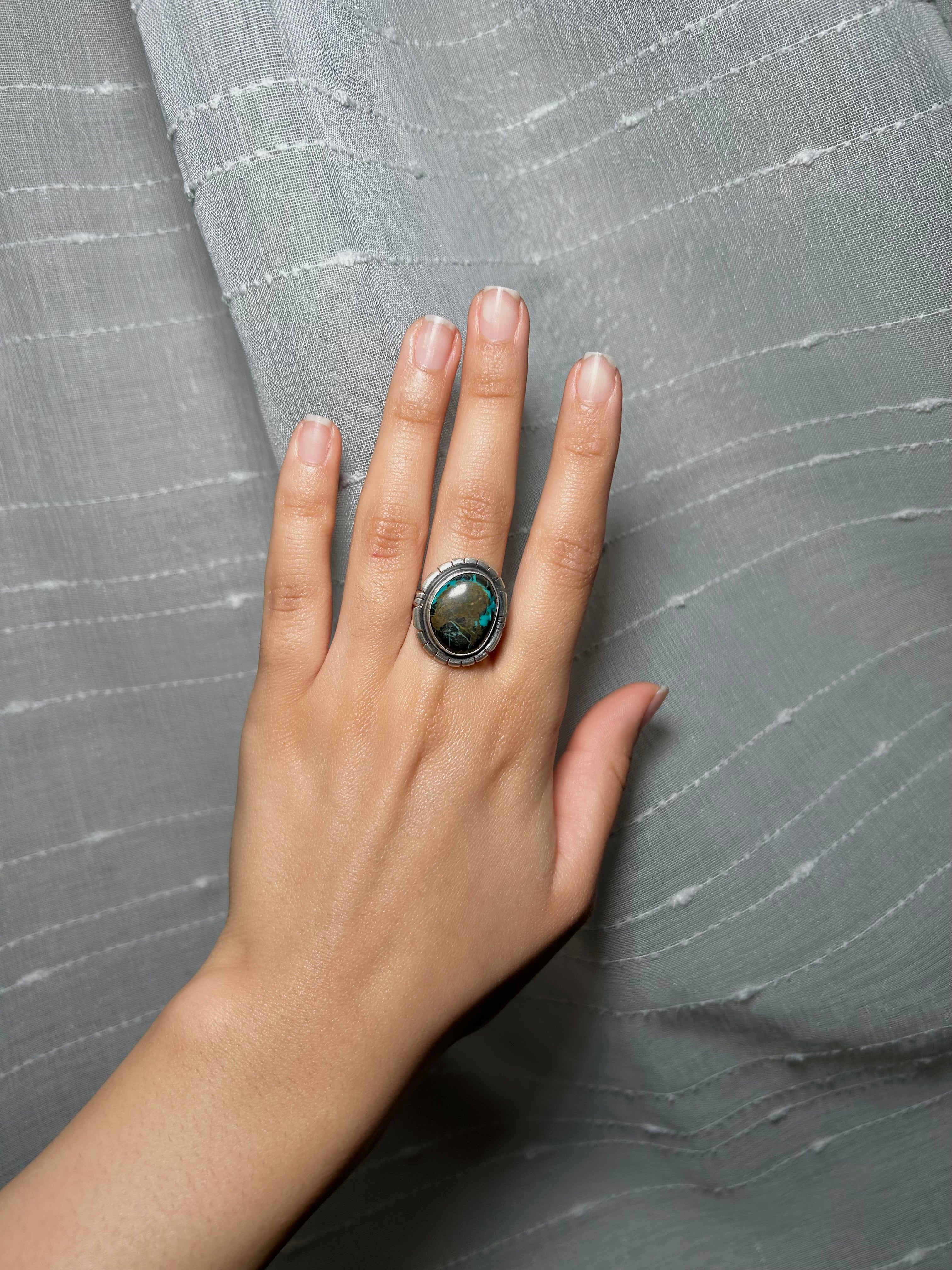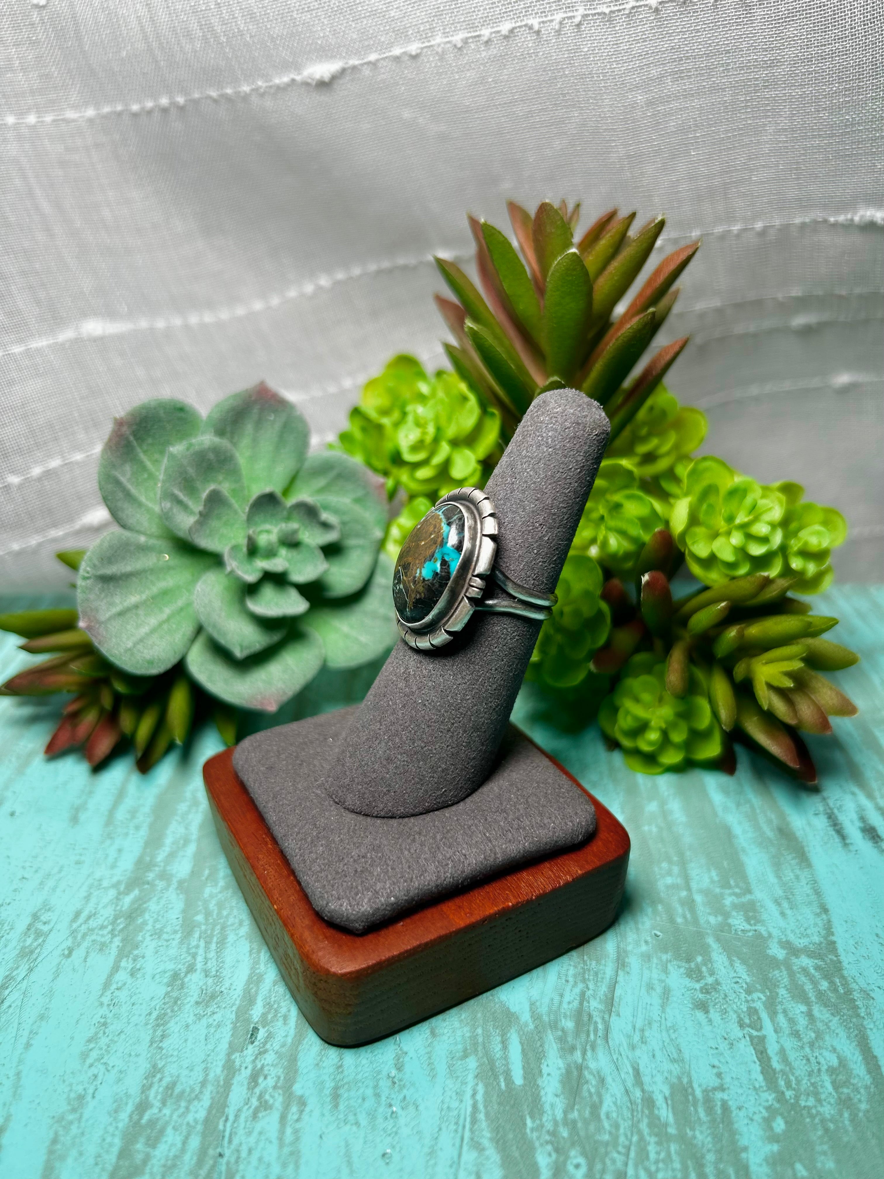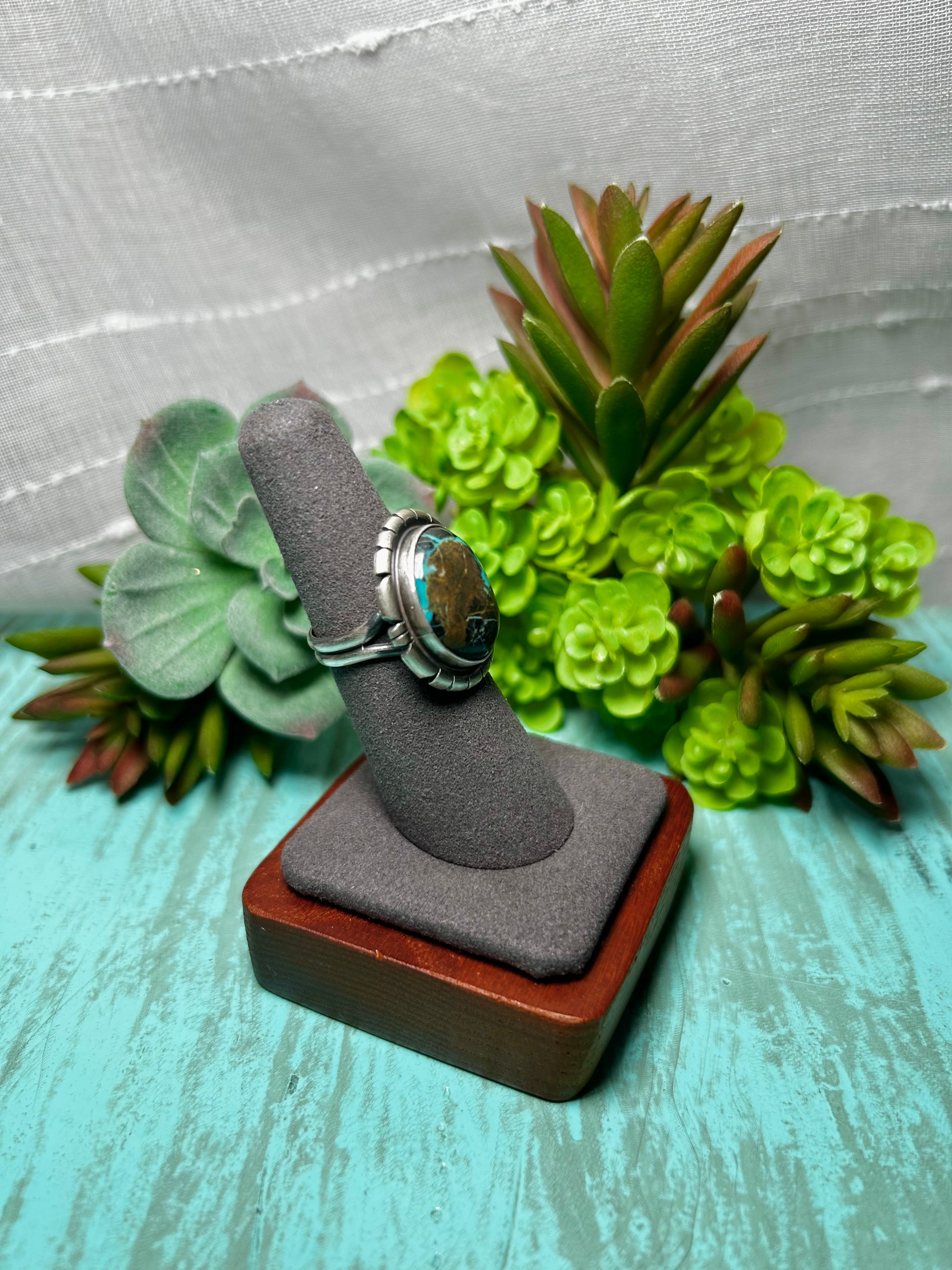 Navajo Made Blue Moon Turquoise & Sterling Sliver Ring Size 6.5