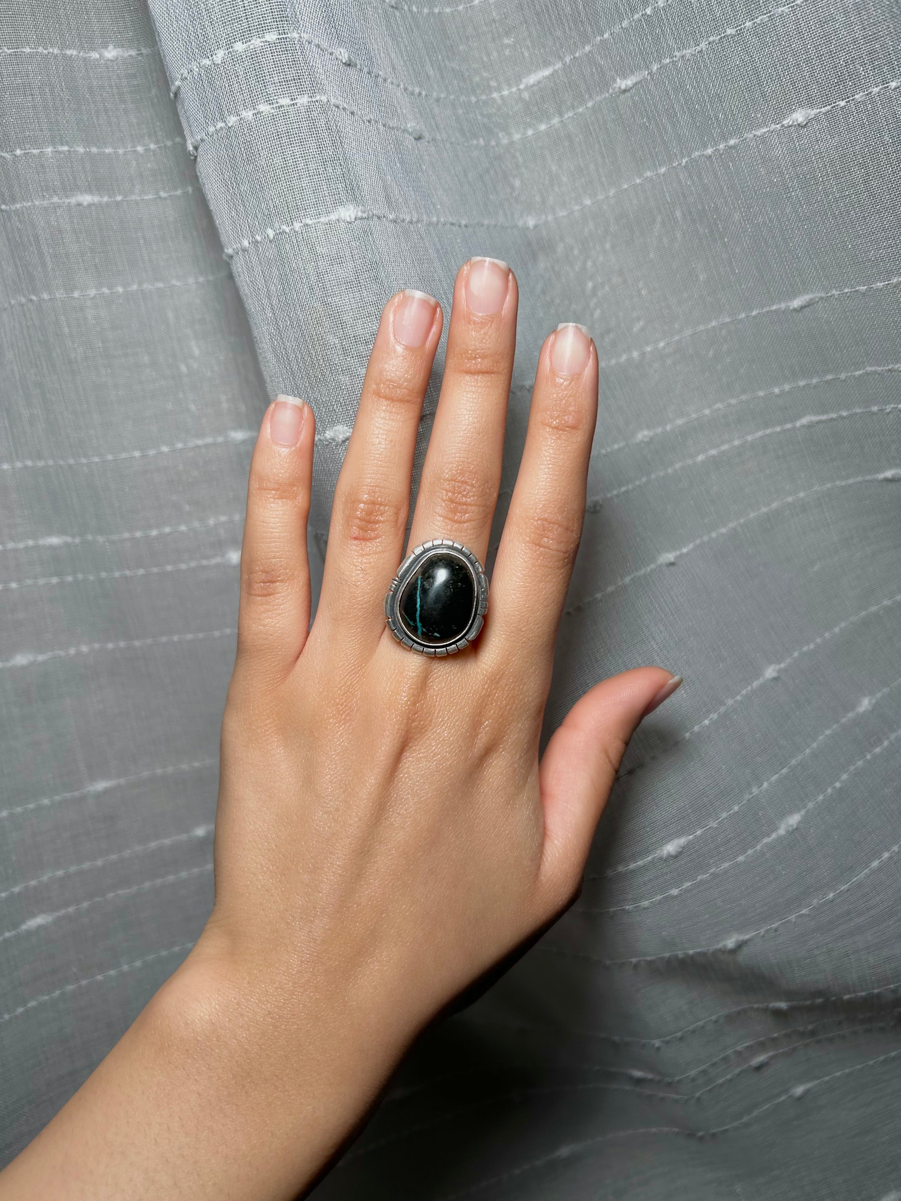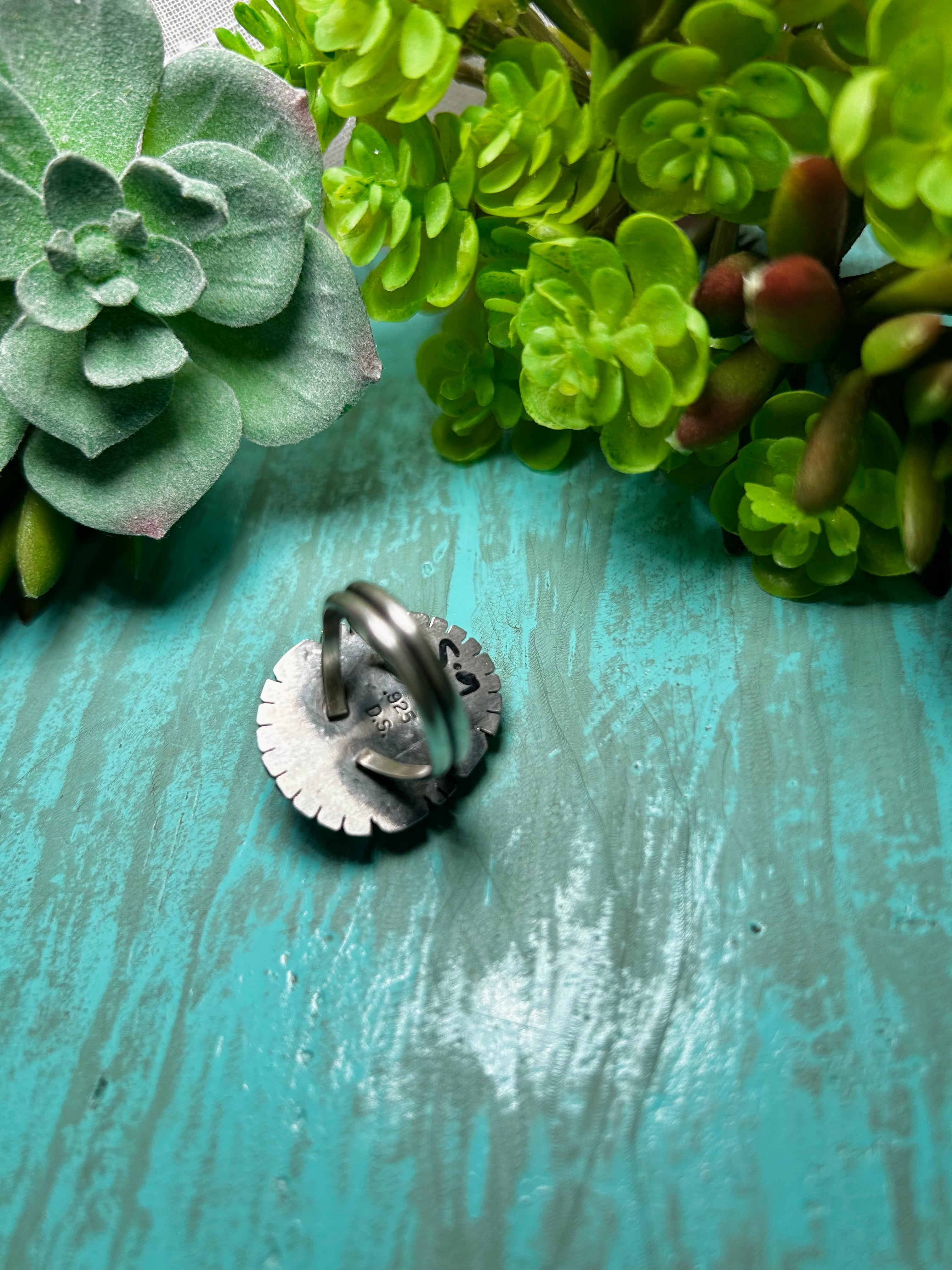 Navajo Made Blue Moon Turquoise & Sterling Sliver Ring Size 6.75