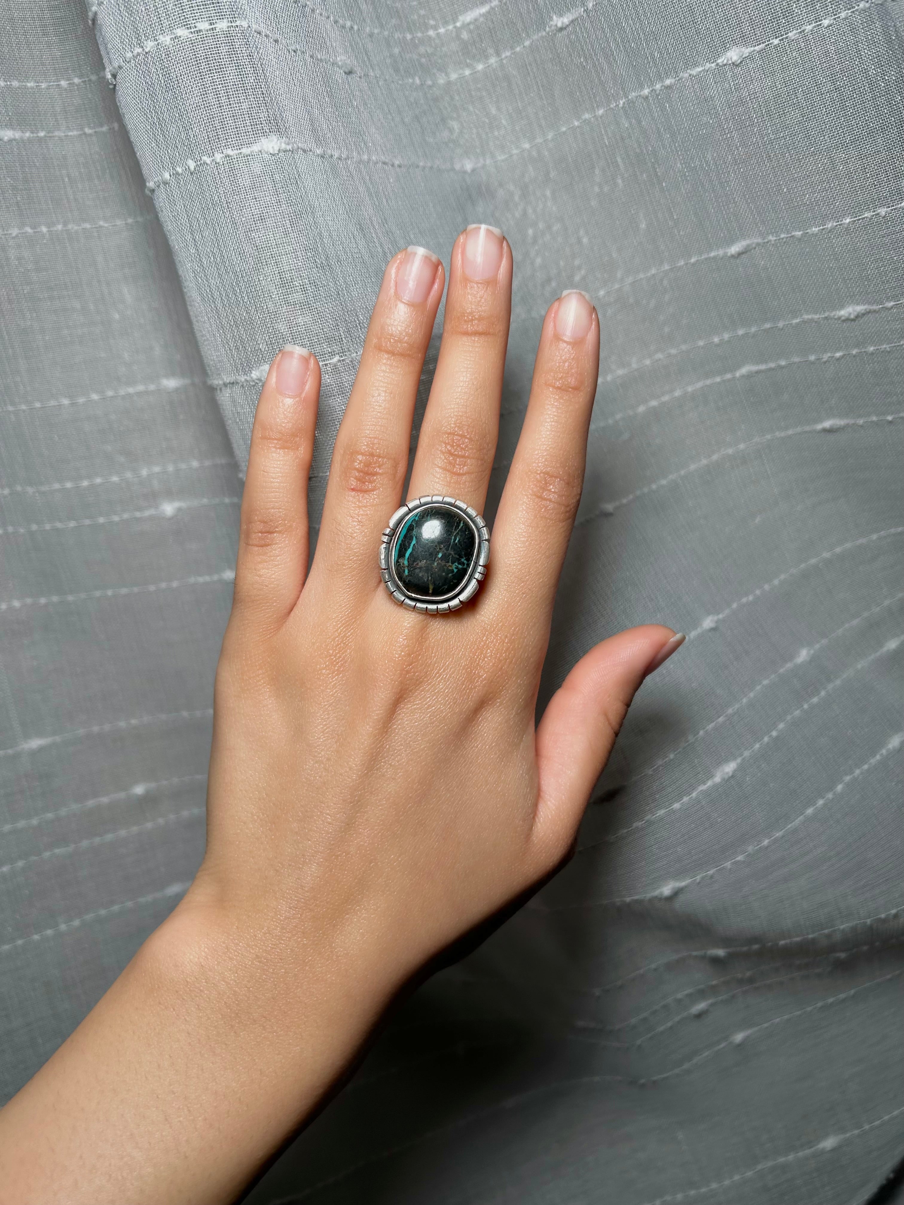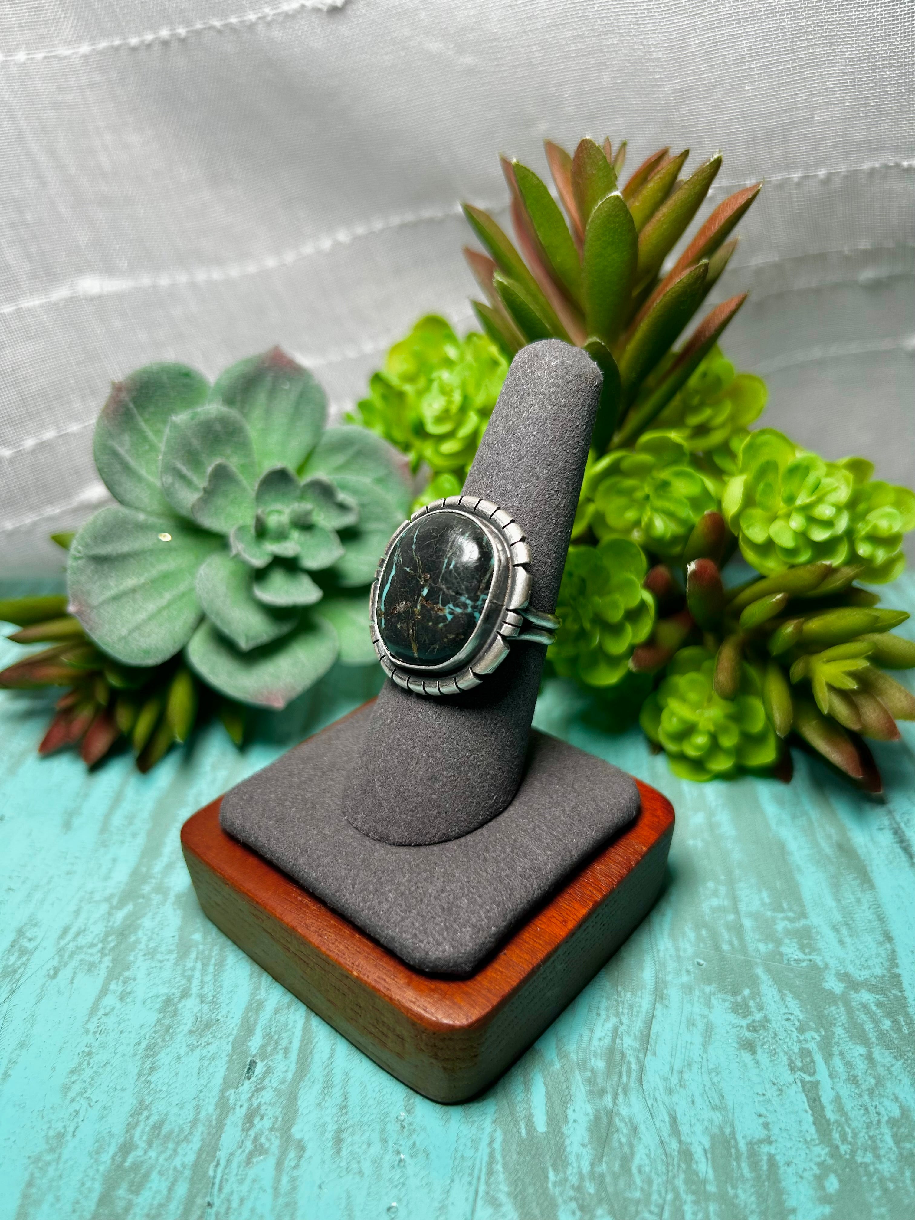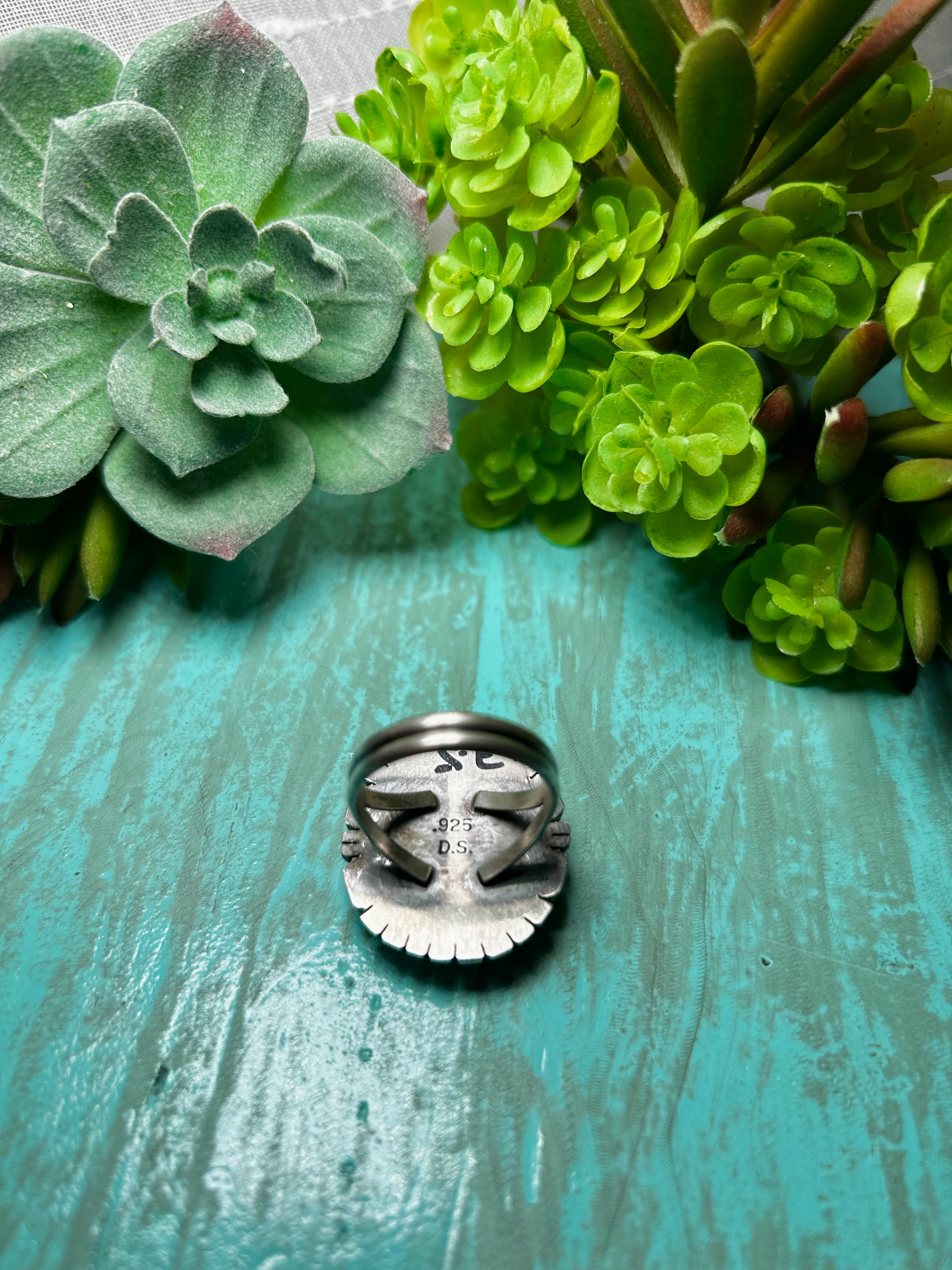 Navajo Made Blue Moon Turquoise & Sterling Sliver Ring Size 7.75
