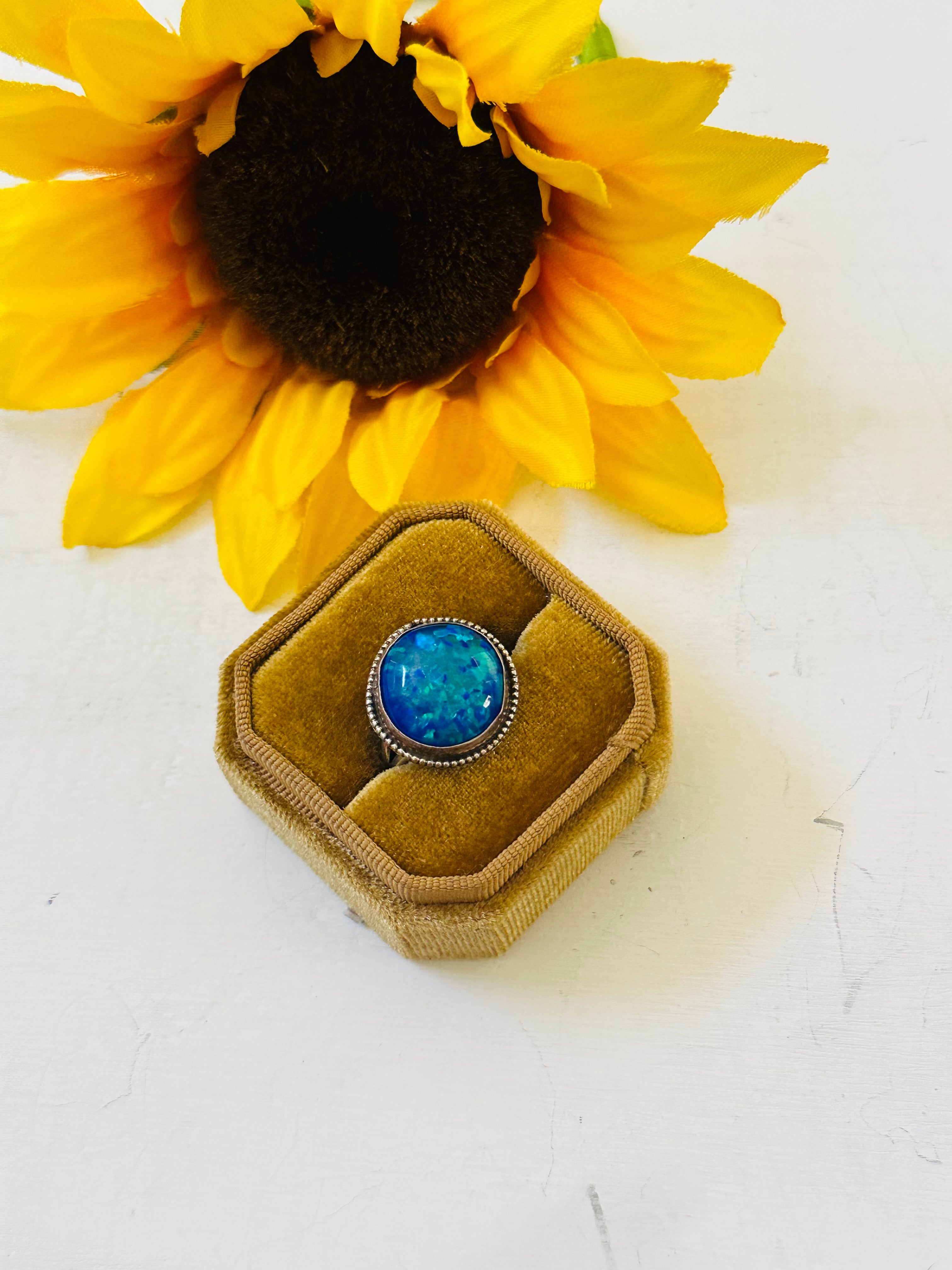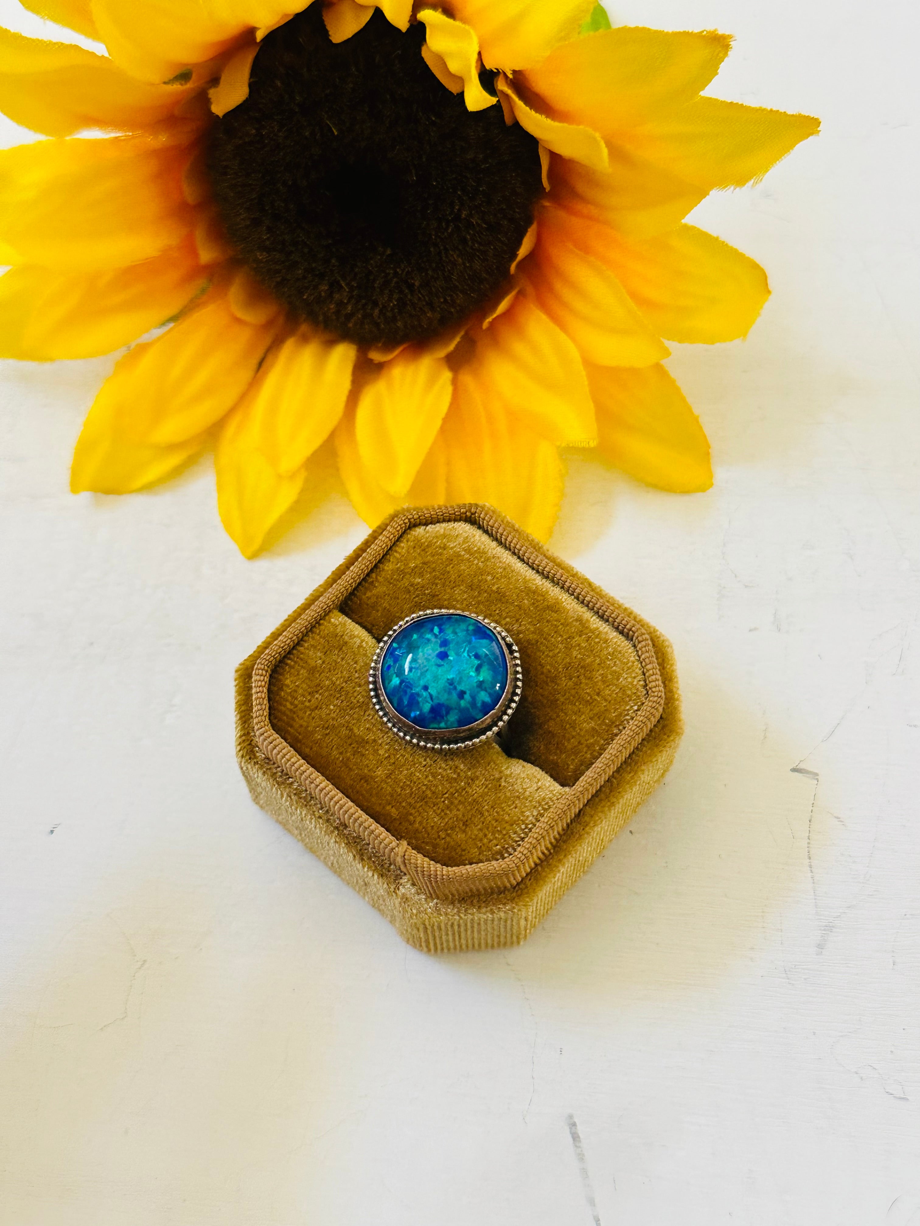 Navajo Made Blue Opal & Sterling Silver Ring Size 8.5