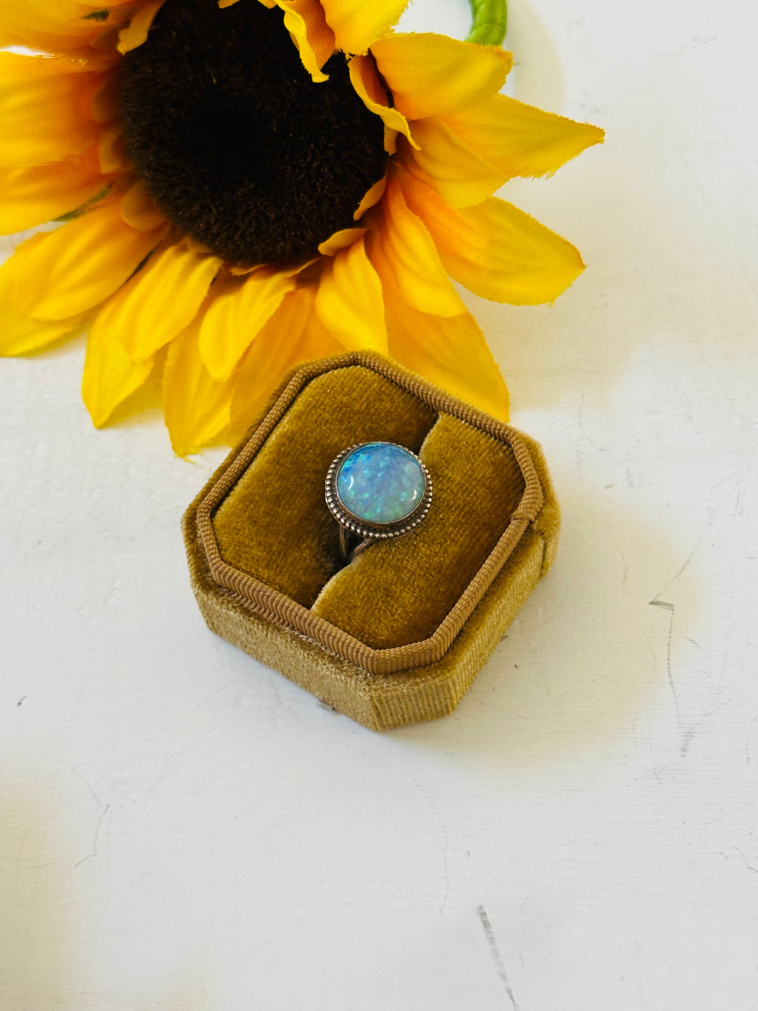 Navajo Made Blue Opal & Sterling Silver Ring Size 8