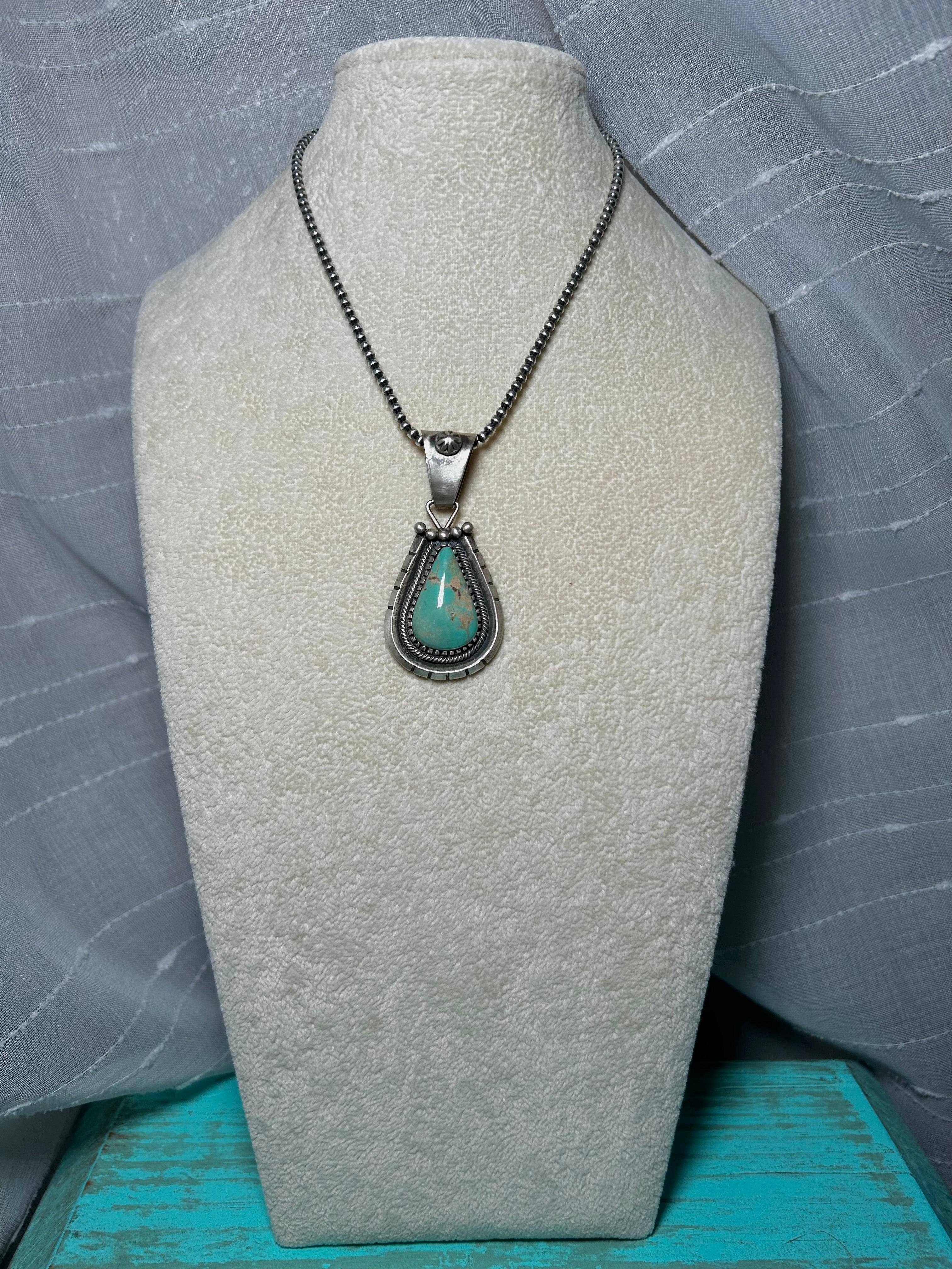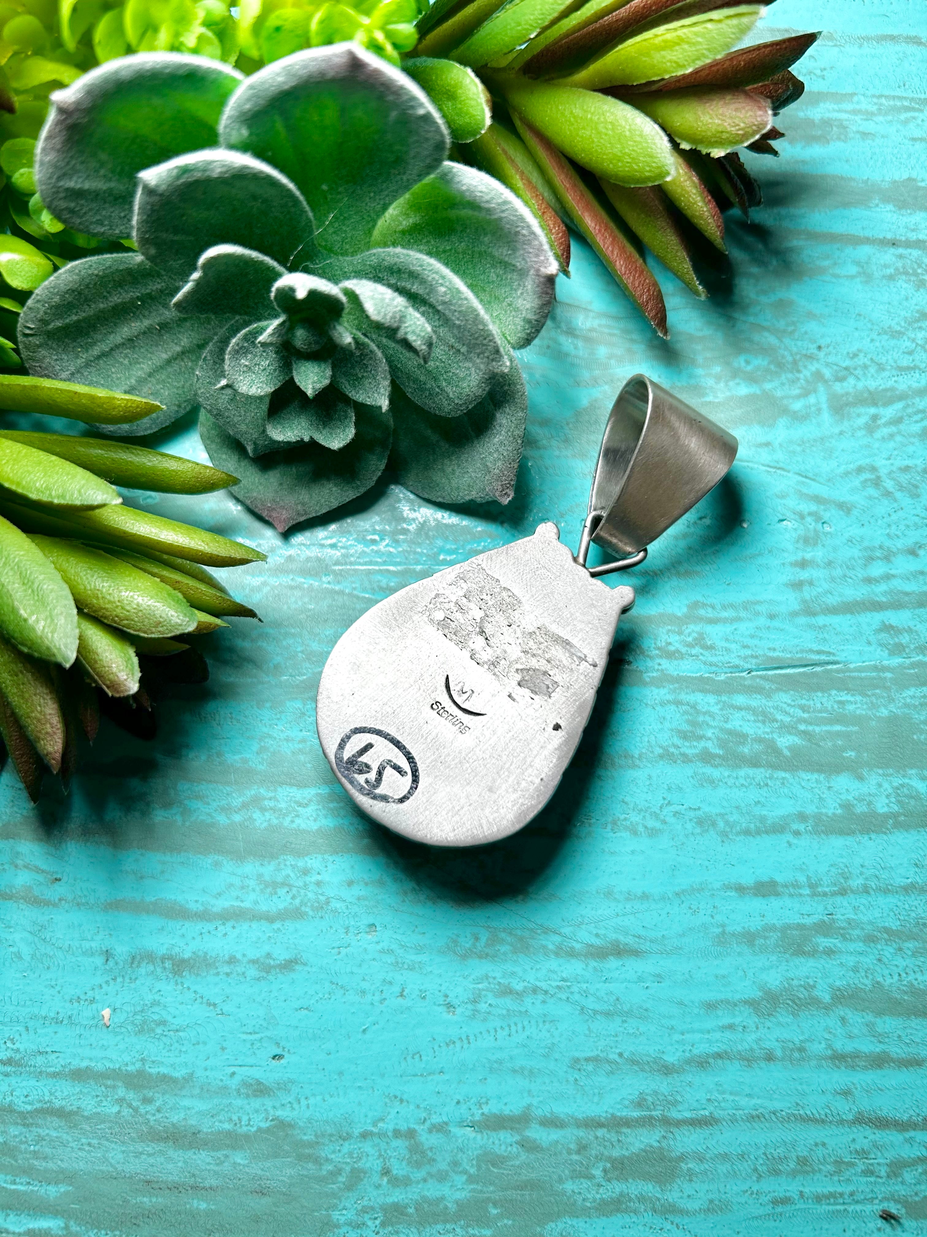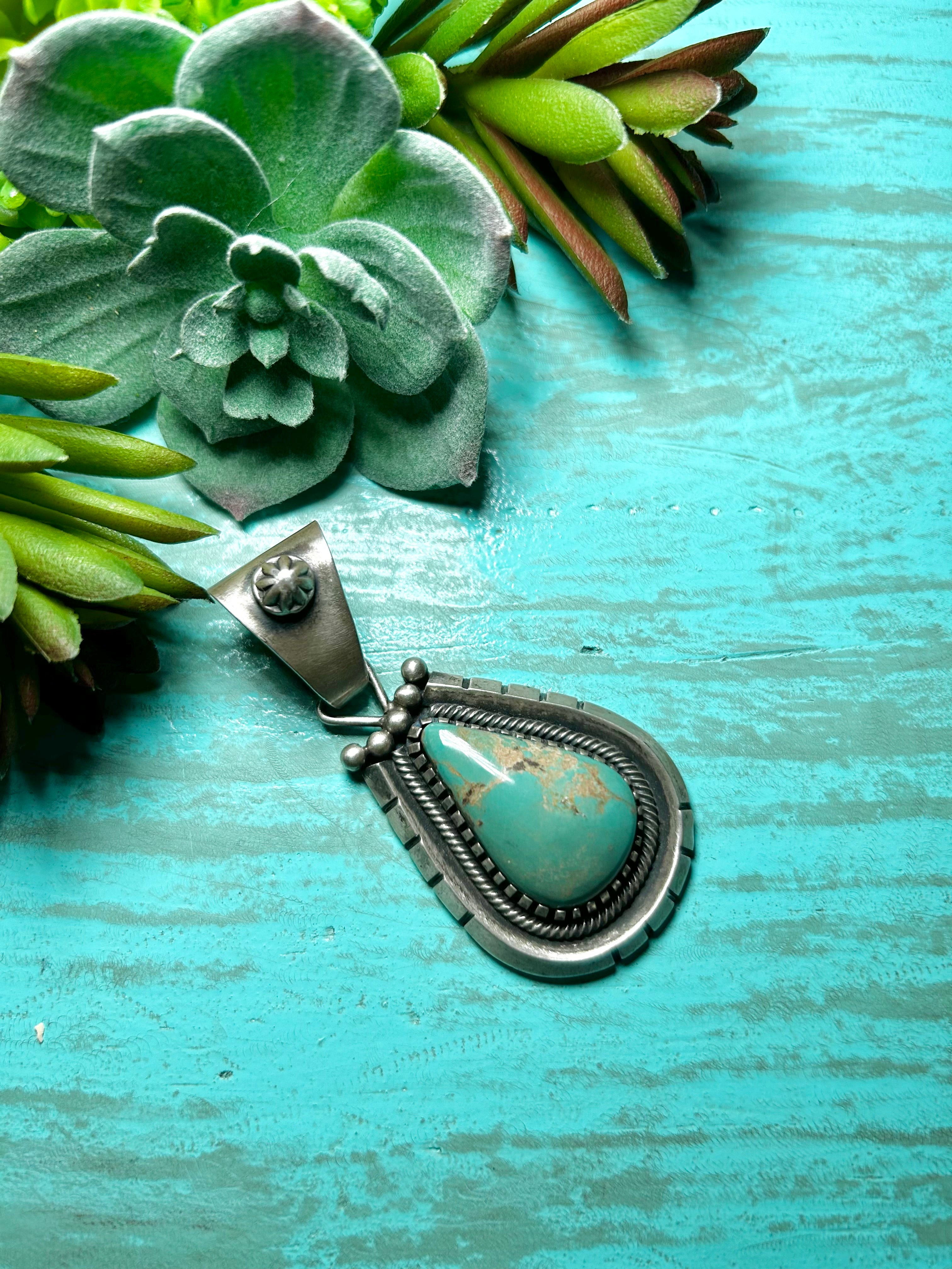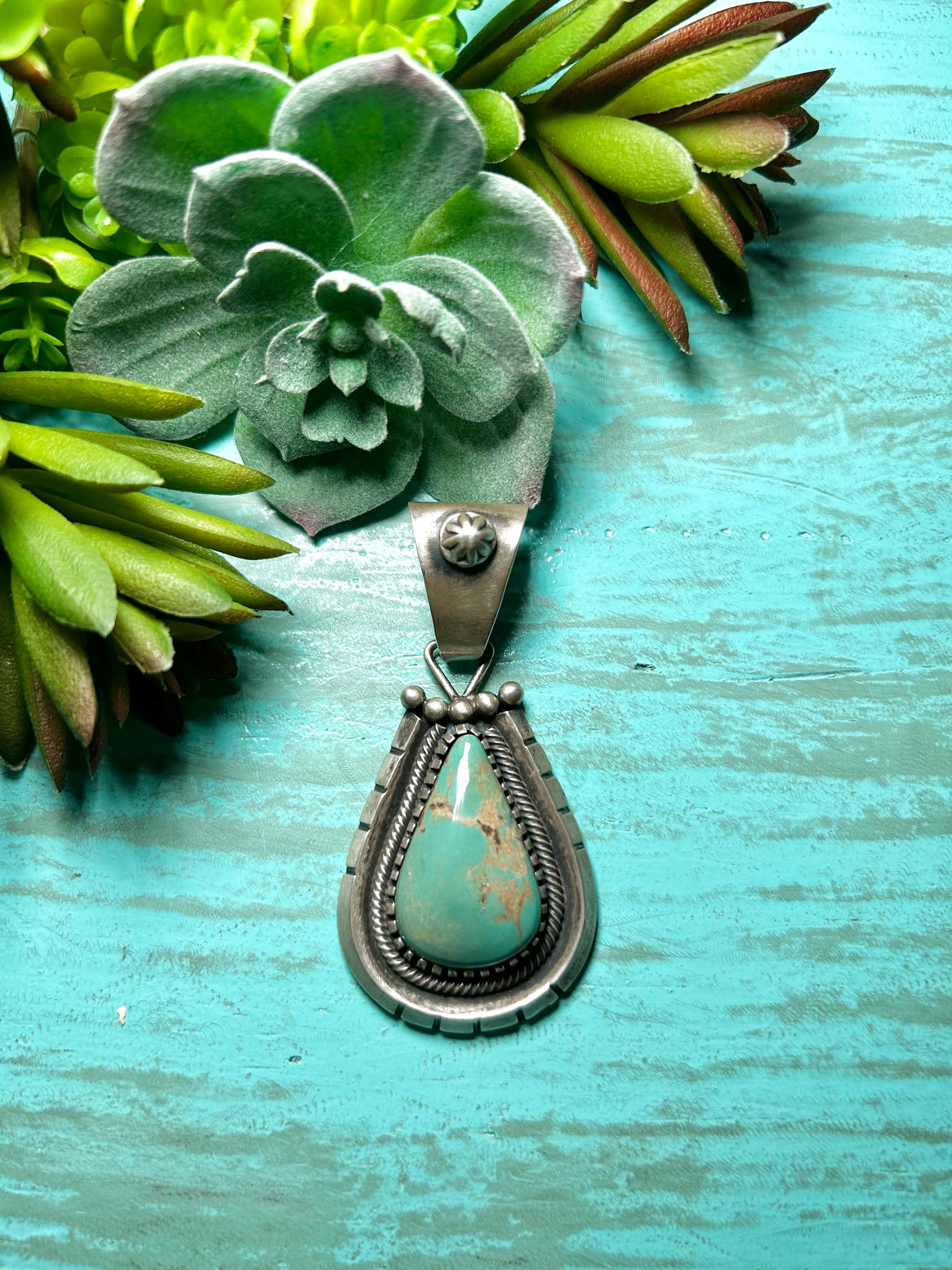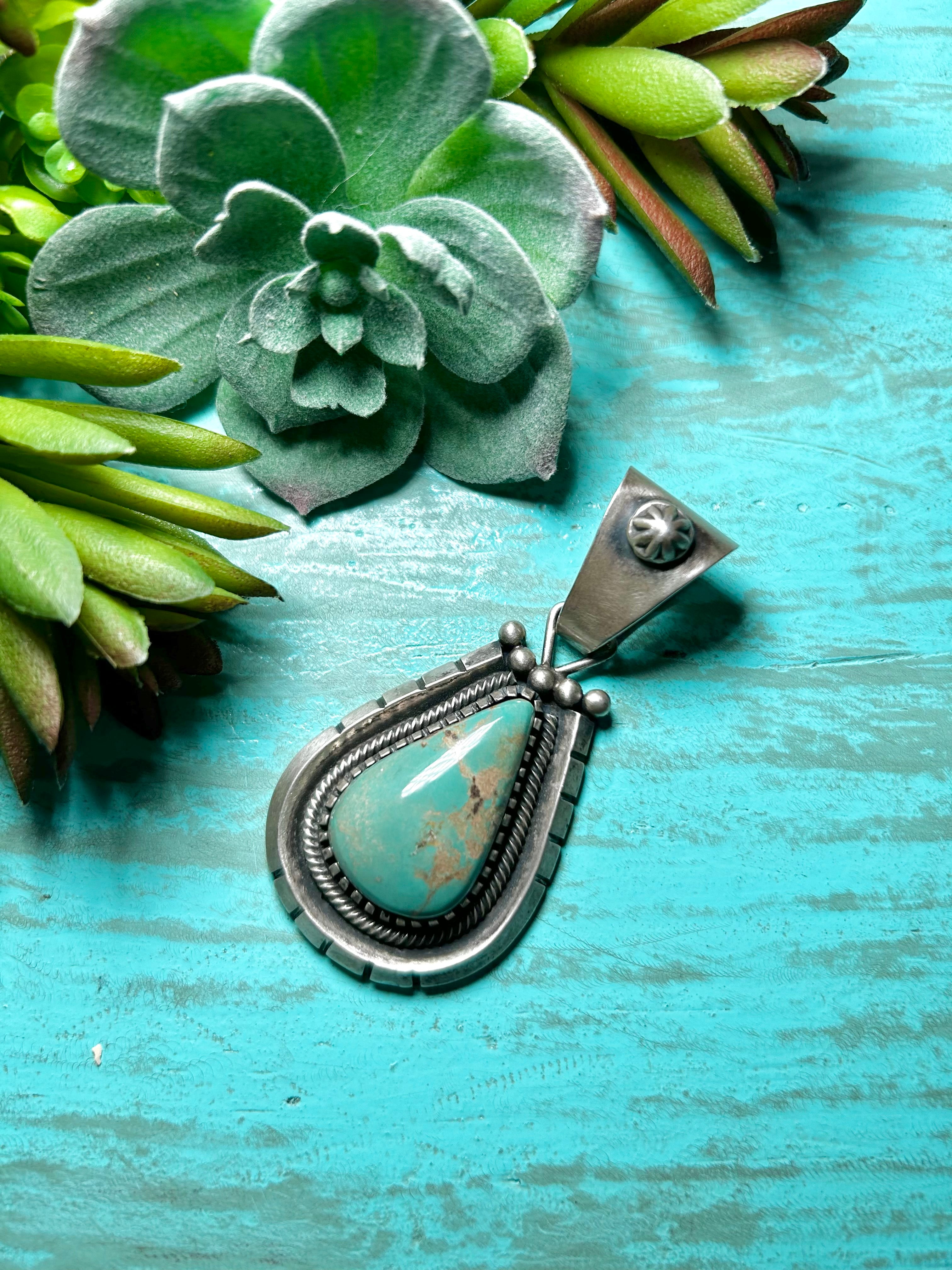Navajo Made Kingman Turquoise & Sterling Silver Pendant
