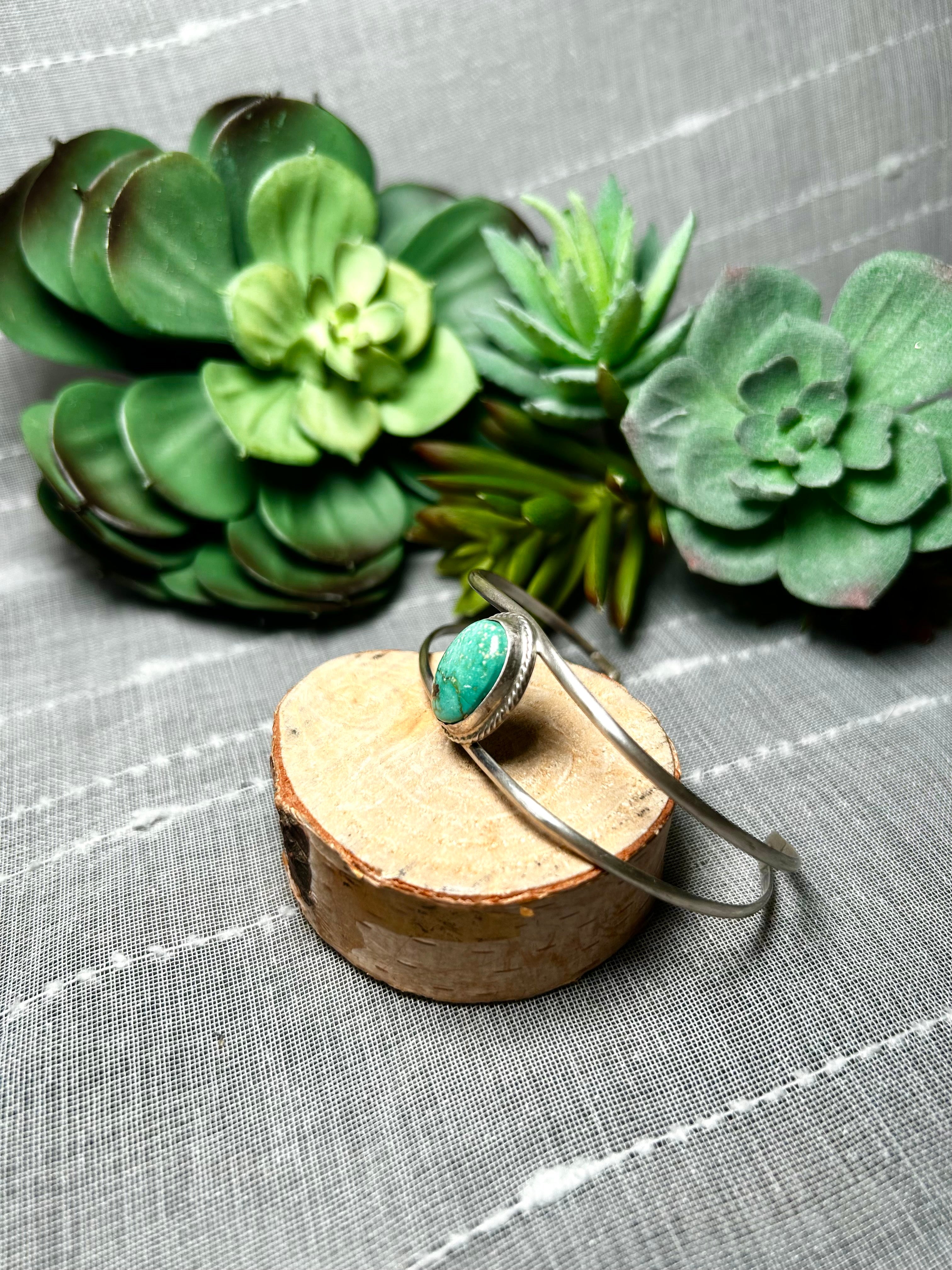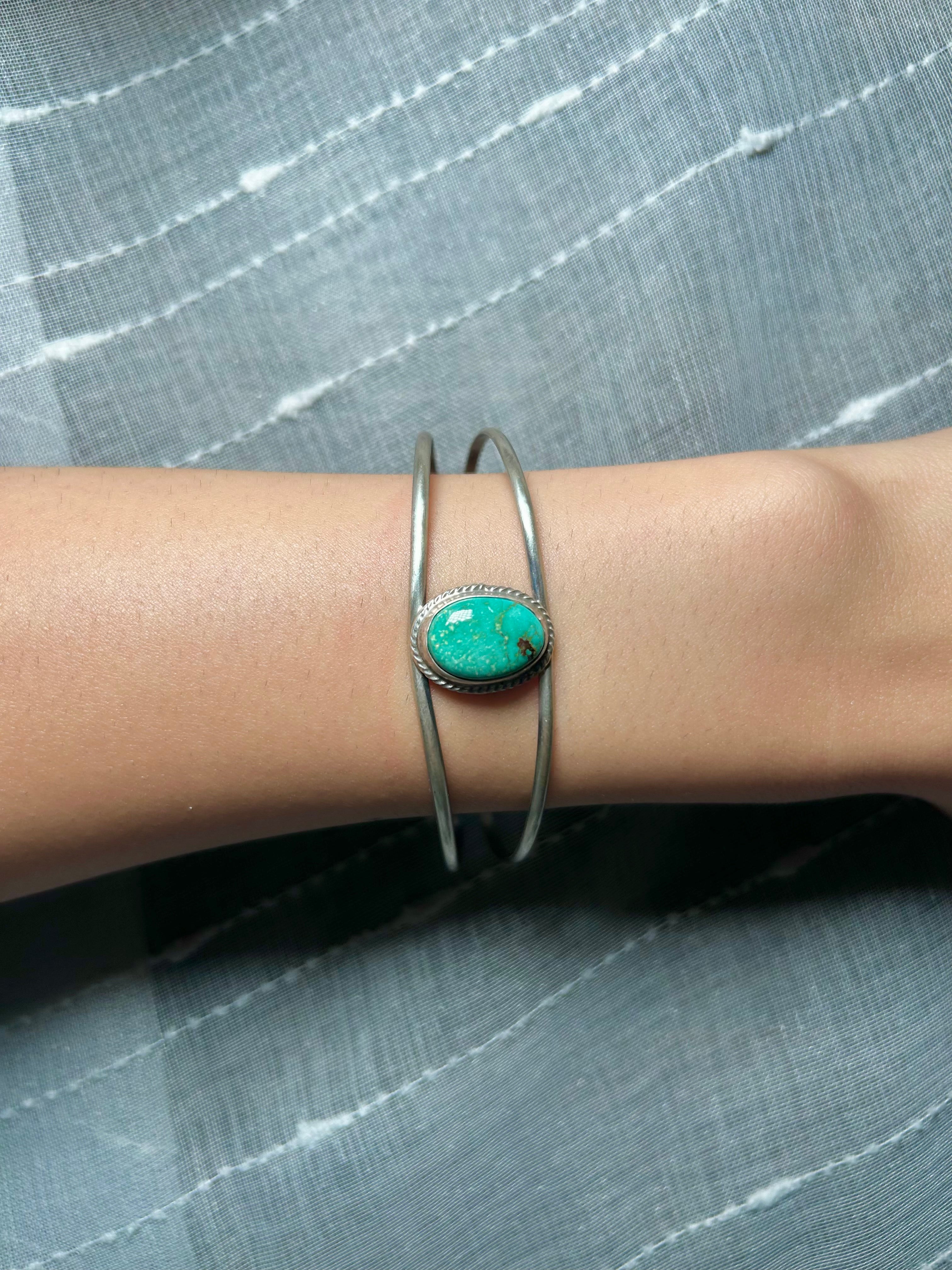 Navajo Made Emerald Valley Turquoise & Sterling Silver Cuff Bracelet