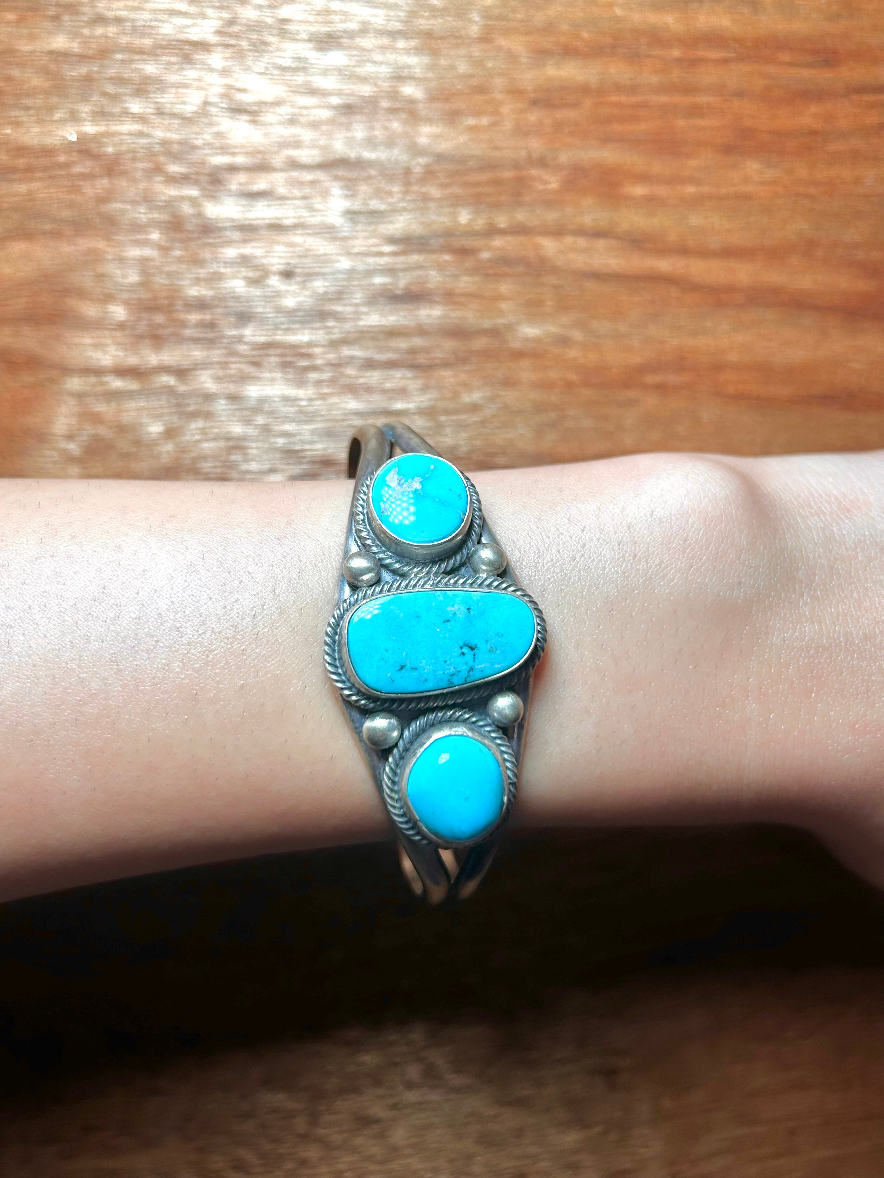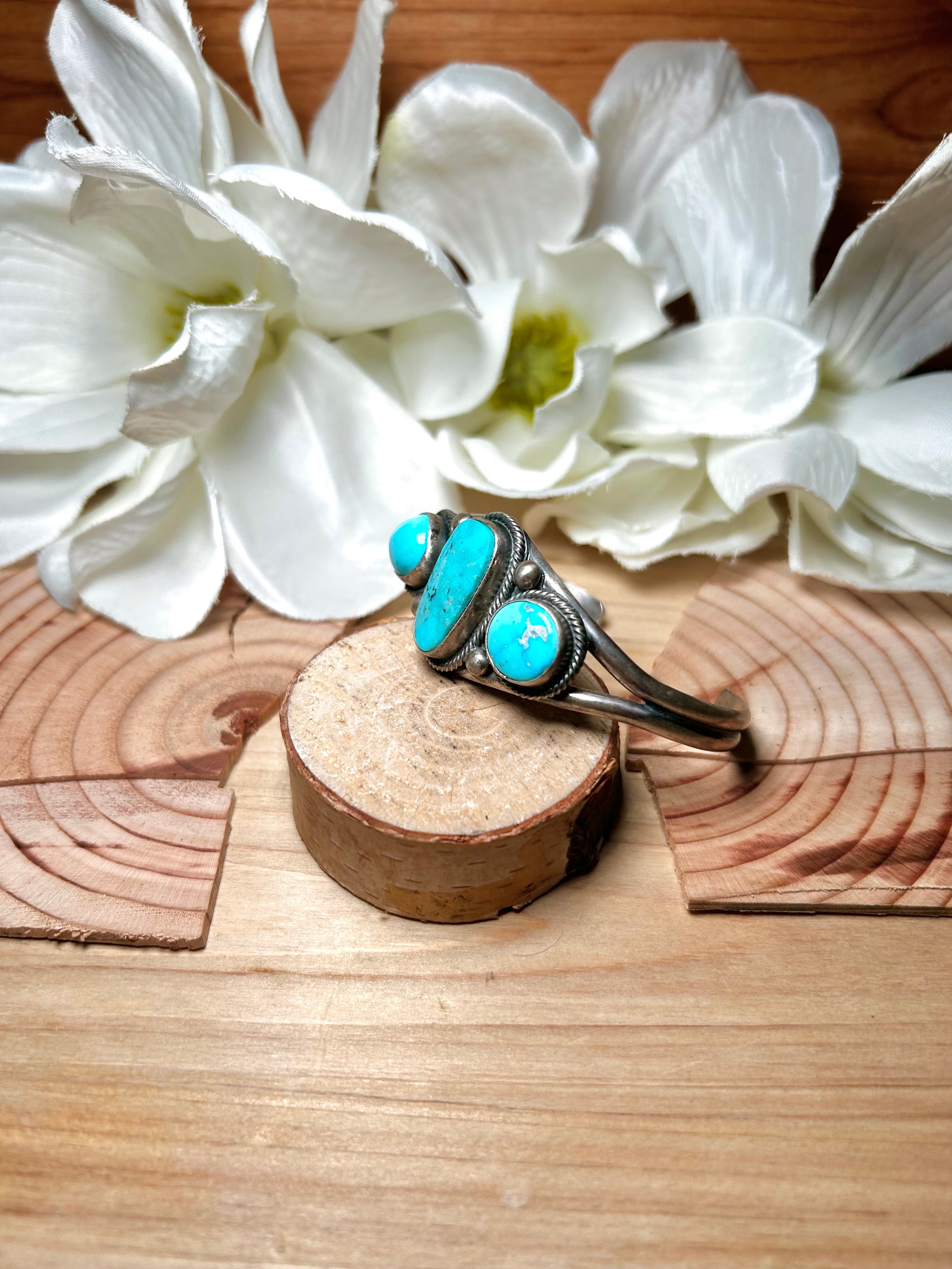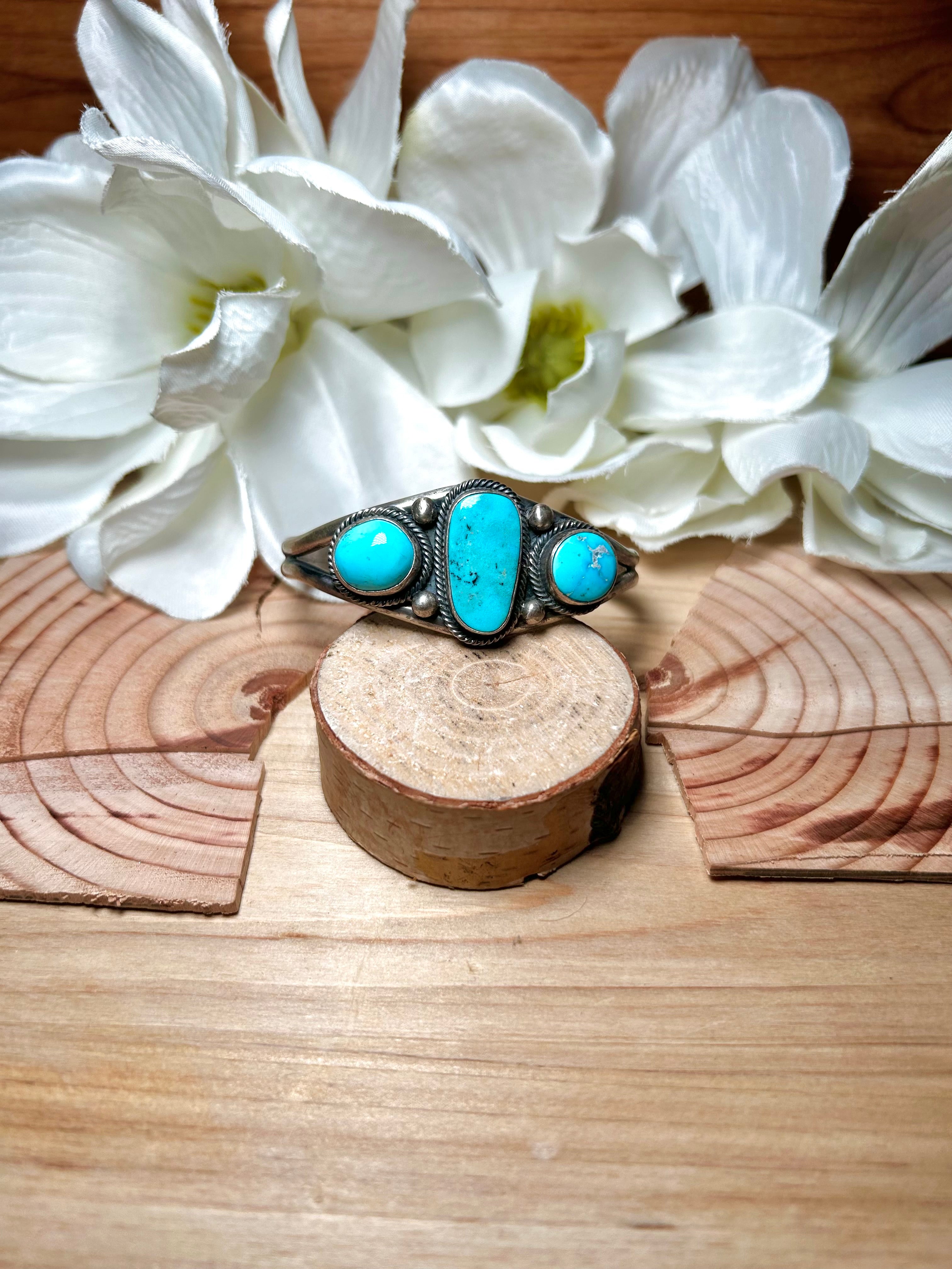 Navajo Made Blue Ridge Turquoise & Sterling Silver Cuff Bracelet