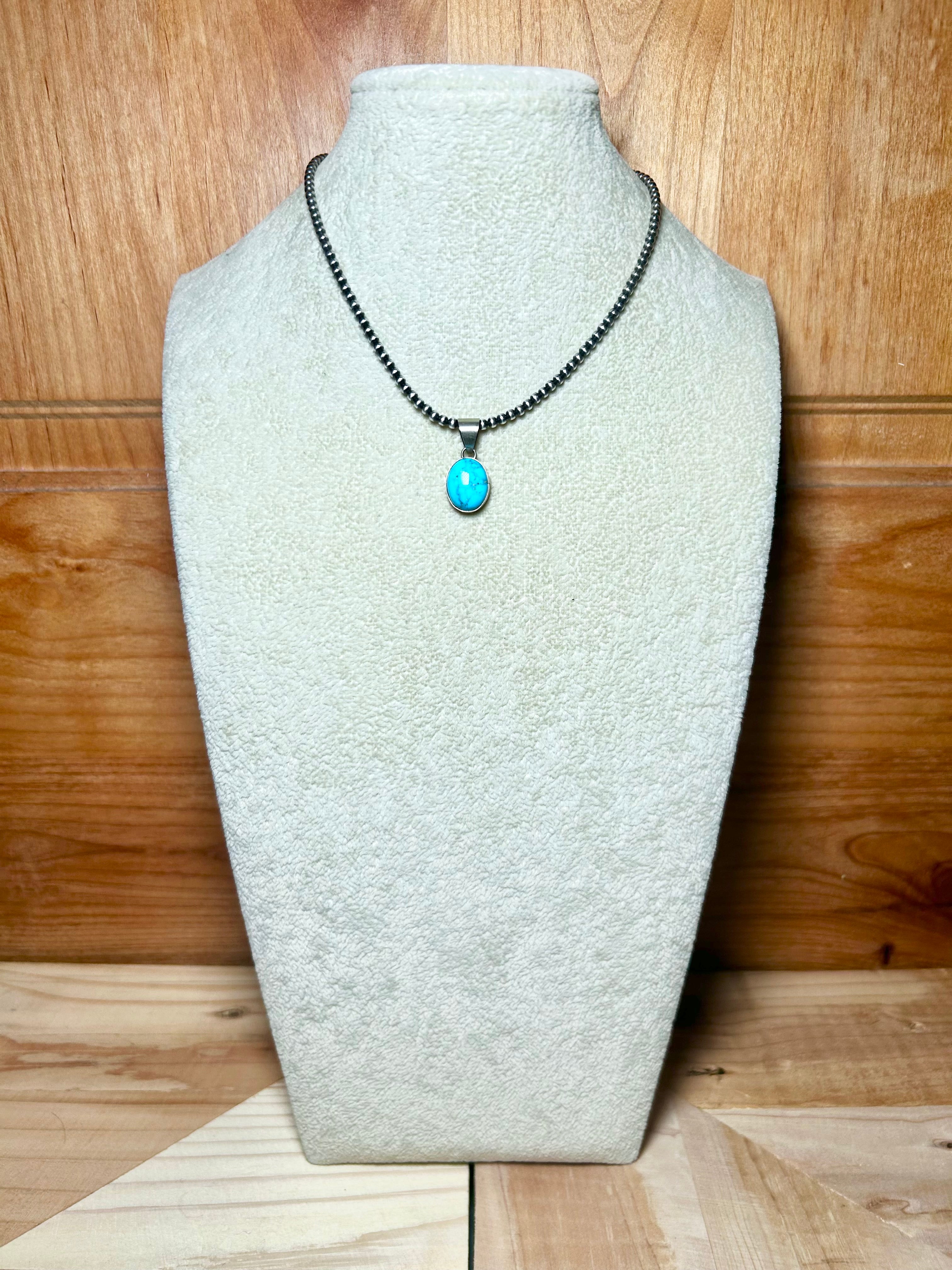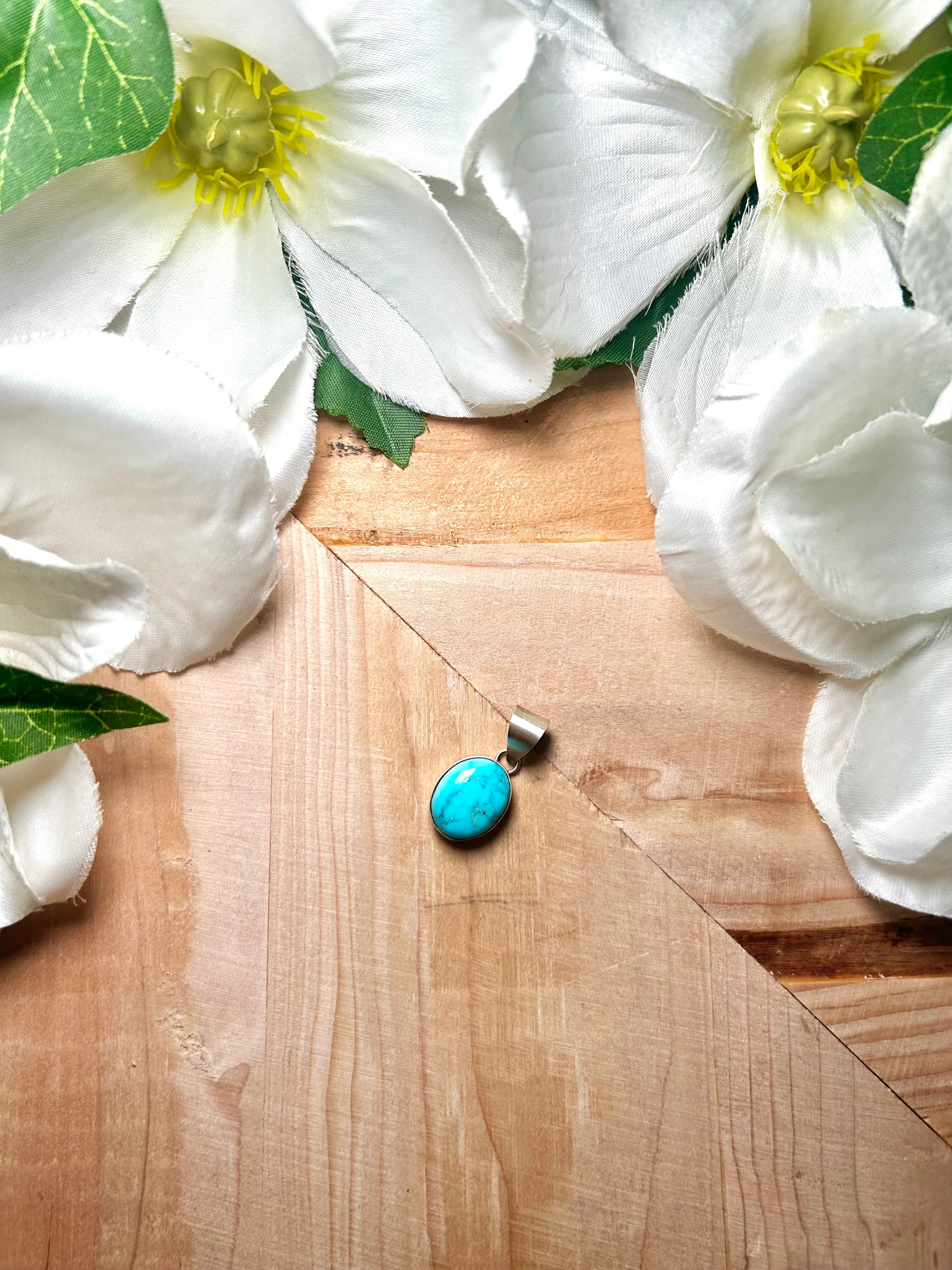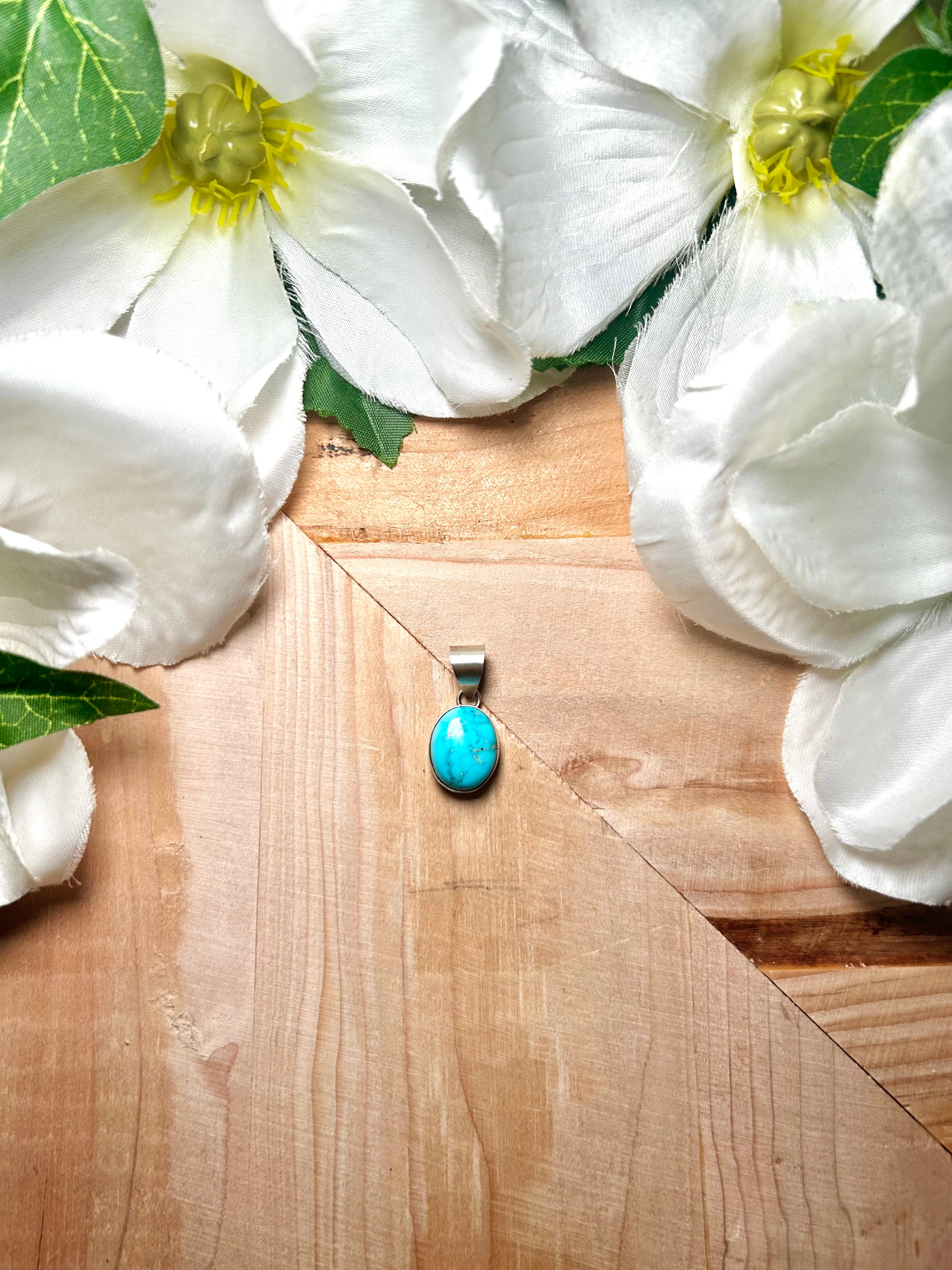 Navajo Made Blue Ridge Turquoise & Sterling Silver Pendant