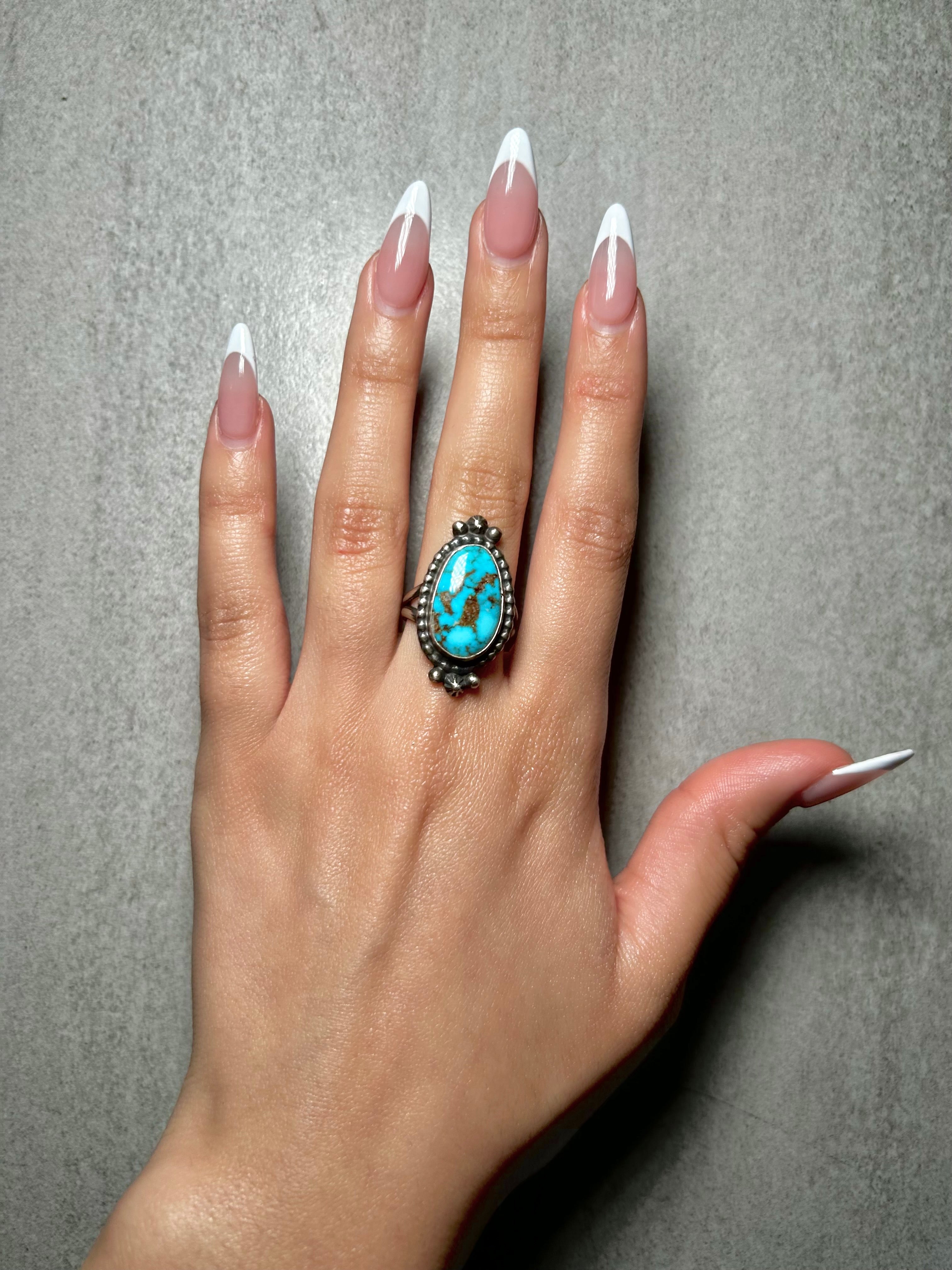 Navajo Made Highgrade Kingman Turquoise & Sterling Silver Ring Size 7.75