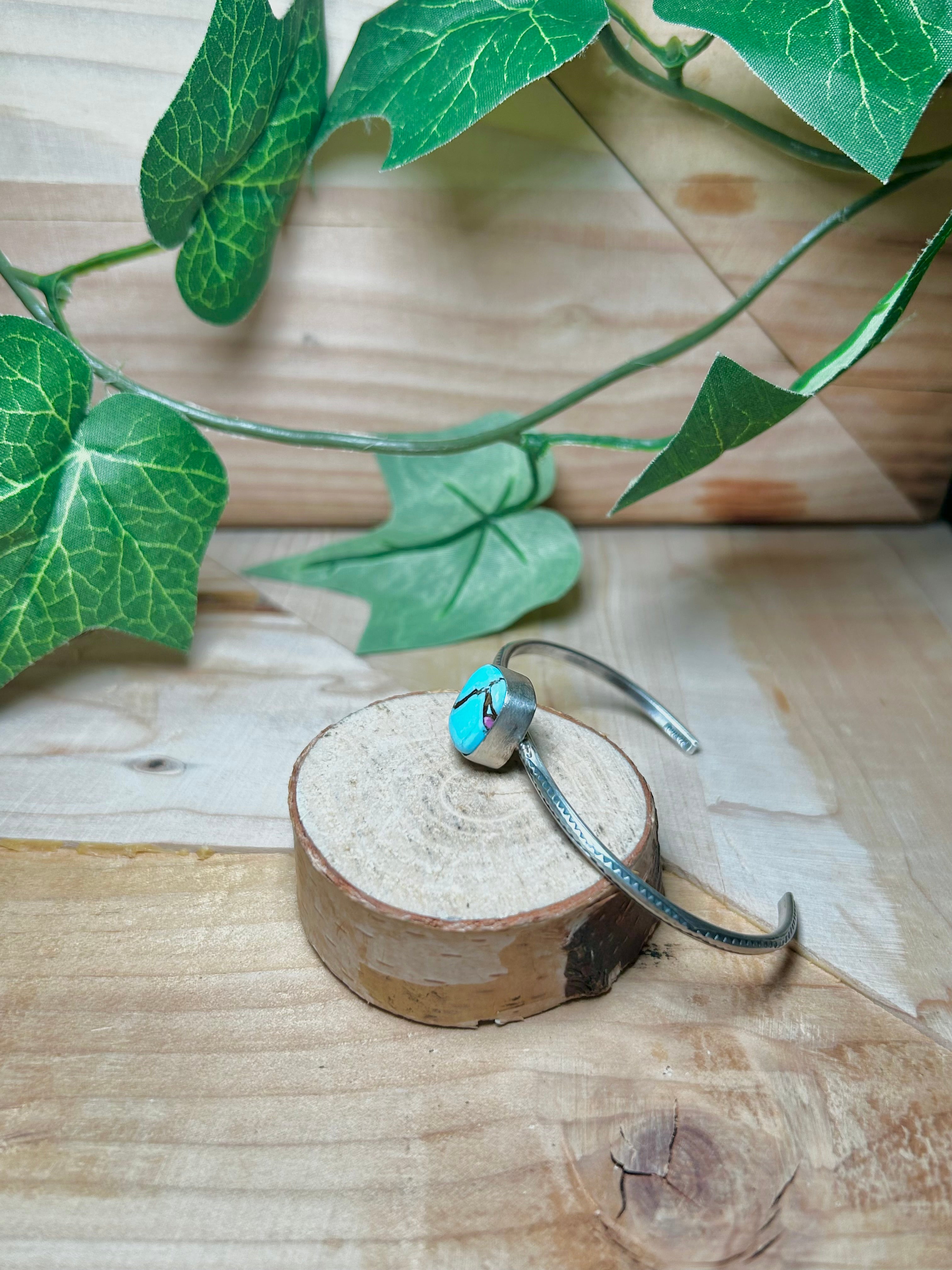 Navajo Made Cotton Candy Turquoise & Sterling Silver Cuff Bracelet