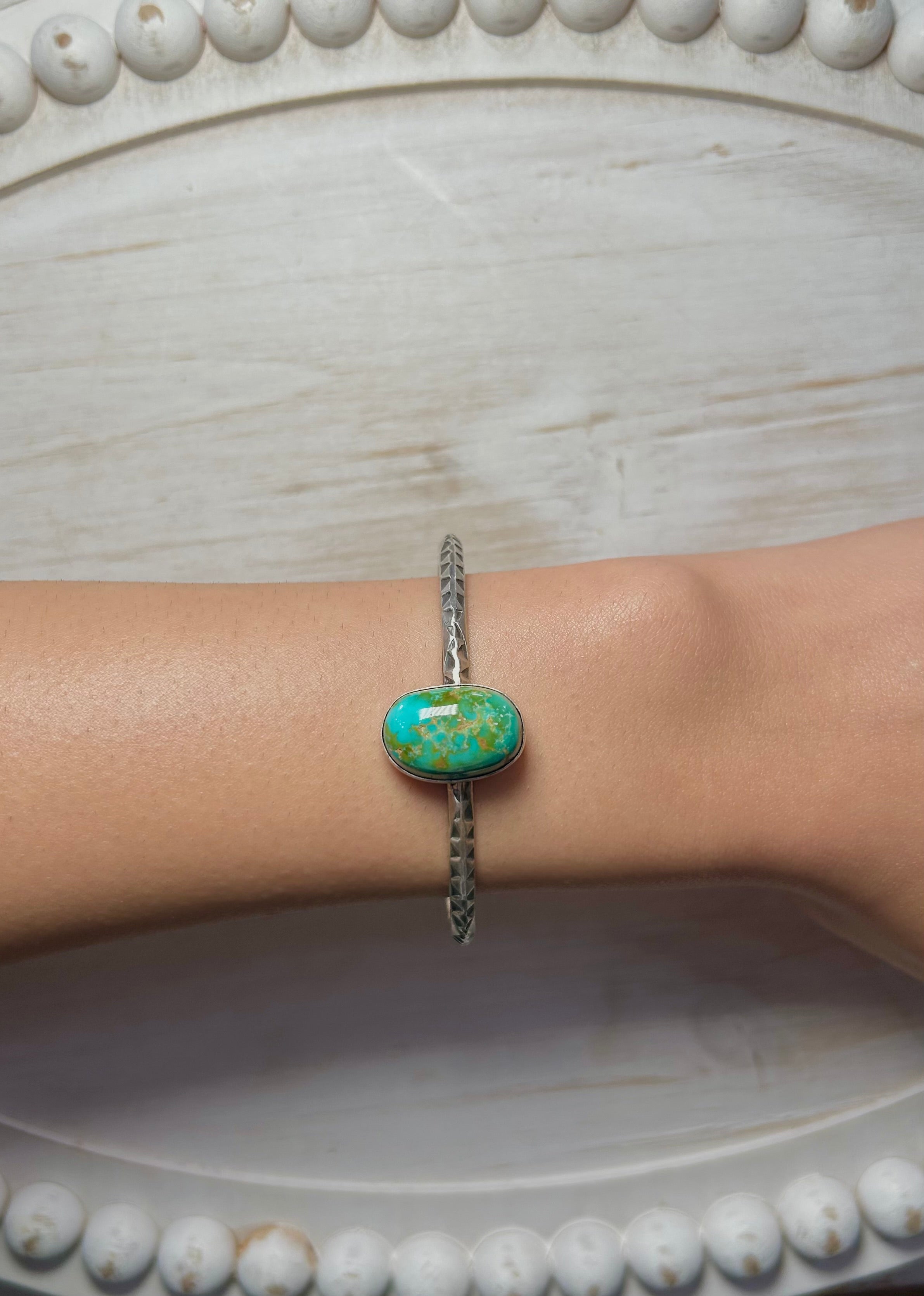 Navajo Made Sonoran Mountain Turquoise & Sterling Silver Cuff Bracelet