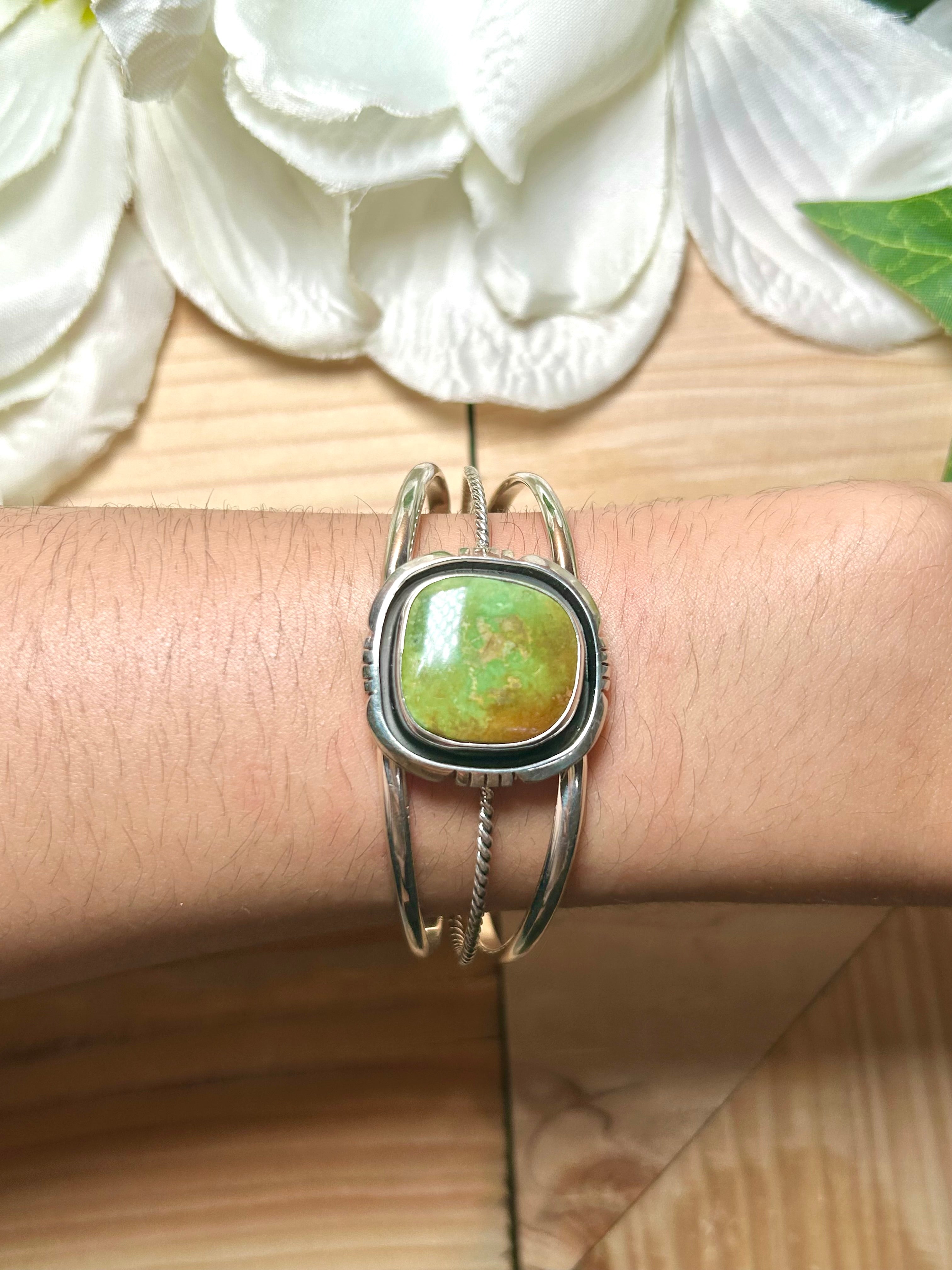 Navajo Made Kingman Turquoise & Sterling Silver Cuff Bracelet