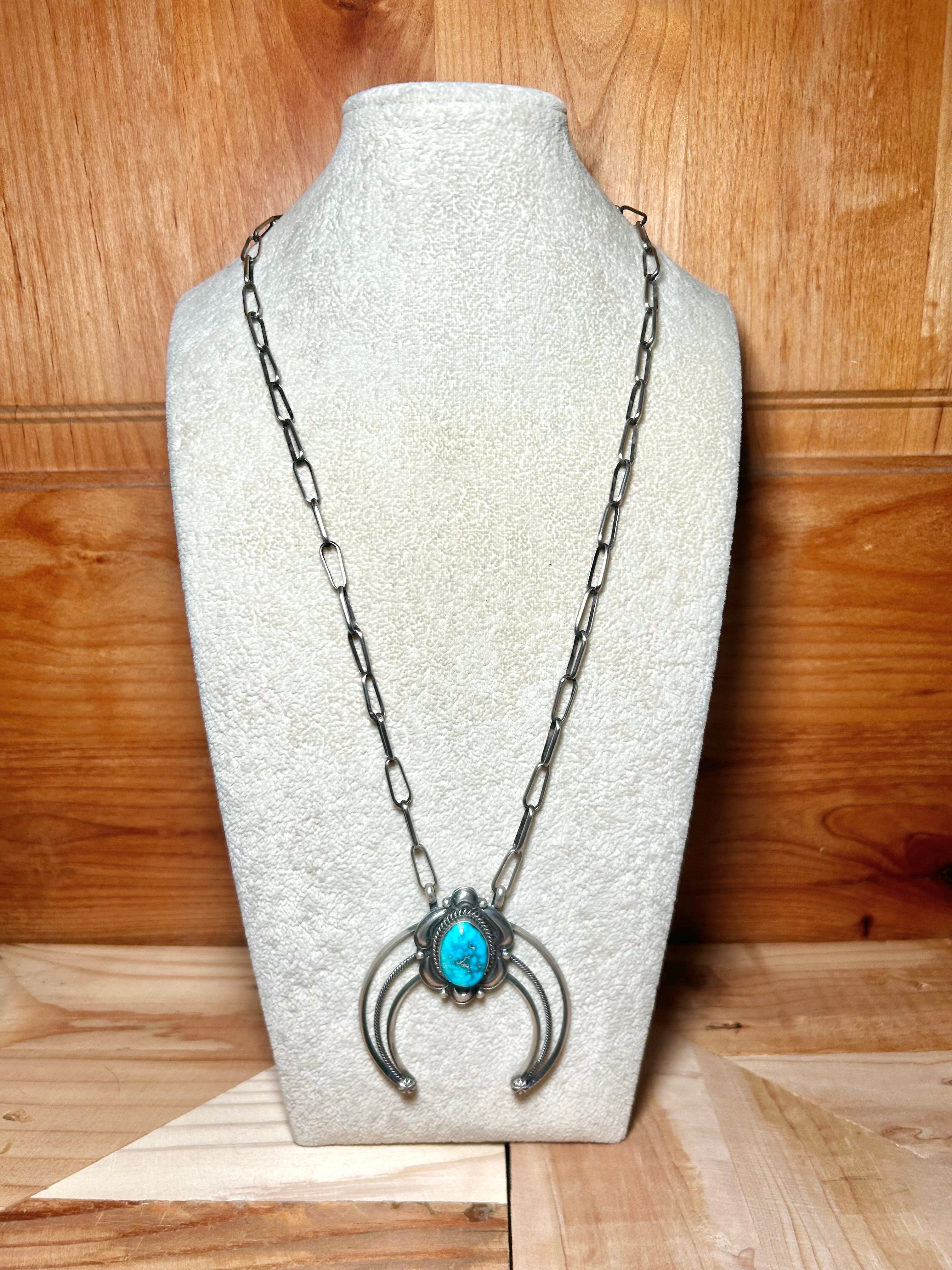 Navajo Made Natural Ithaka Peak Turquoise & Sterling Silver Necklace