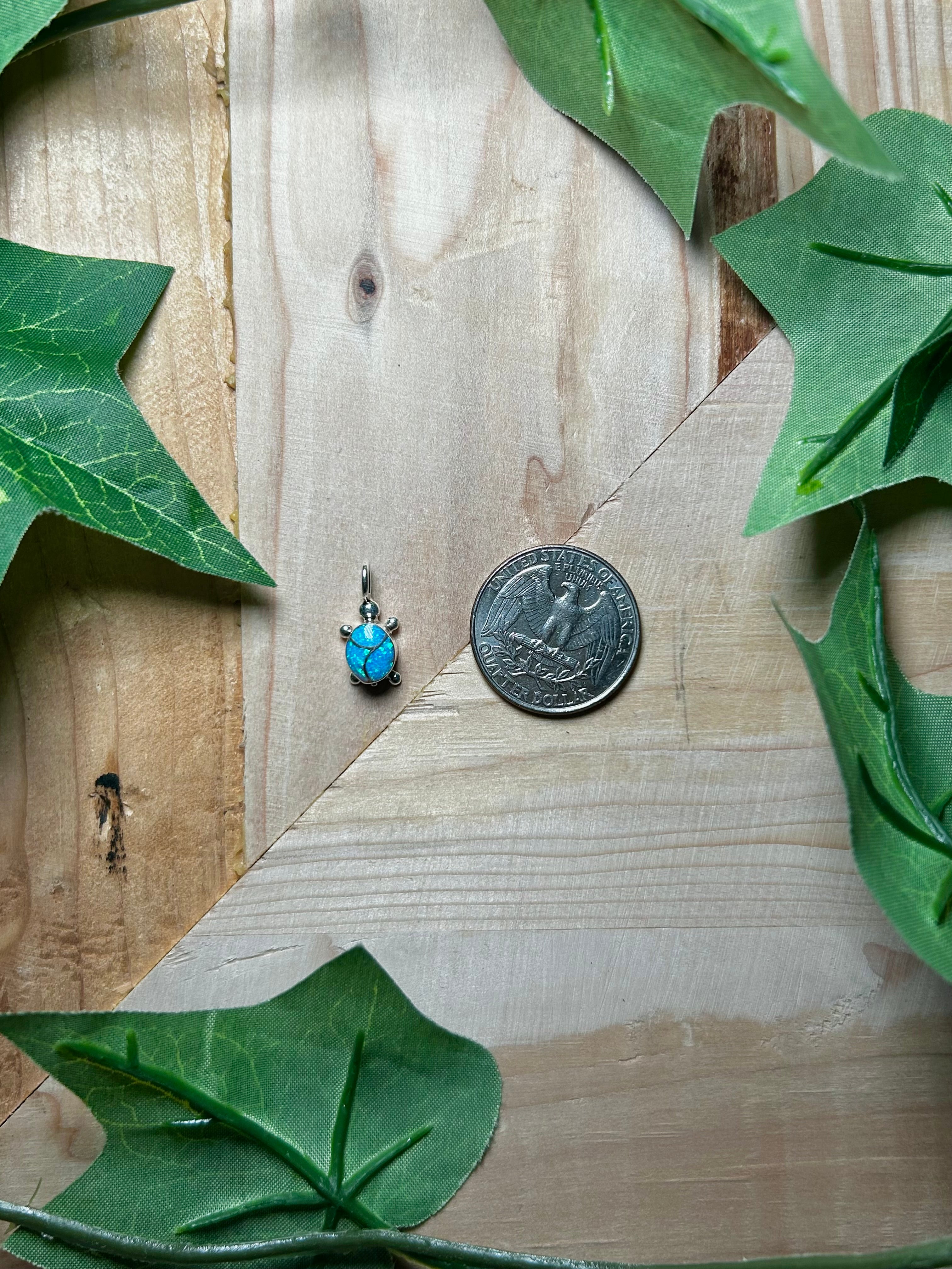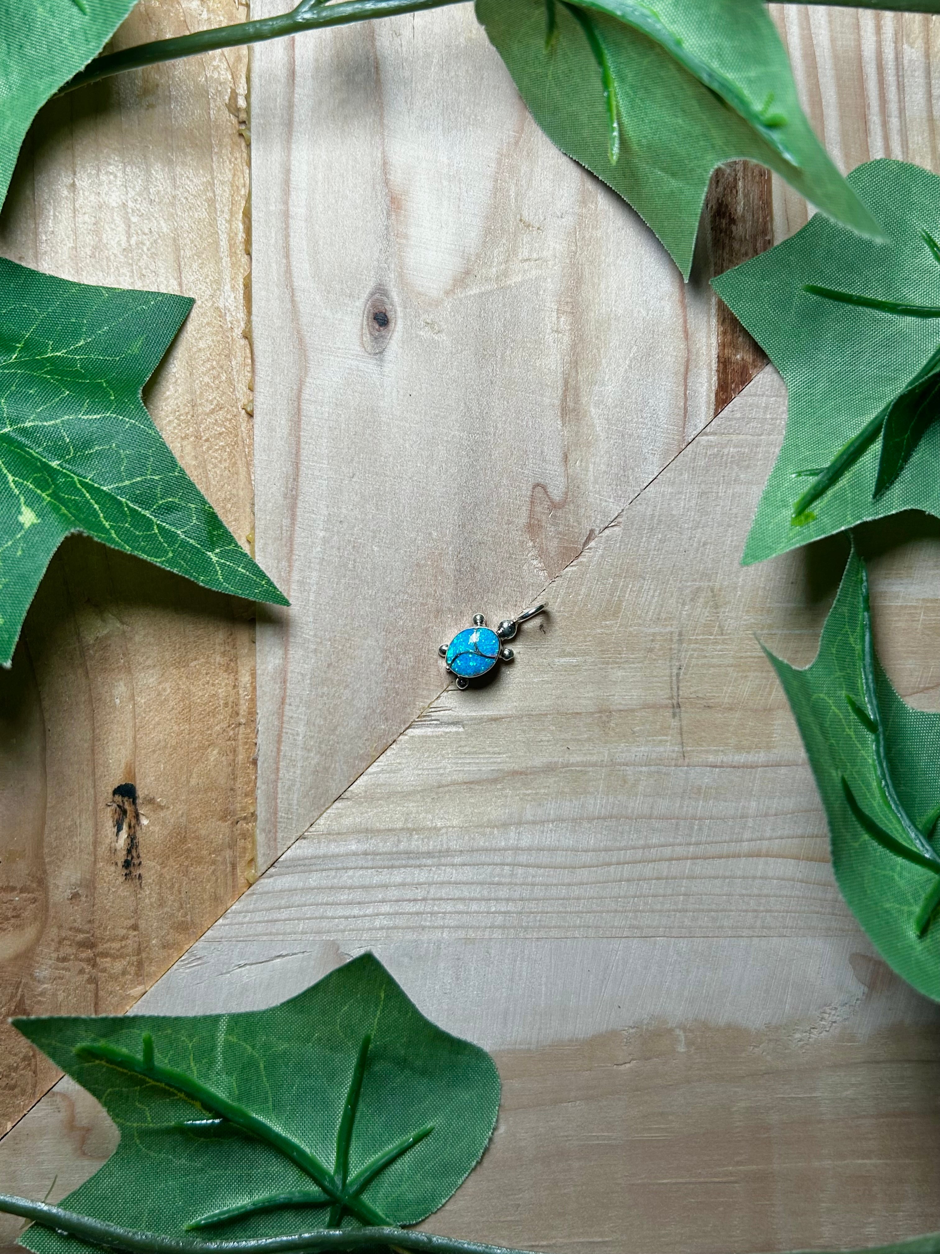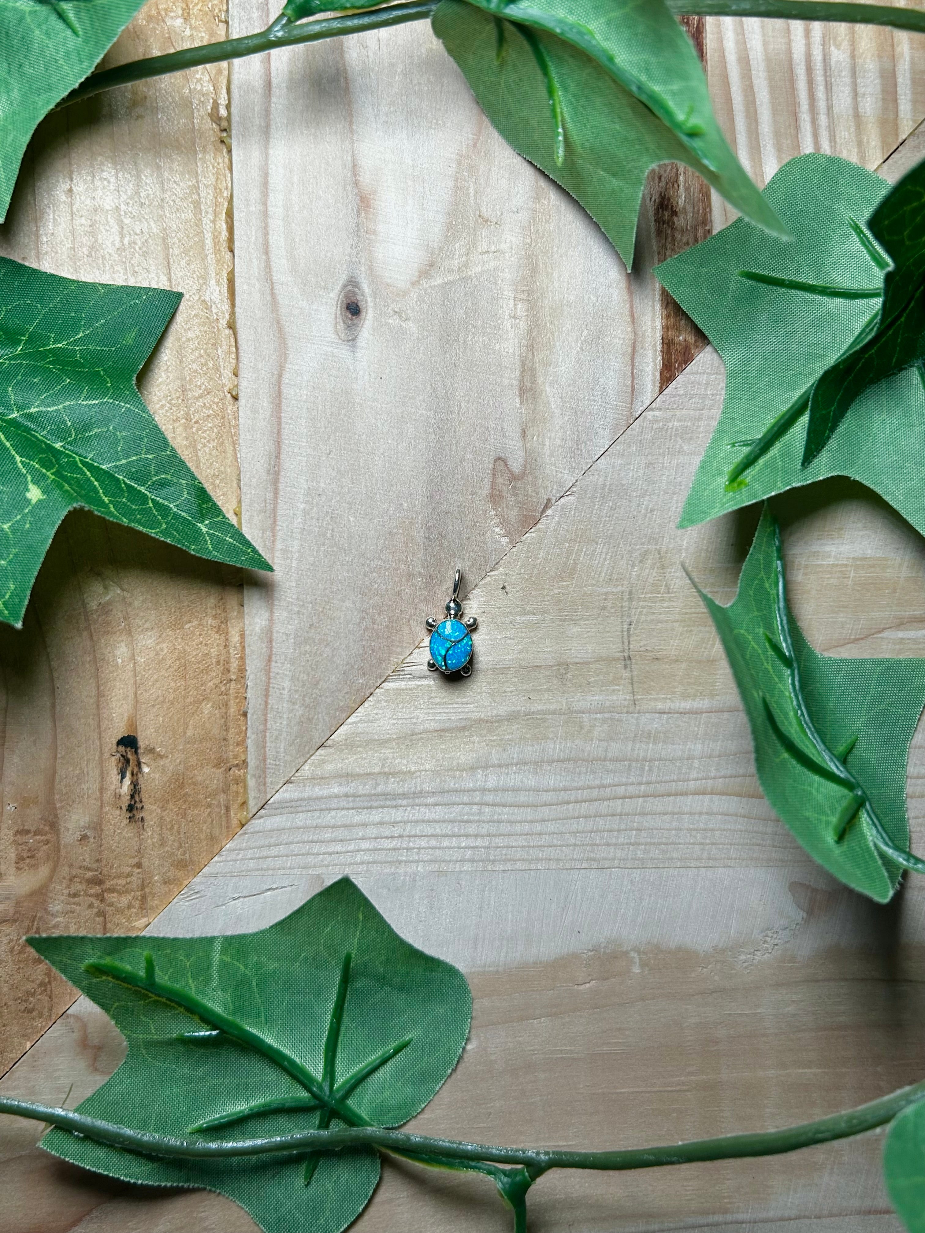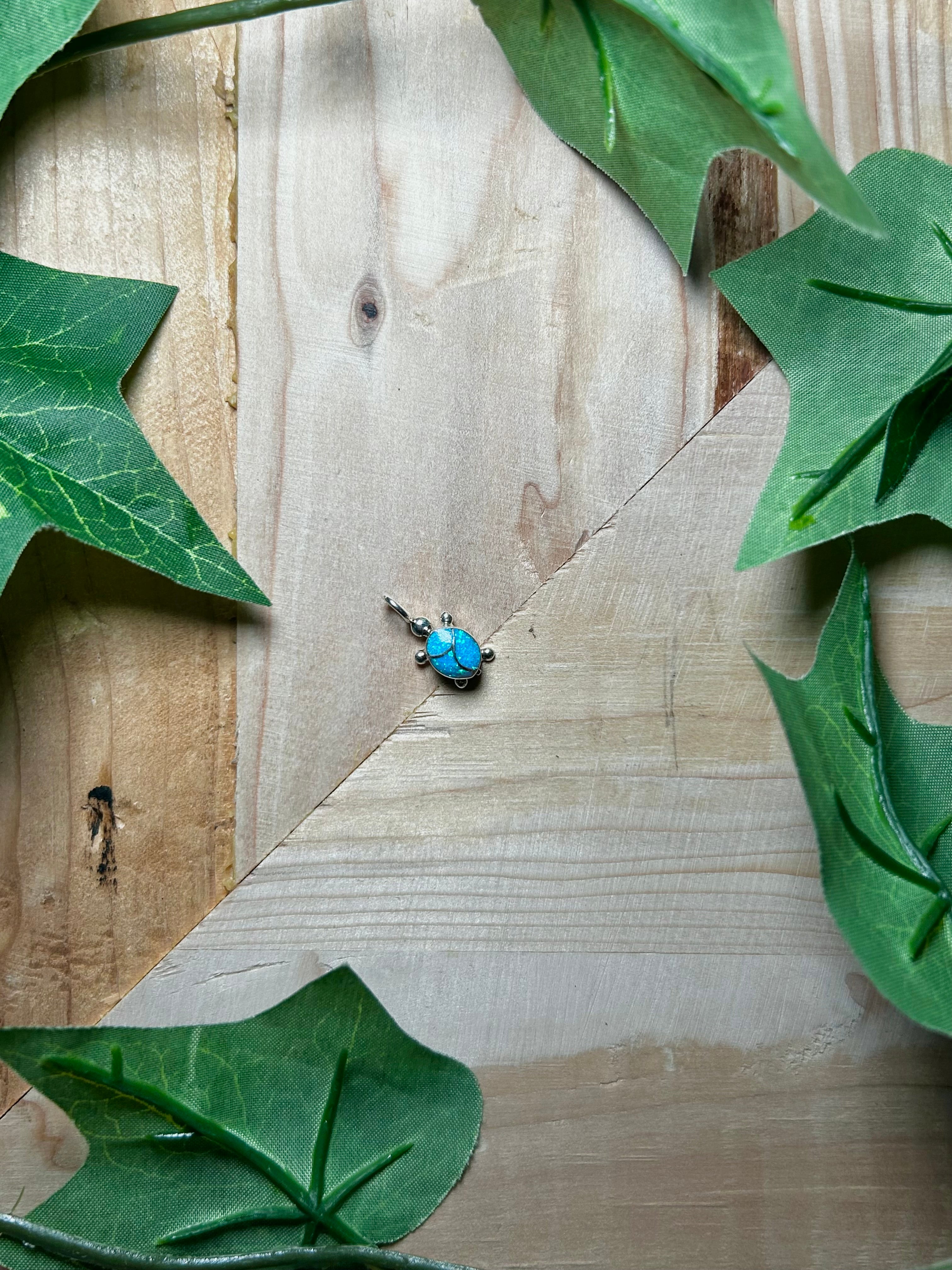 Zuni Opal Man-Made & Sterling Silver Pendant. It measures 5/8 of an inch long and 3/8 of an inch wide. Pendant Only!! Signed by the artist and stamped sterling silver.