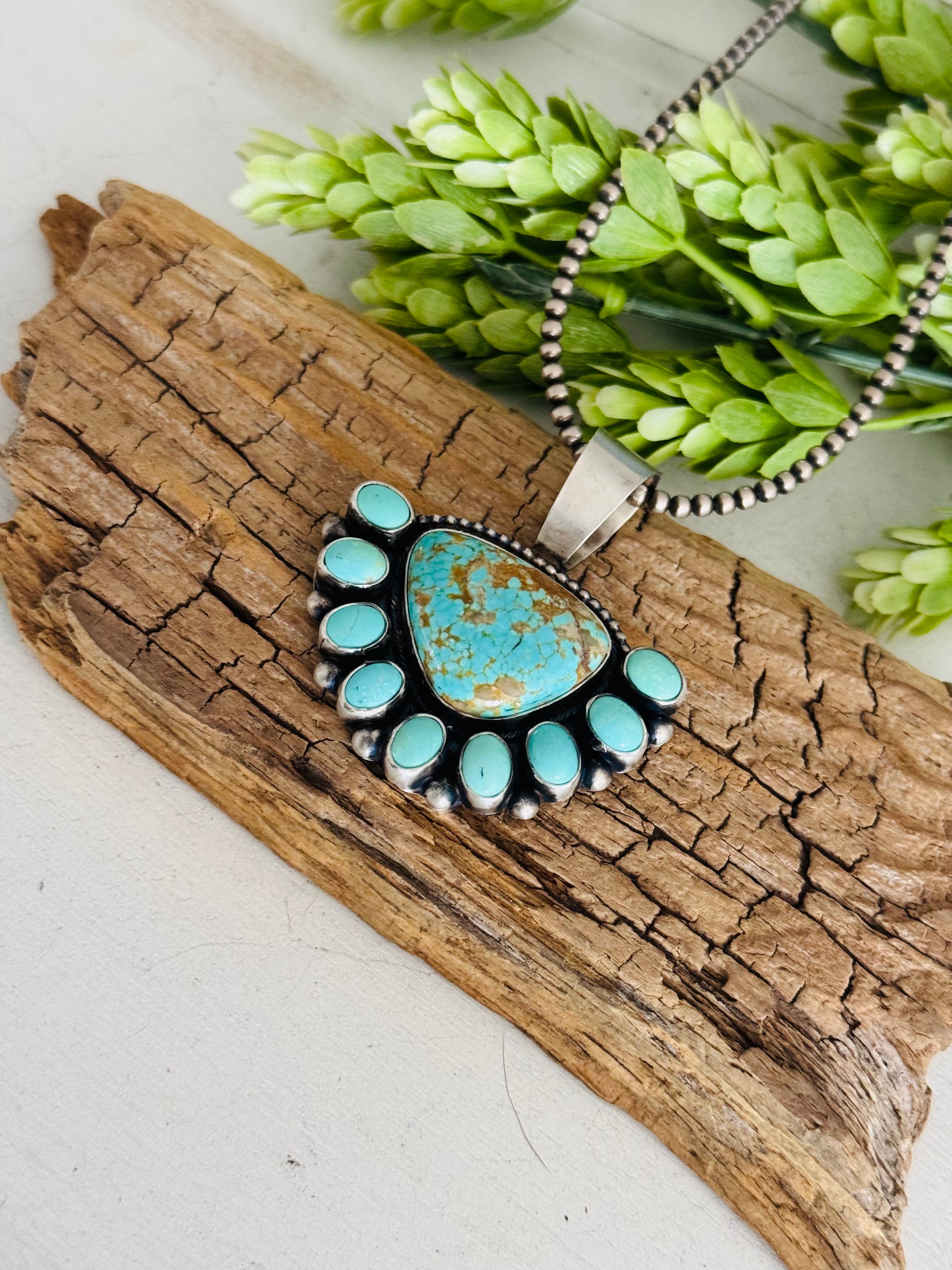 Ray Calladitto #8 Turquoise & Sterling Silver Cluster Pendant