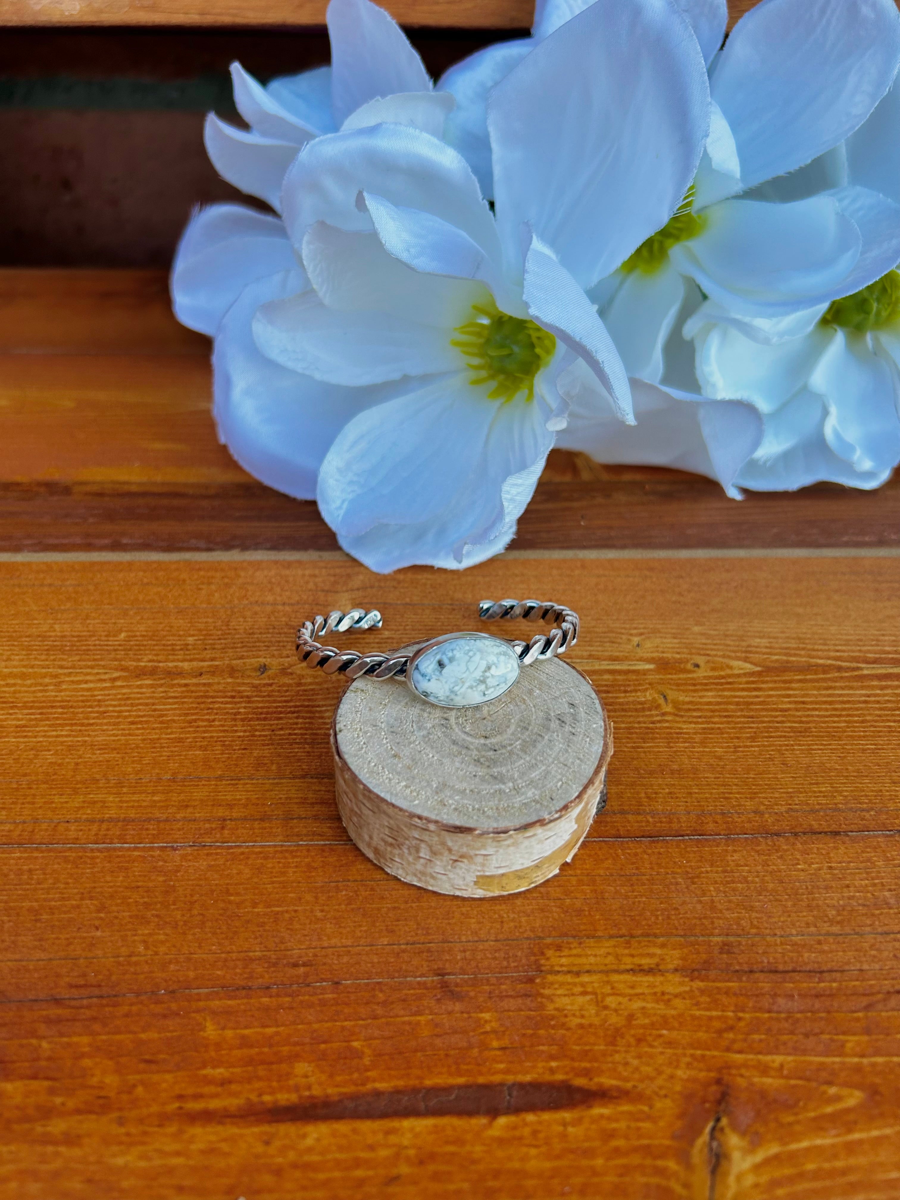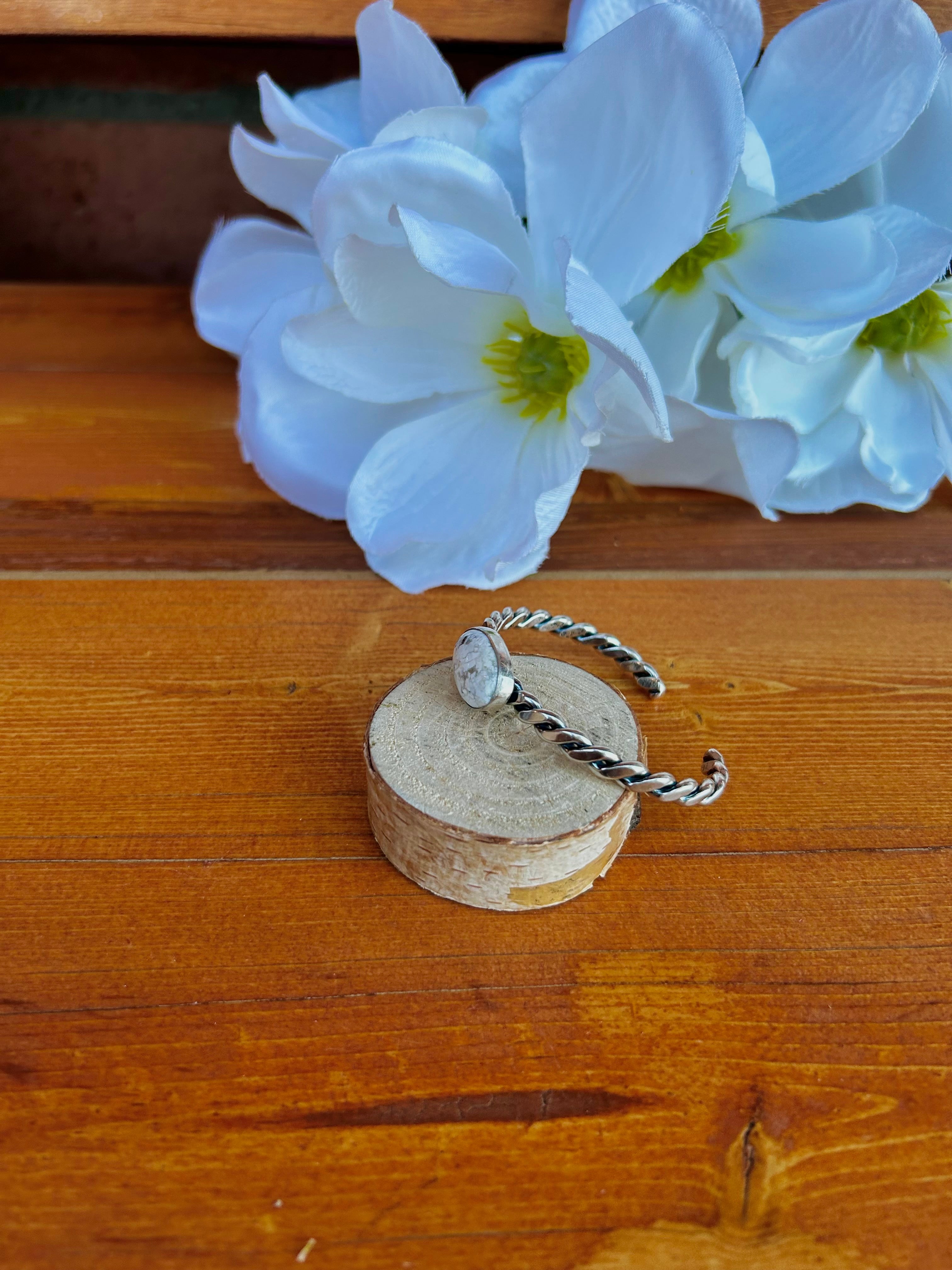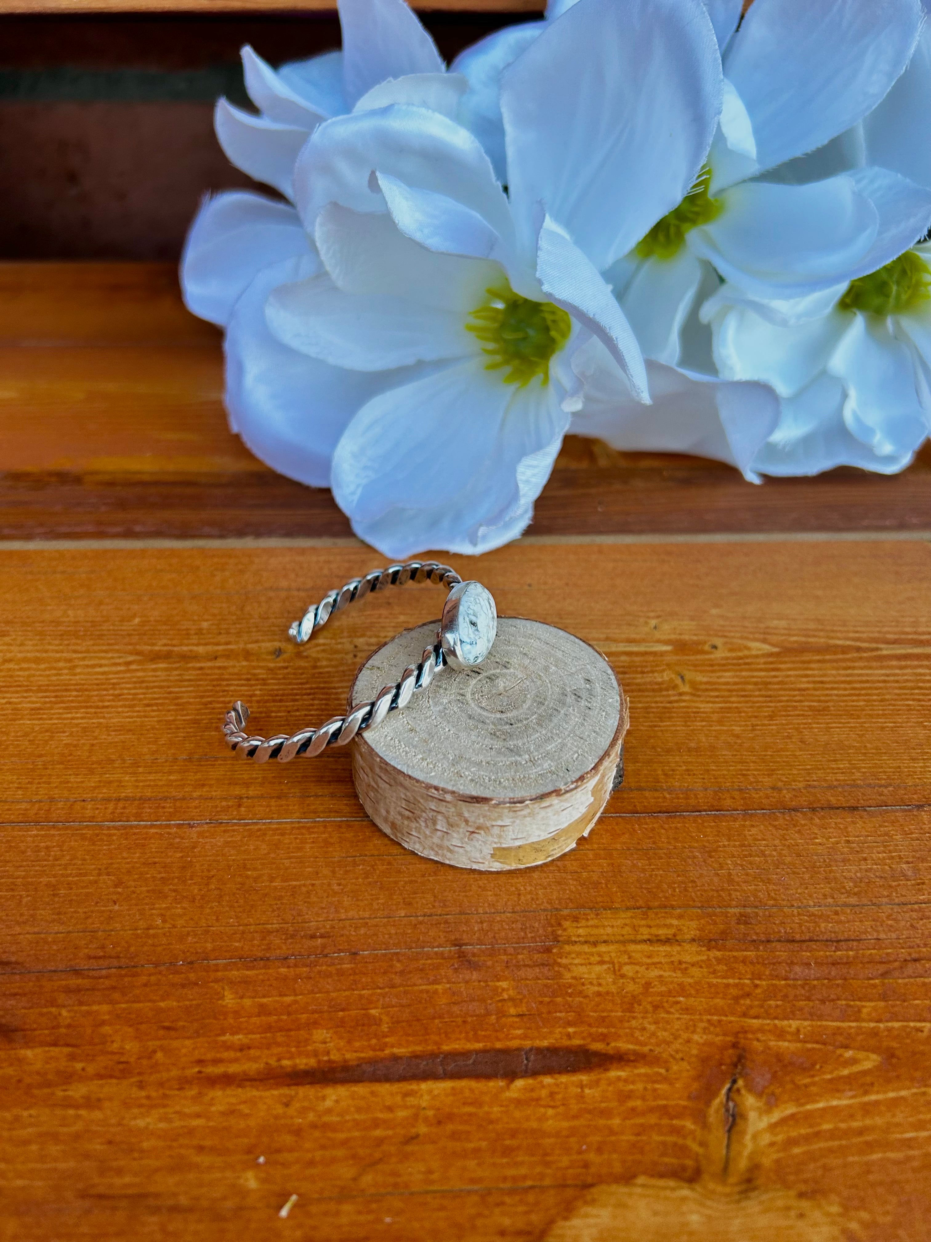 Navajo Made White Buffalo & Sterling Silver Cuff Bracelet