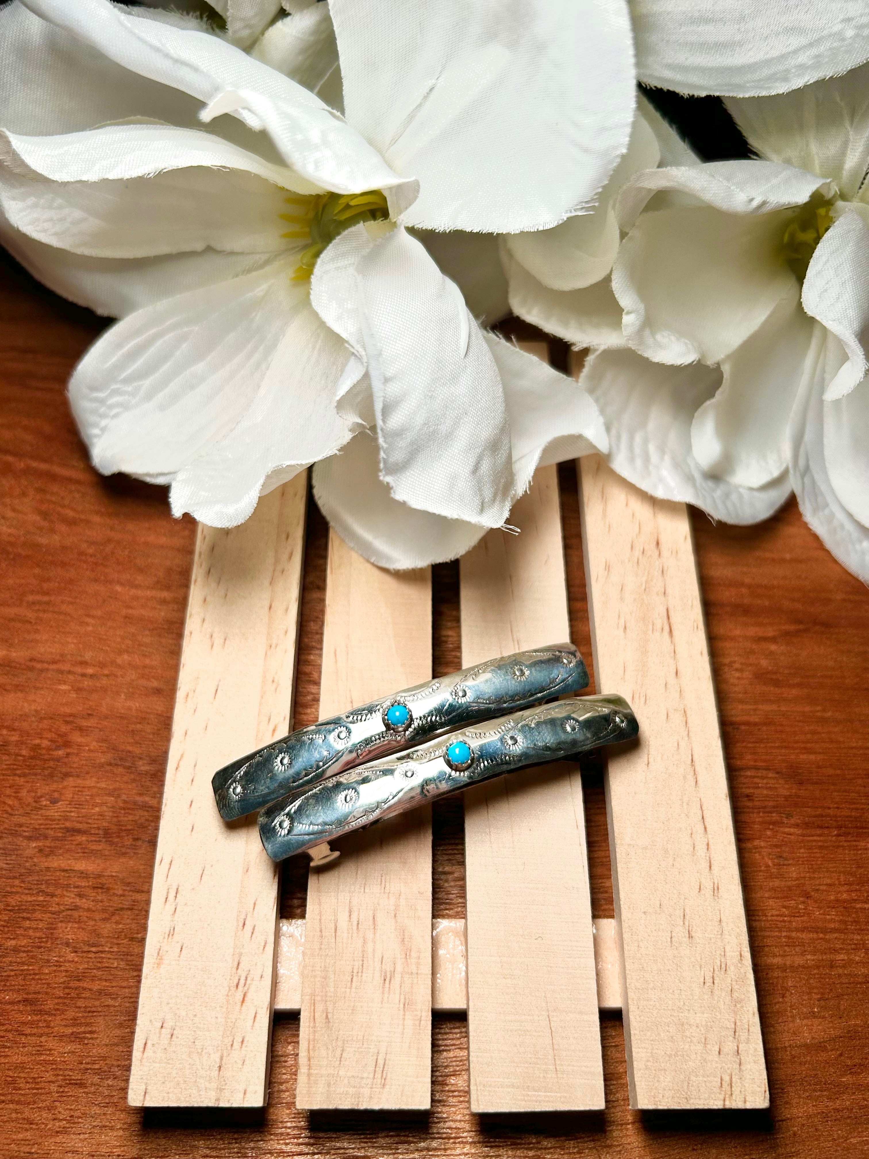 Navajo Made Mahler Bannette Pairs. It measure 2 3/4 inches long and 3/8 of an inch wide.