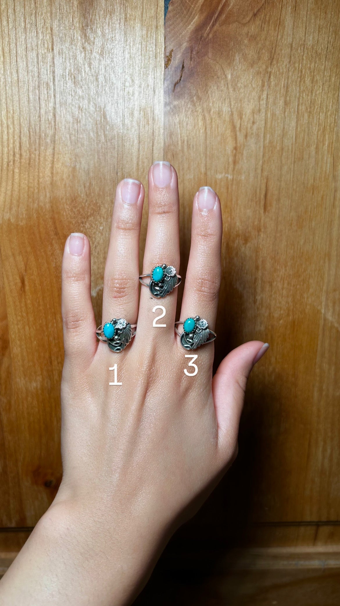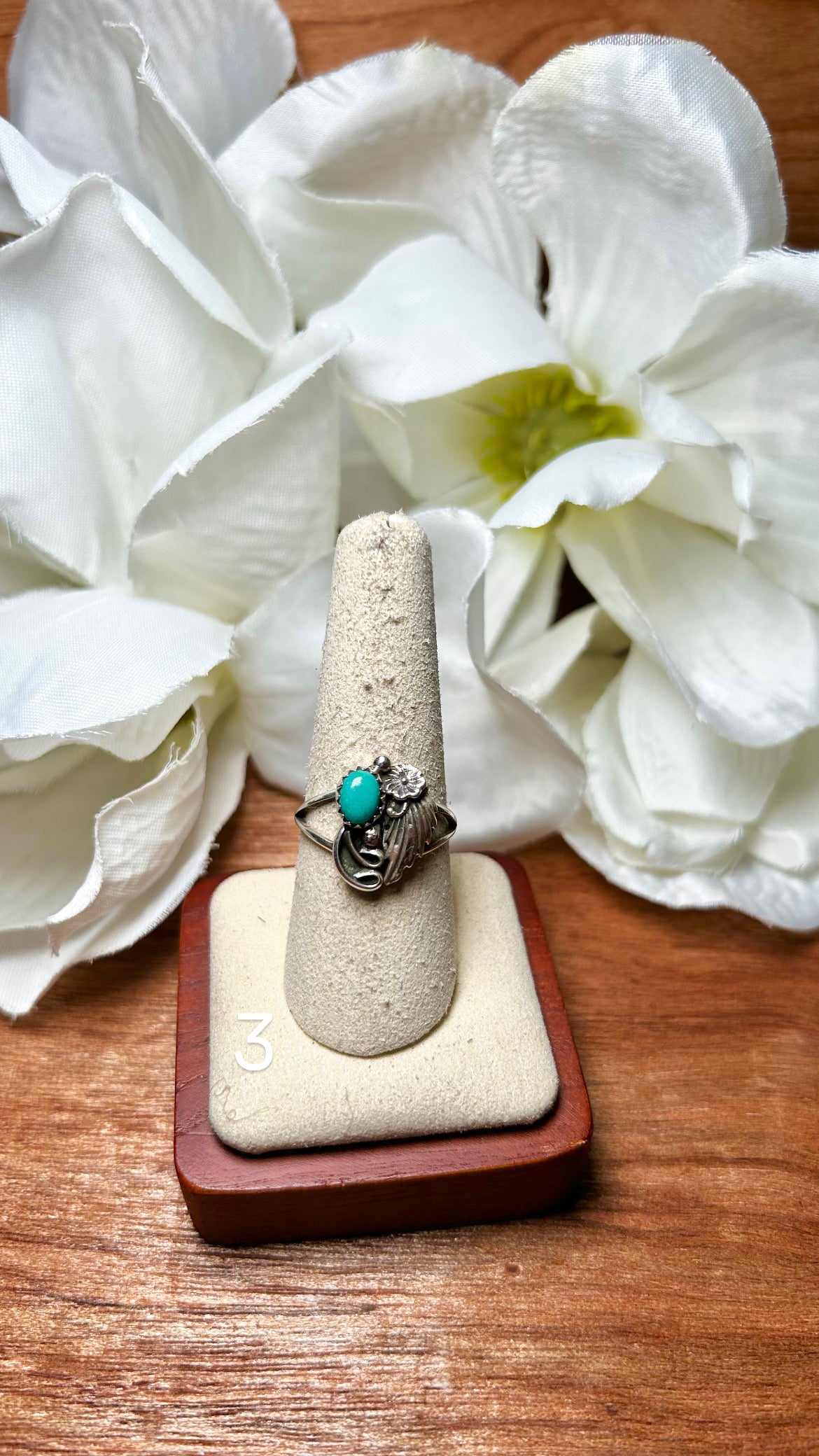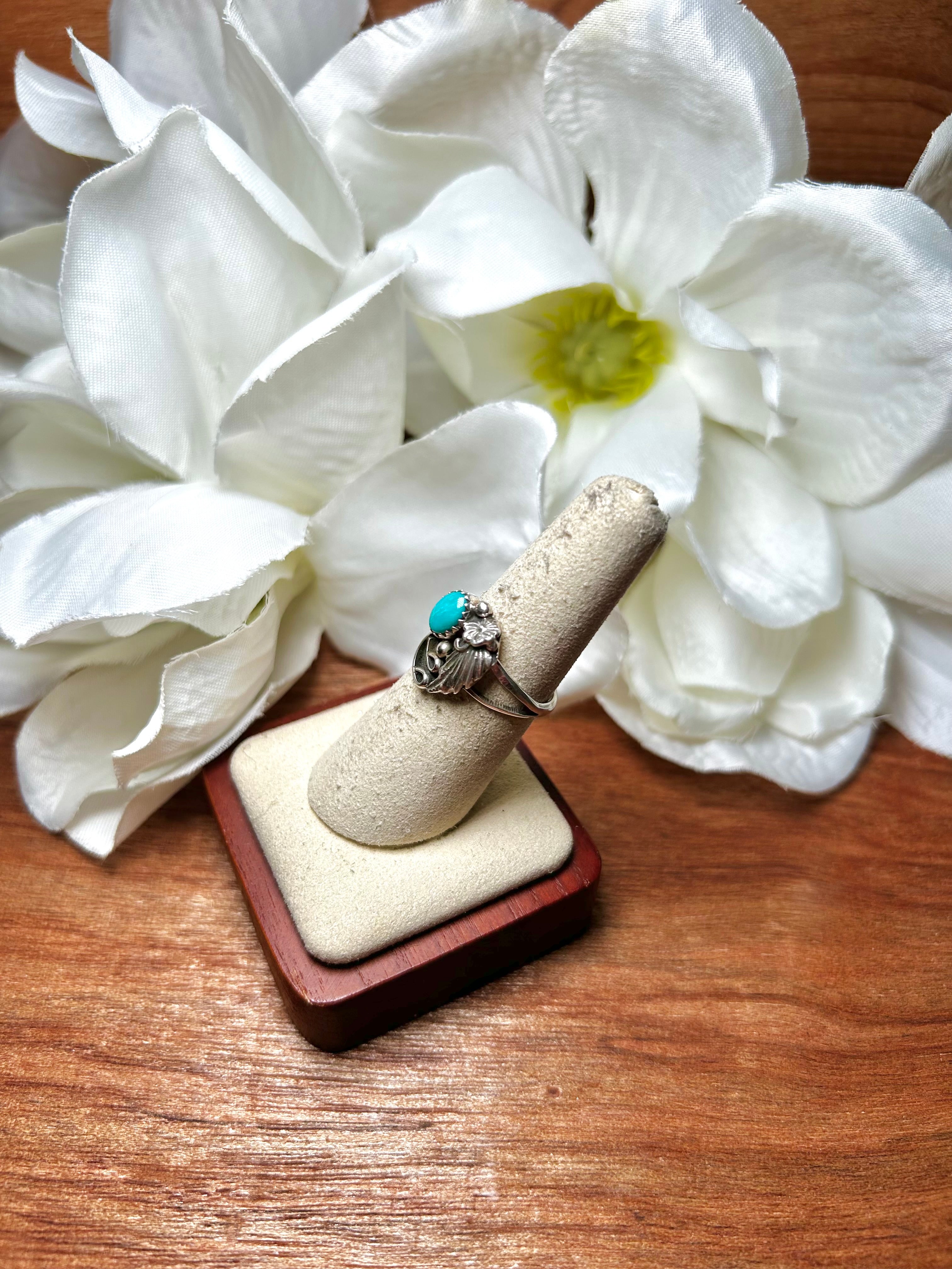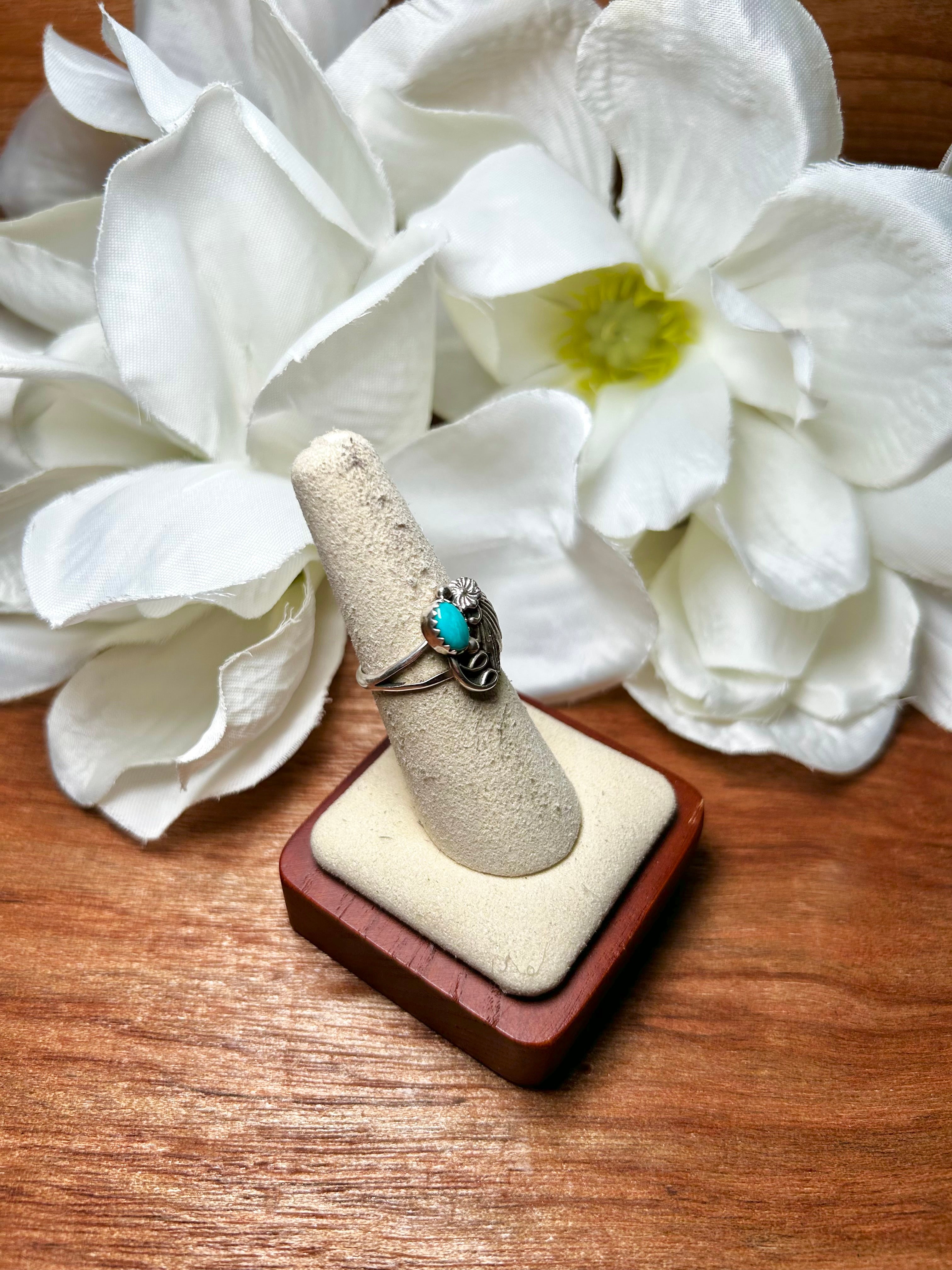 Navajo Made Kingman Turquoise & Sterling Silver Cluster Ring. It measures 5/8 of an inch long and it measures 1/2 of an inch wide. Signed by the artist and stamped sterling silver.