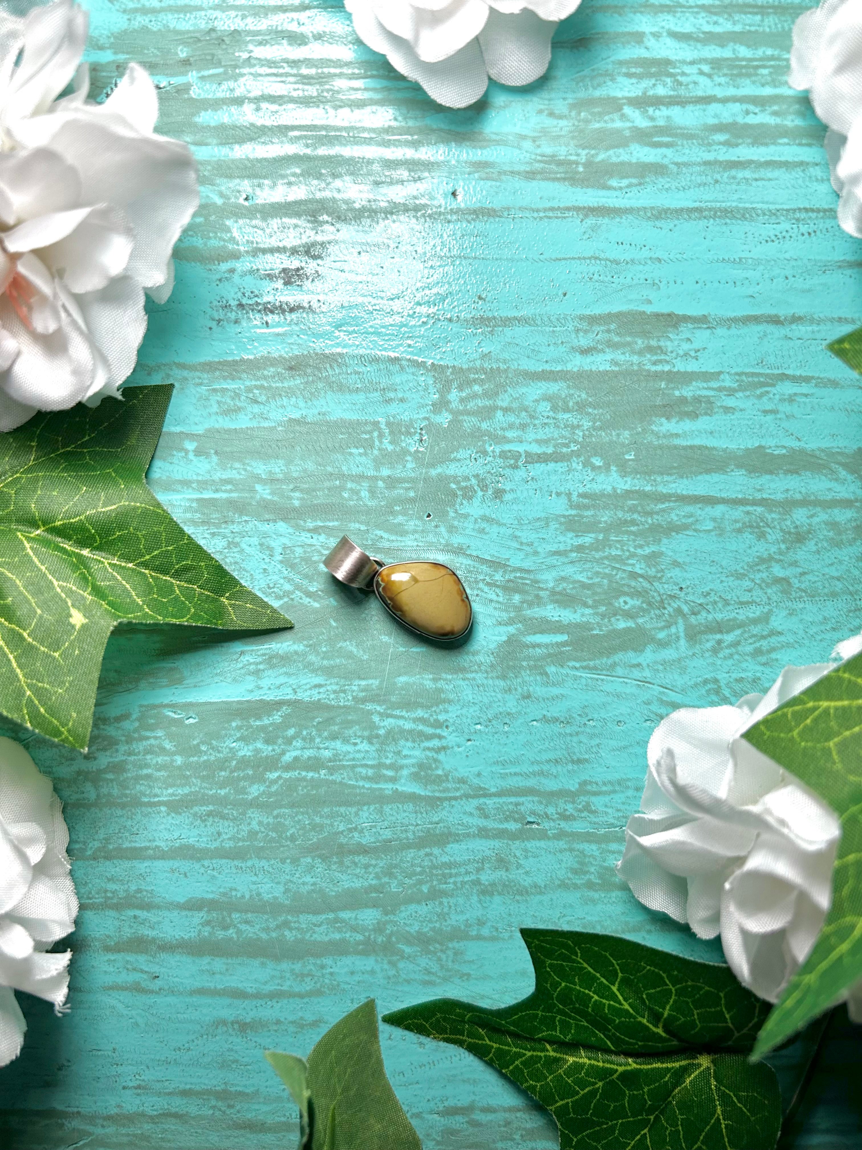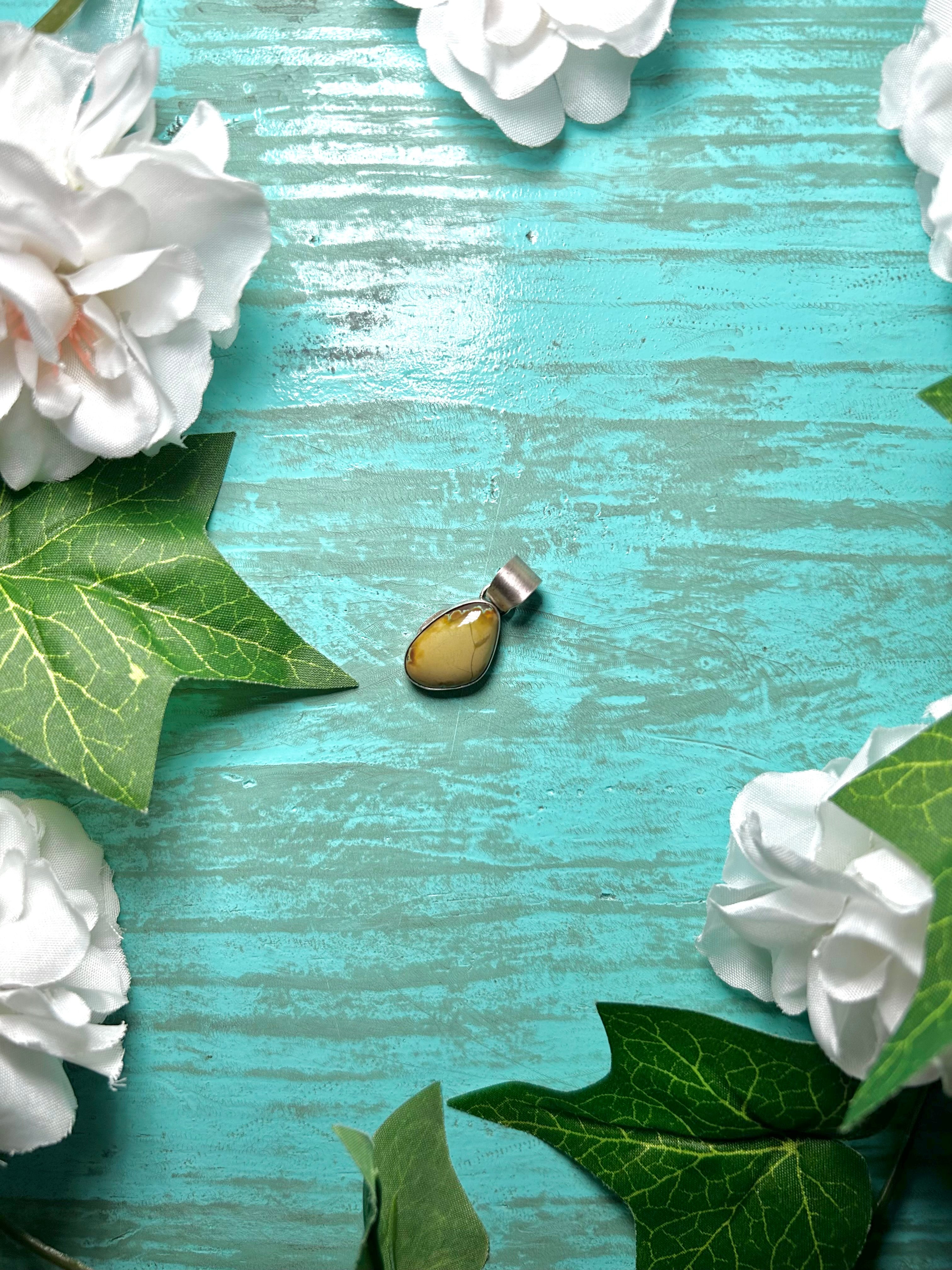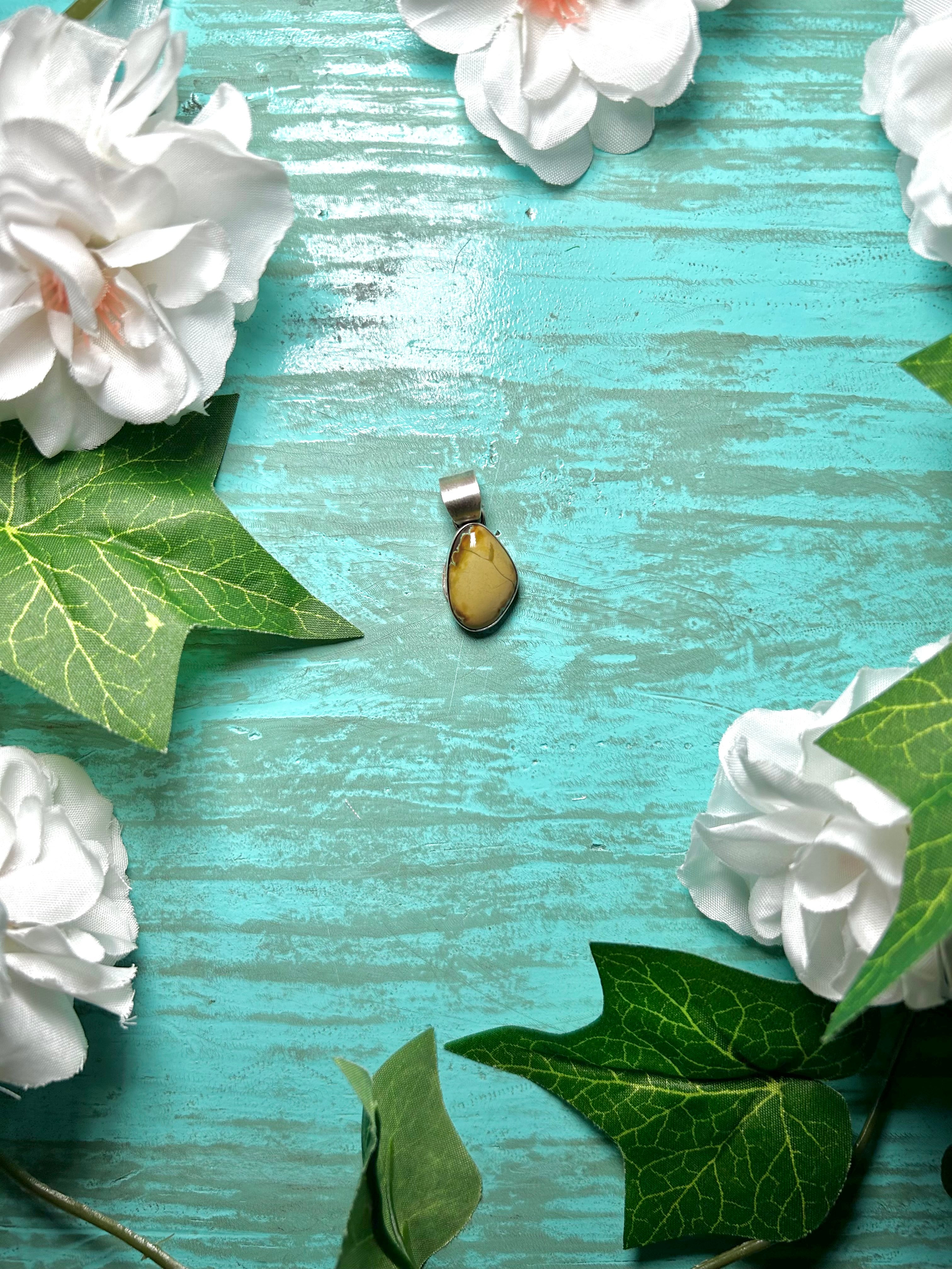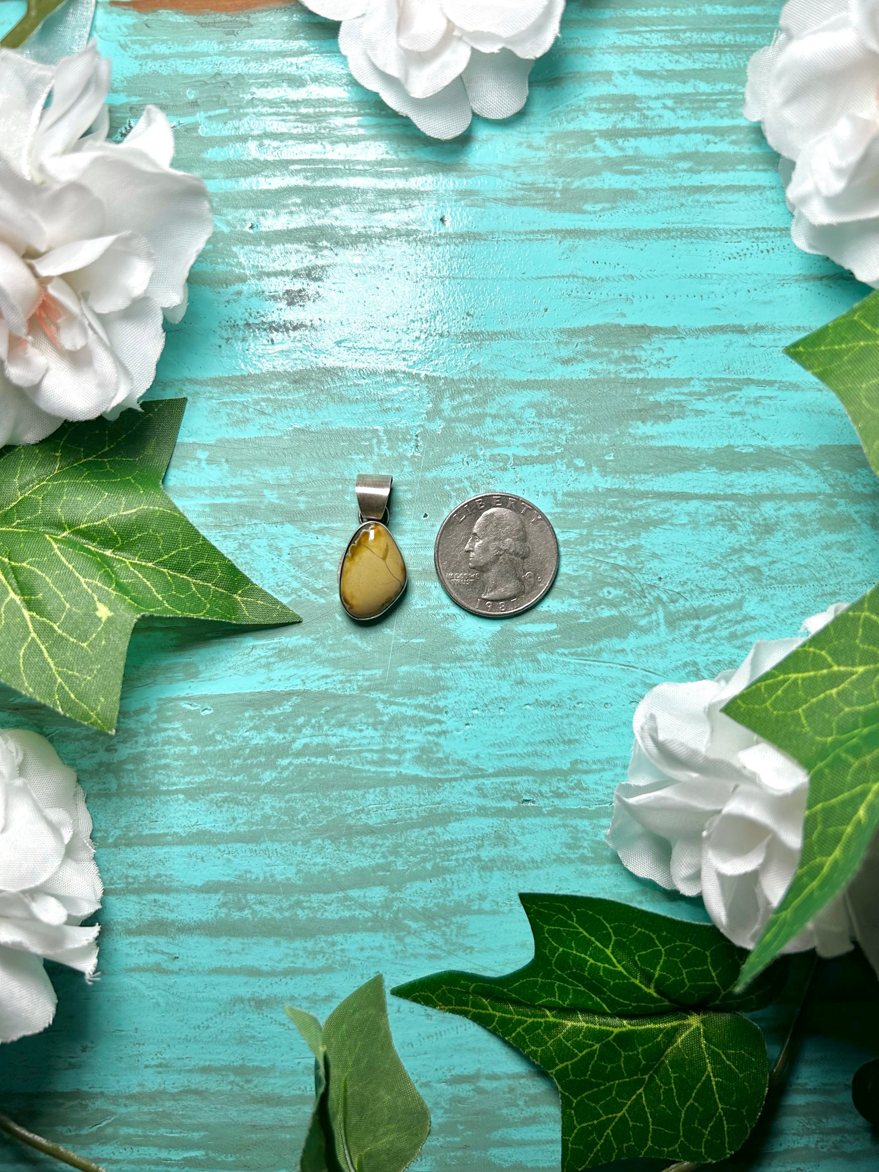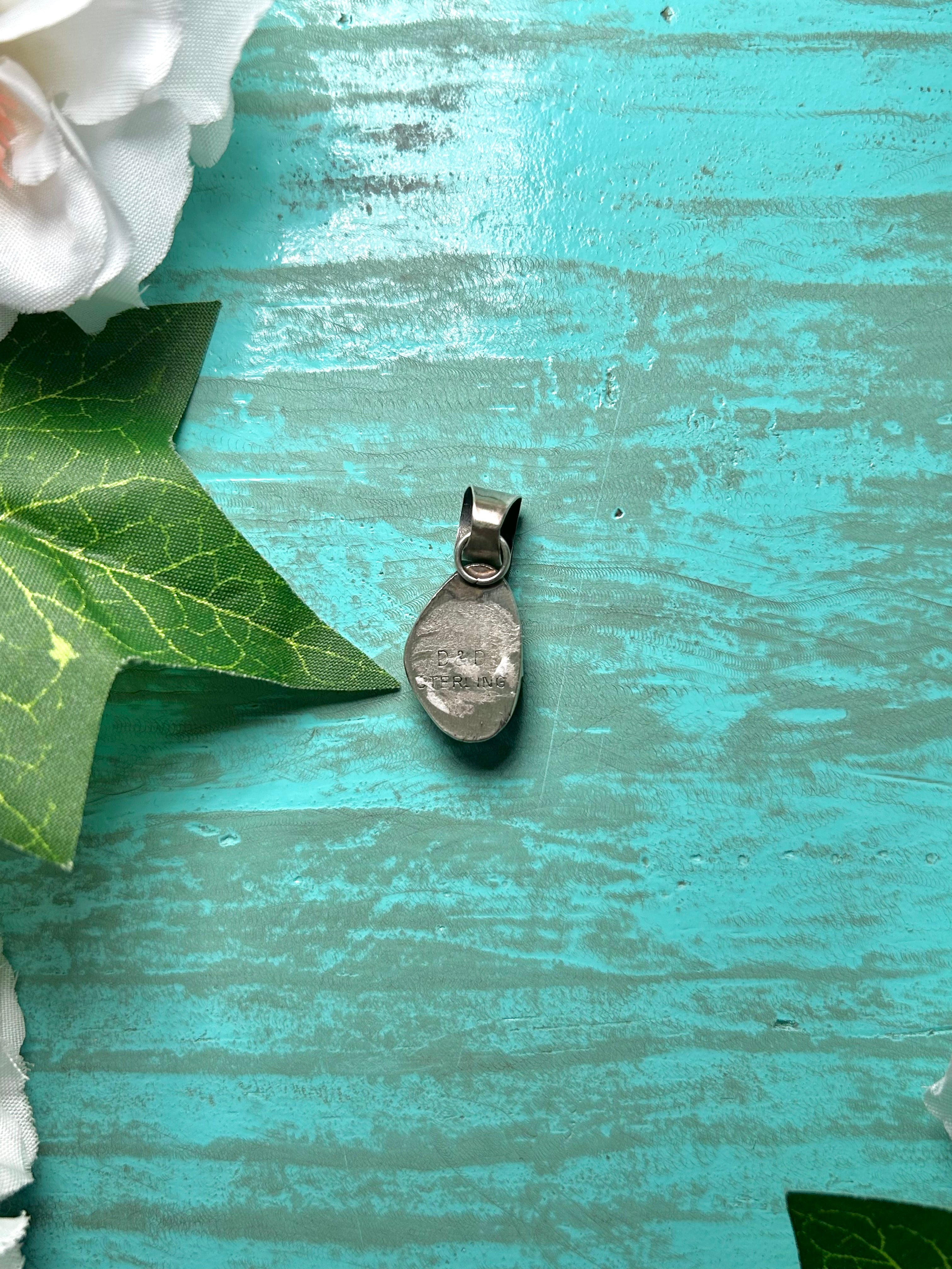 Navajo Made Blue Moon Turquoise & Sterling Silver Pendant. It measures 1 1/4 inches long and 1/2 of an inch wide. Pendant Only! Signed by the artist and stamped sterling silver.