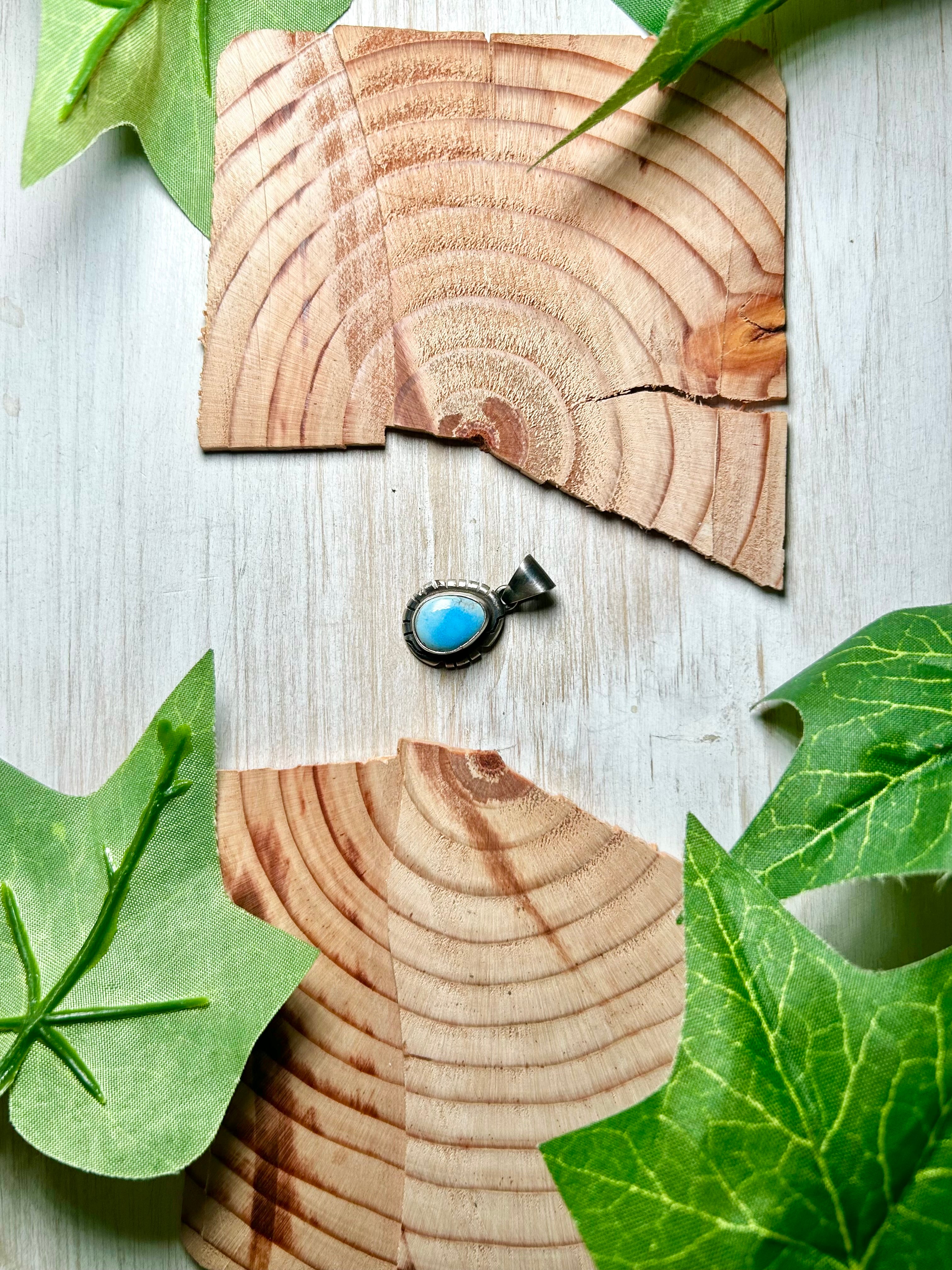 Navajo Made Golden Hill Turquoise & Sterling Silver Pendant. It measures 1 inch long and 3/4 of an inch wide. Pendant Only! Signed by the artist and stamped sterling silver.