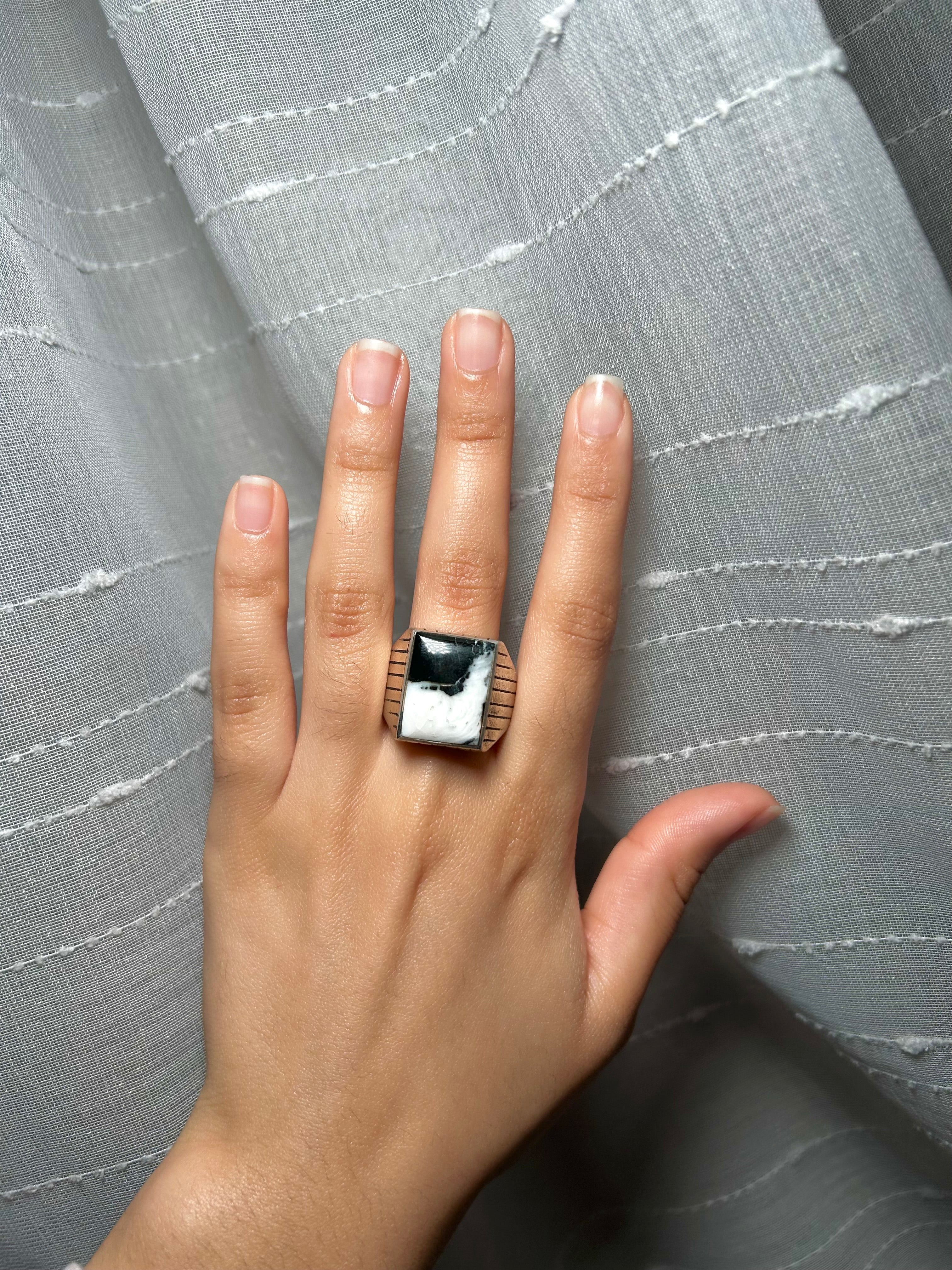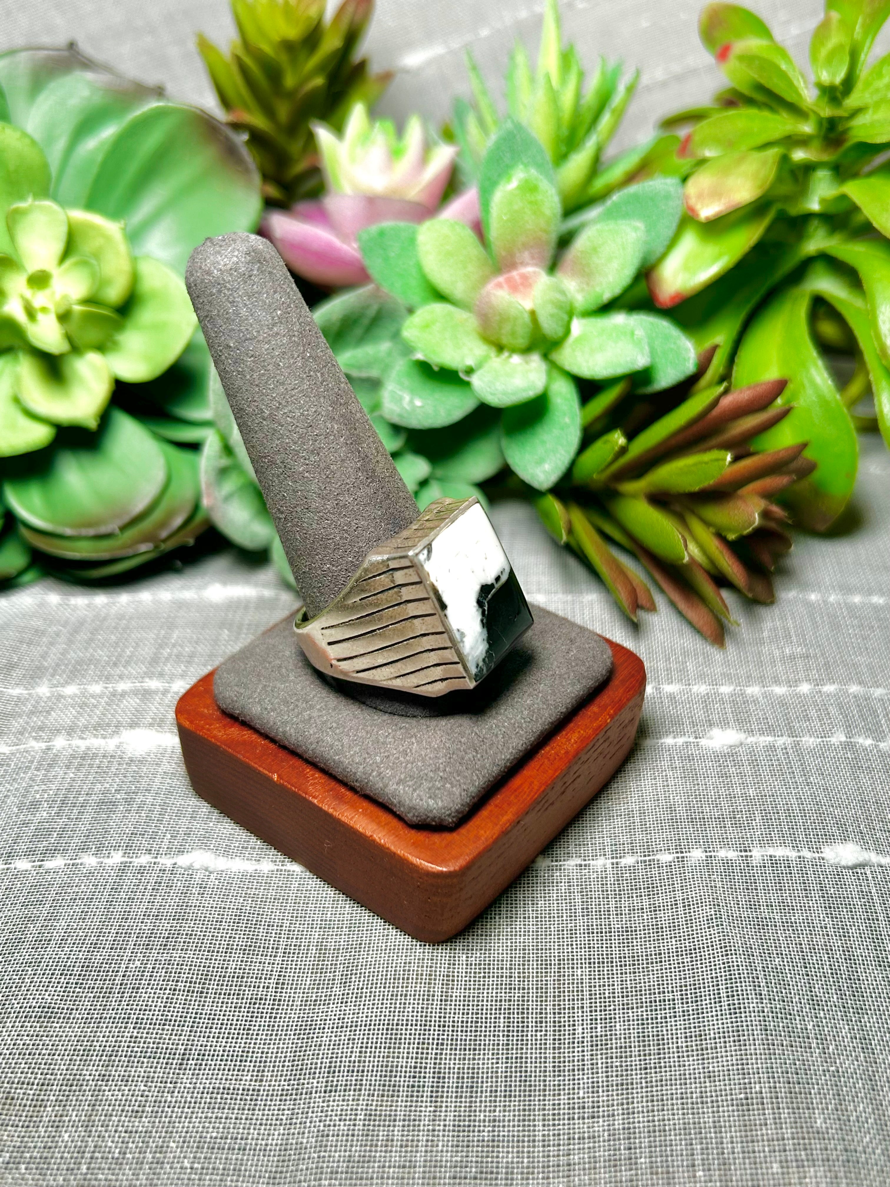 Navajo Made White Buffalo & Sterling Silver Ring Size 12.75