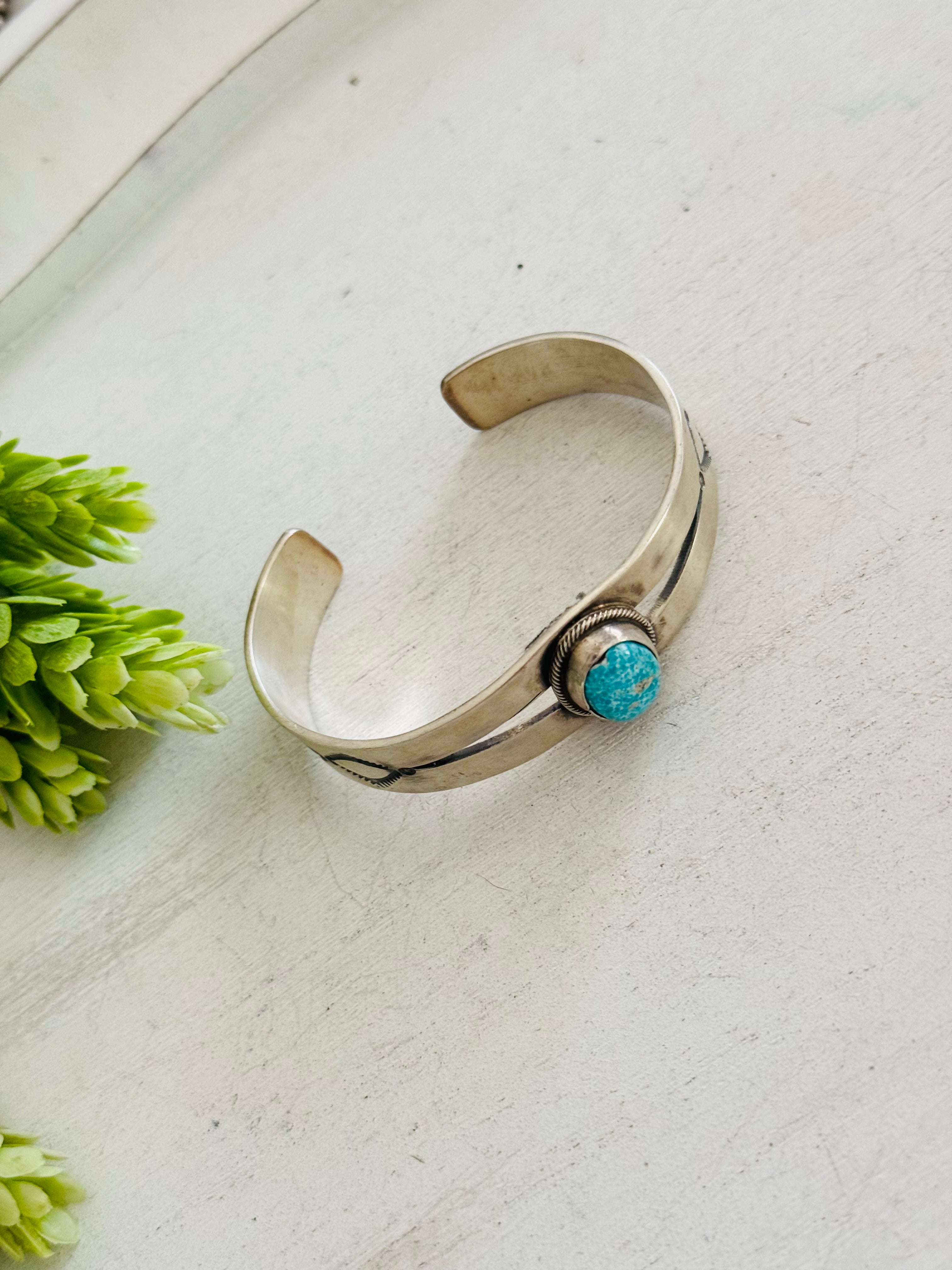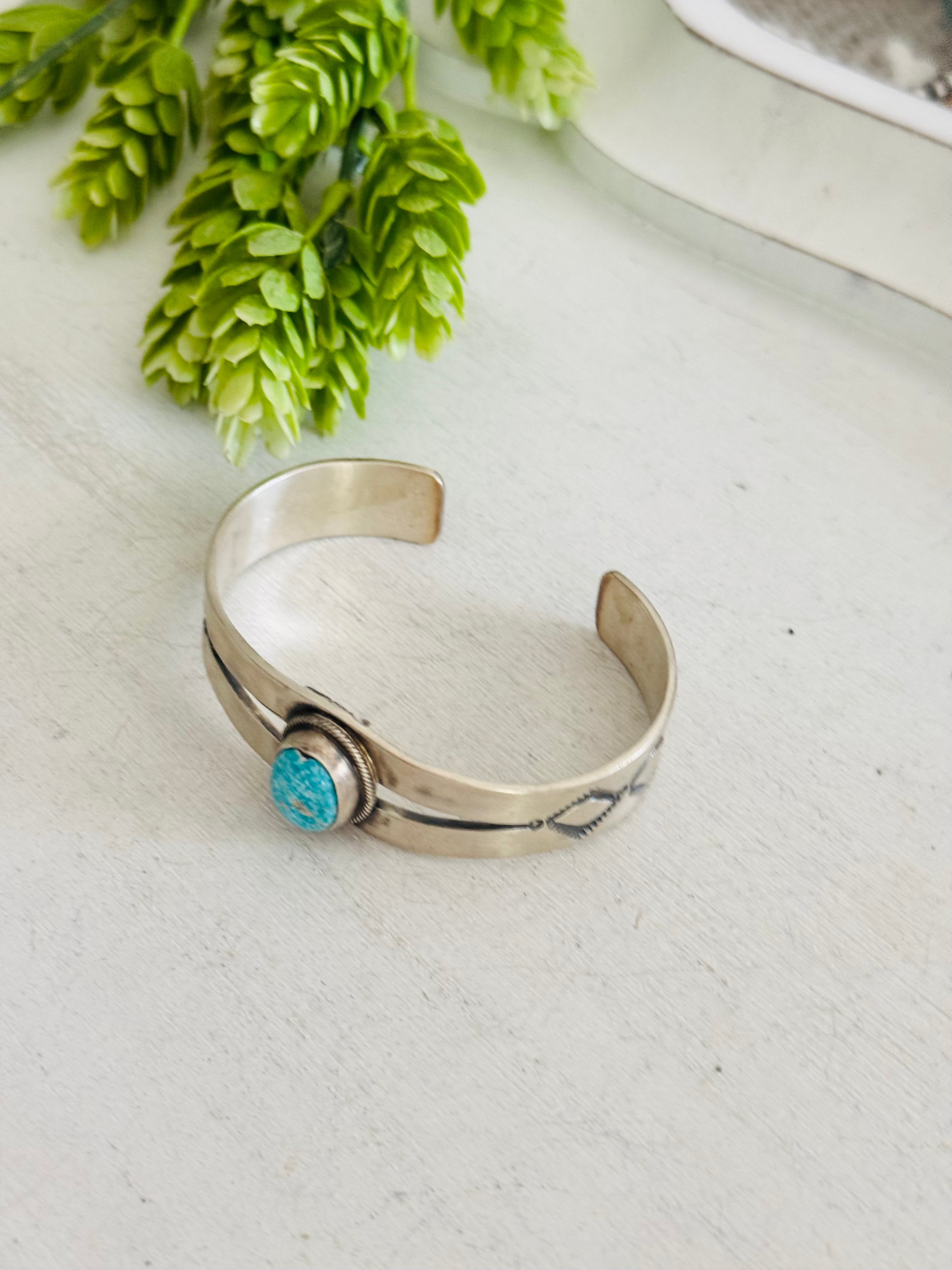 Navajo Made South Hill Turquoise & Sterling Silver Cuff Bracelet