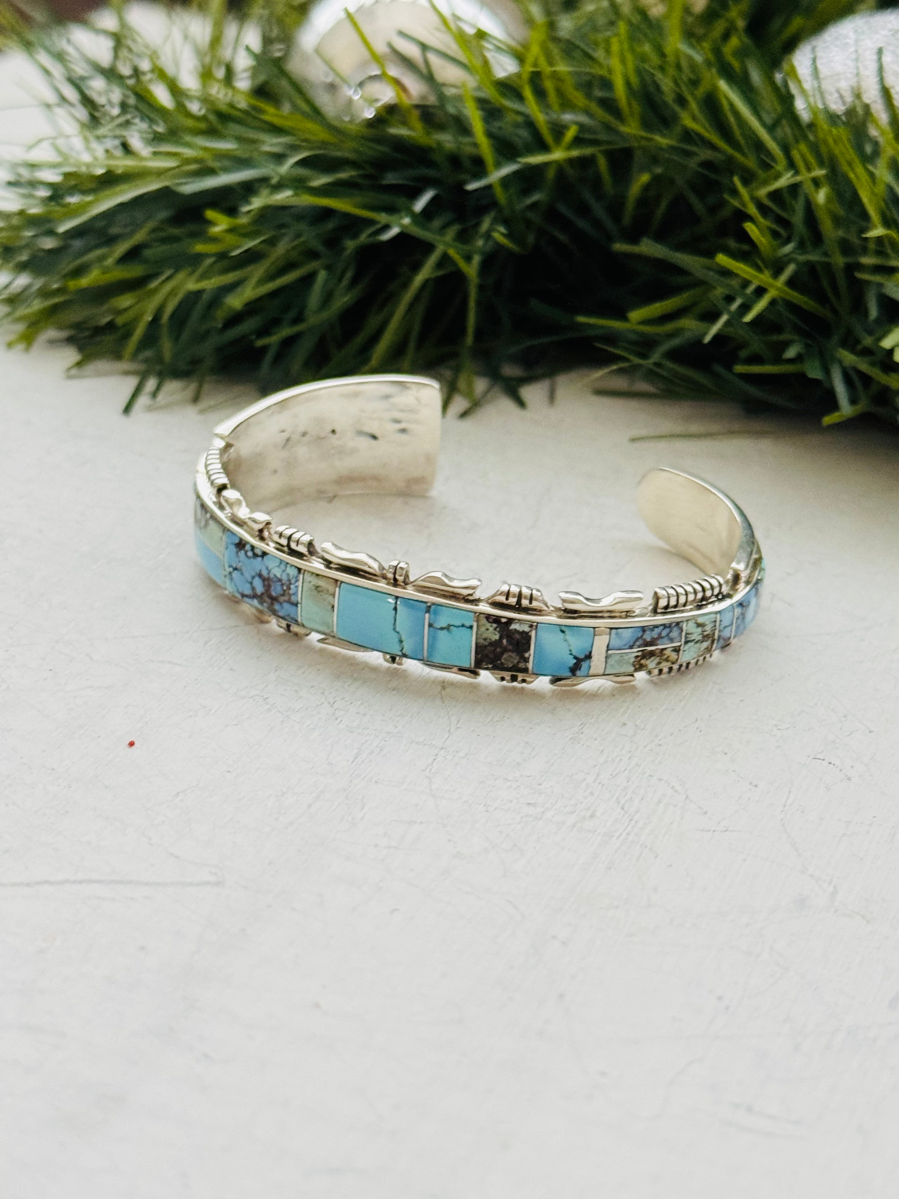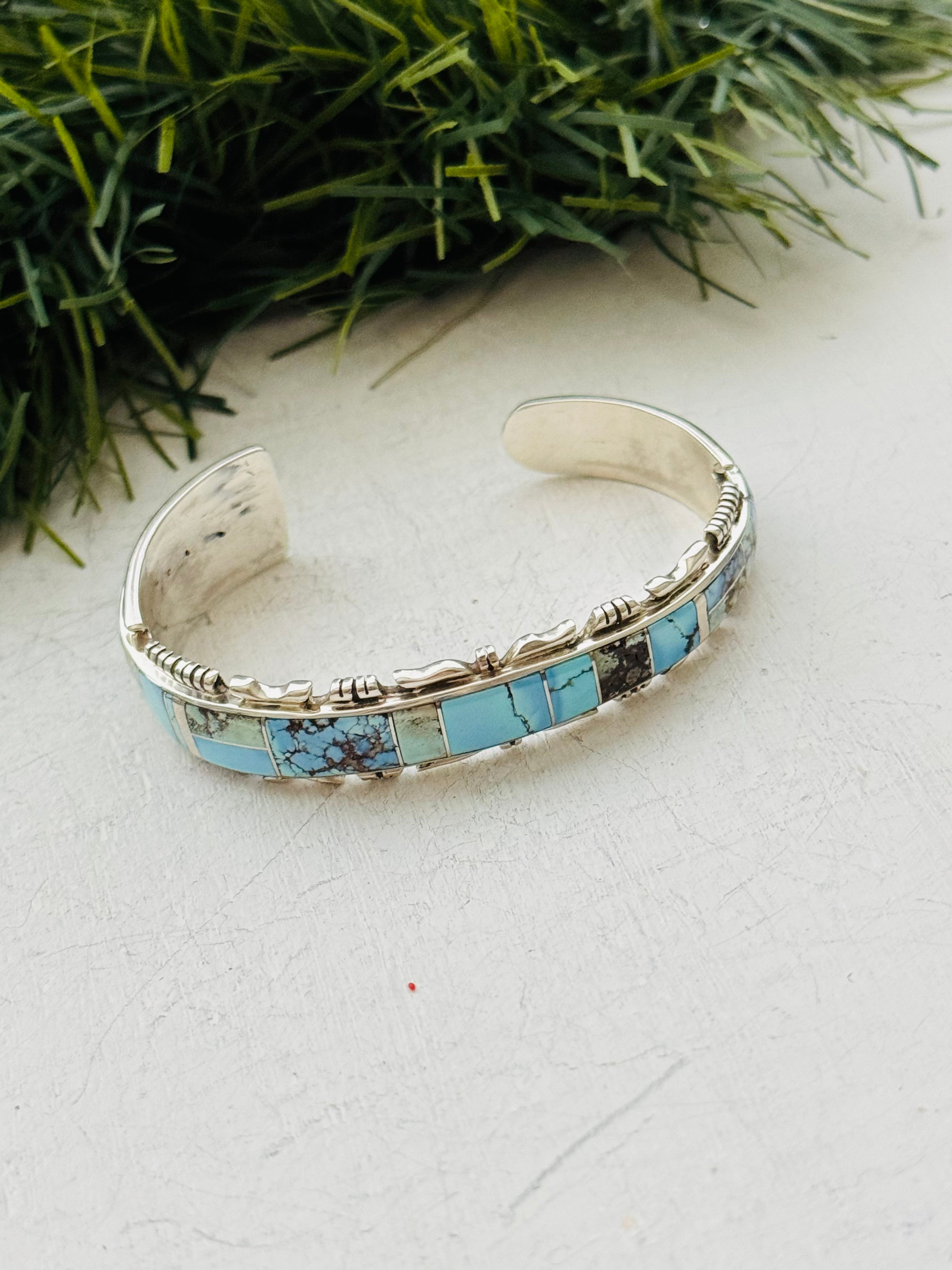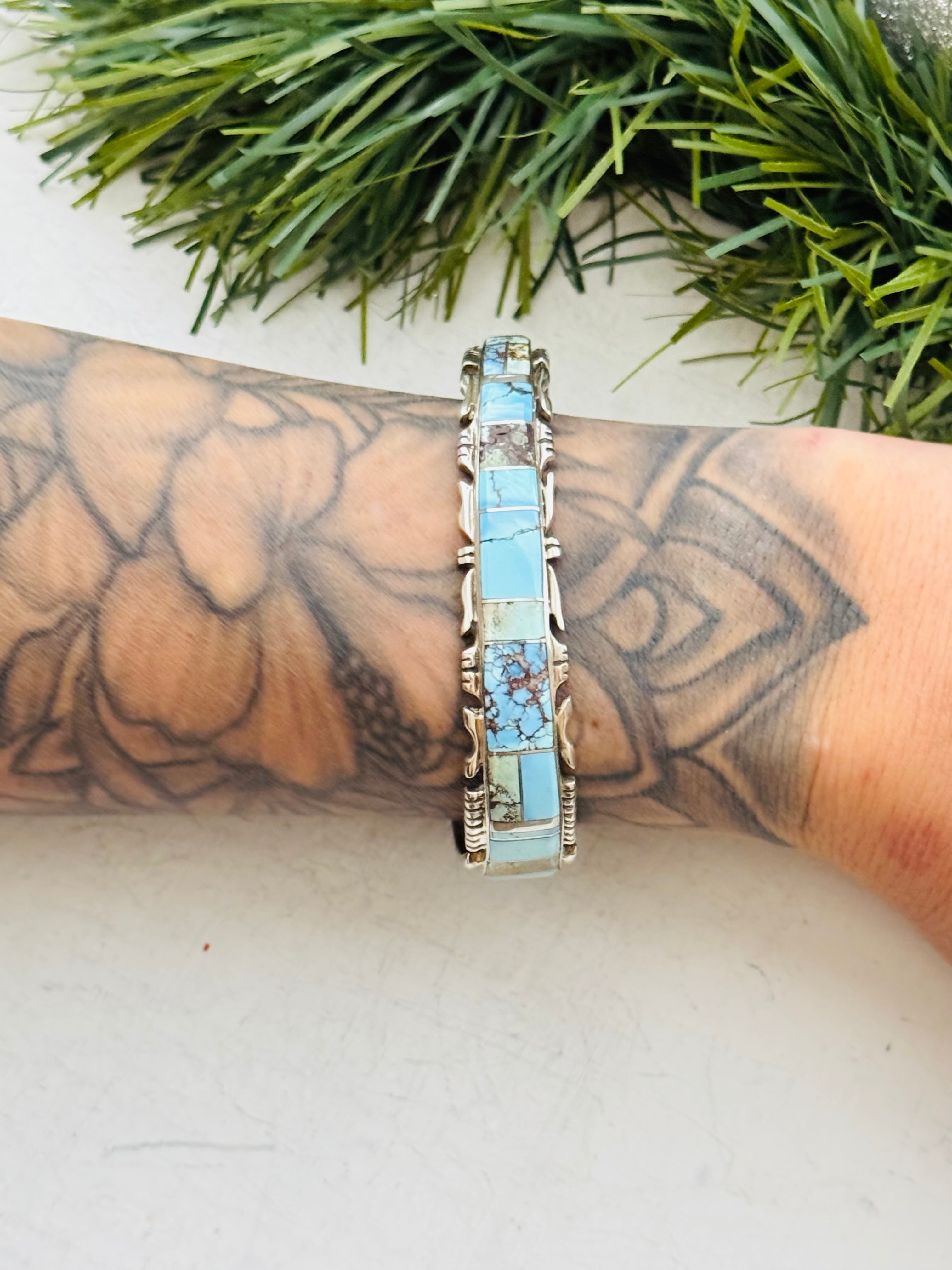 Navajo Made Golden Hills Turquoise & Sterling Silver Cuff Bracelet