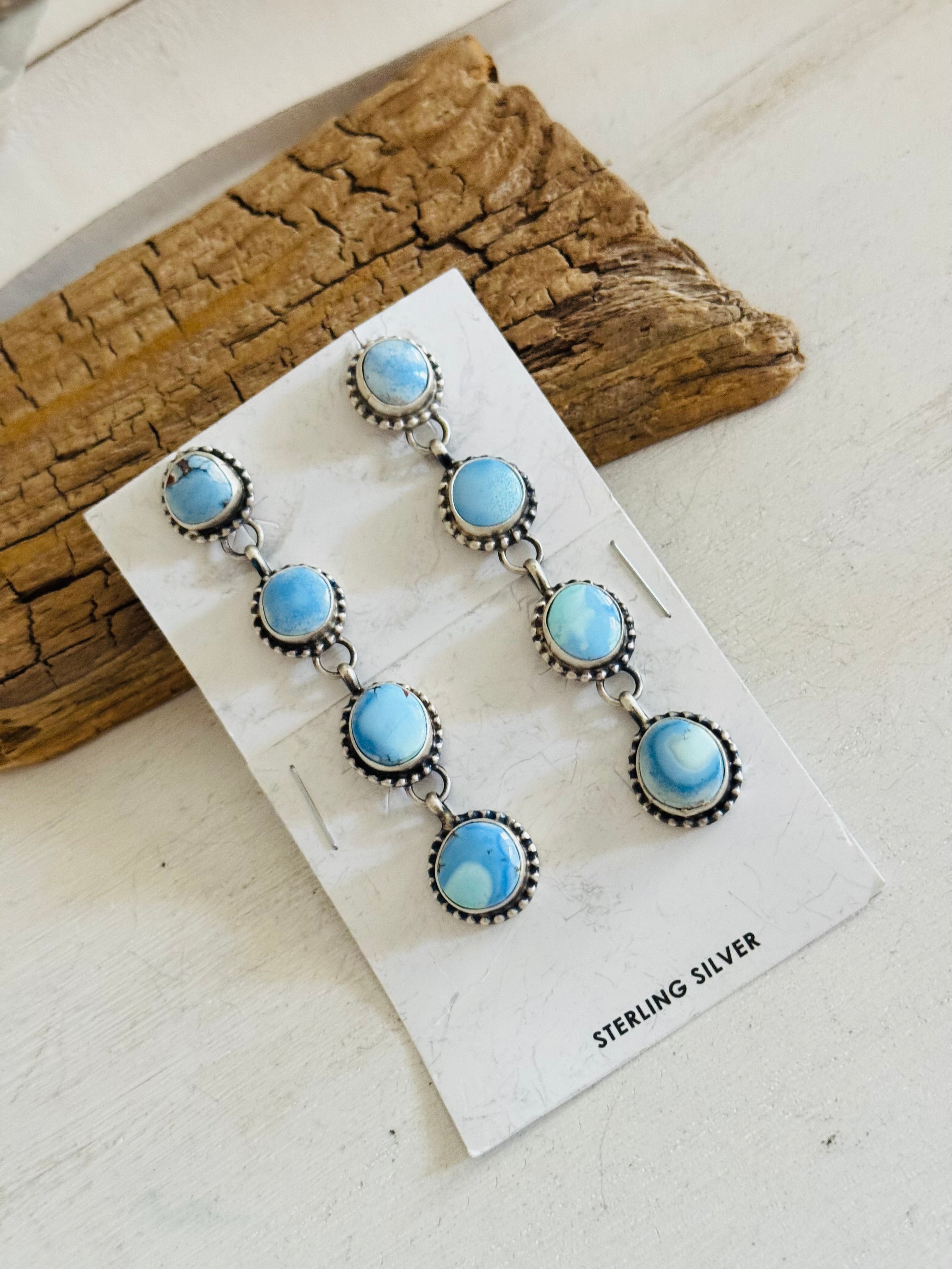 Navajo Made Golden Hills Turquoise & Sterling Silver Post Dangle Earrings