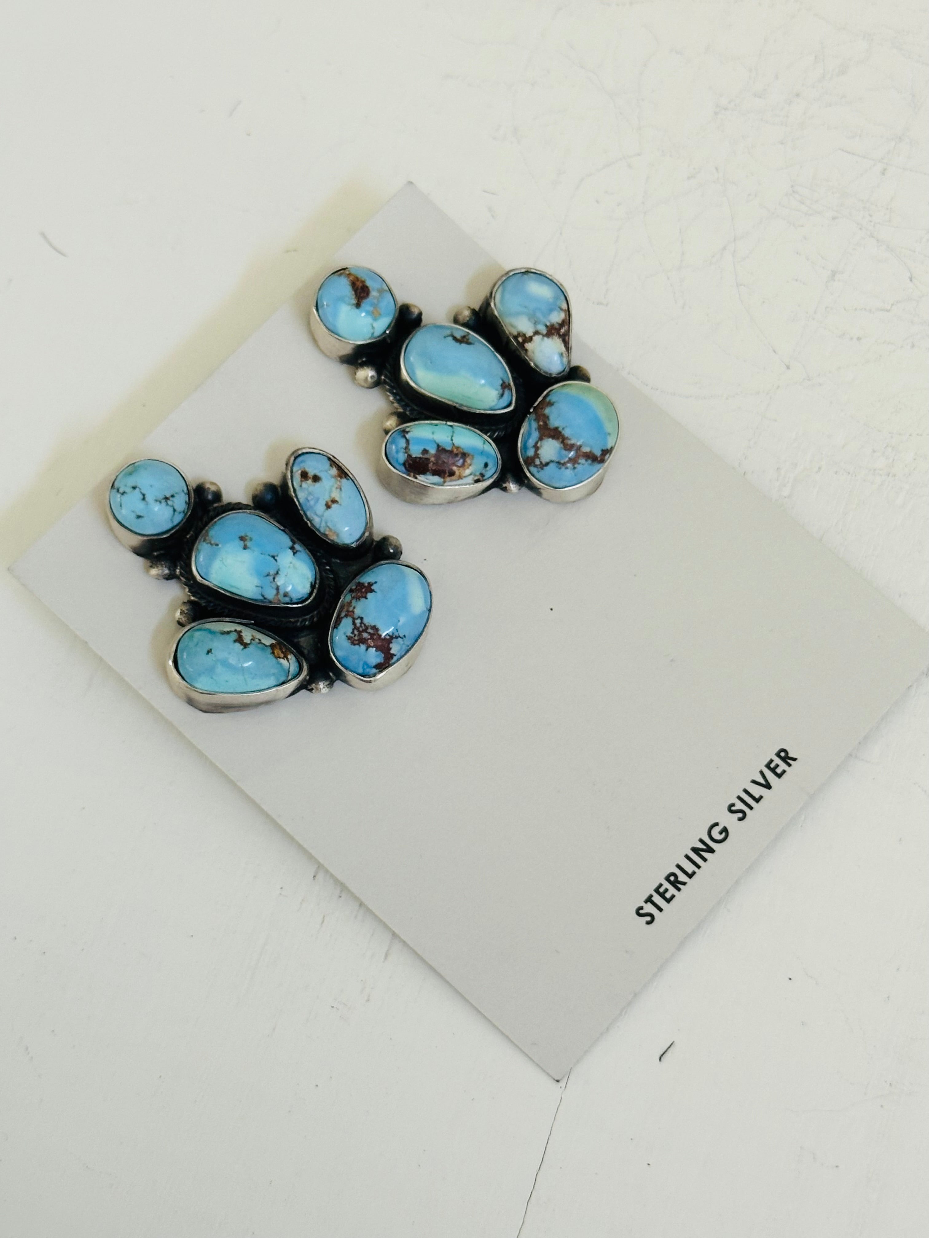 Navajo Made Golden Hills Turquoise & Sterling Silver Cluster Necklace Set
