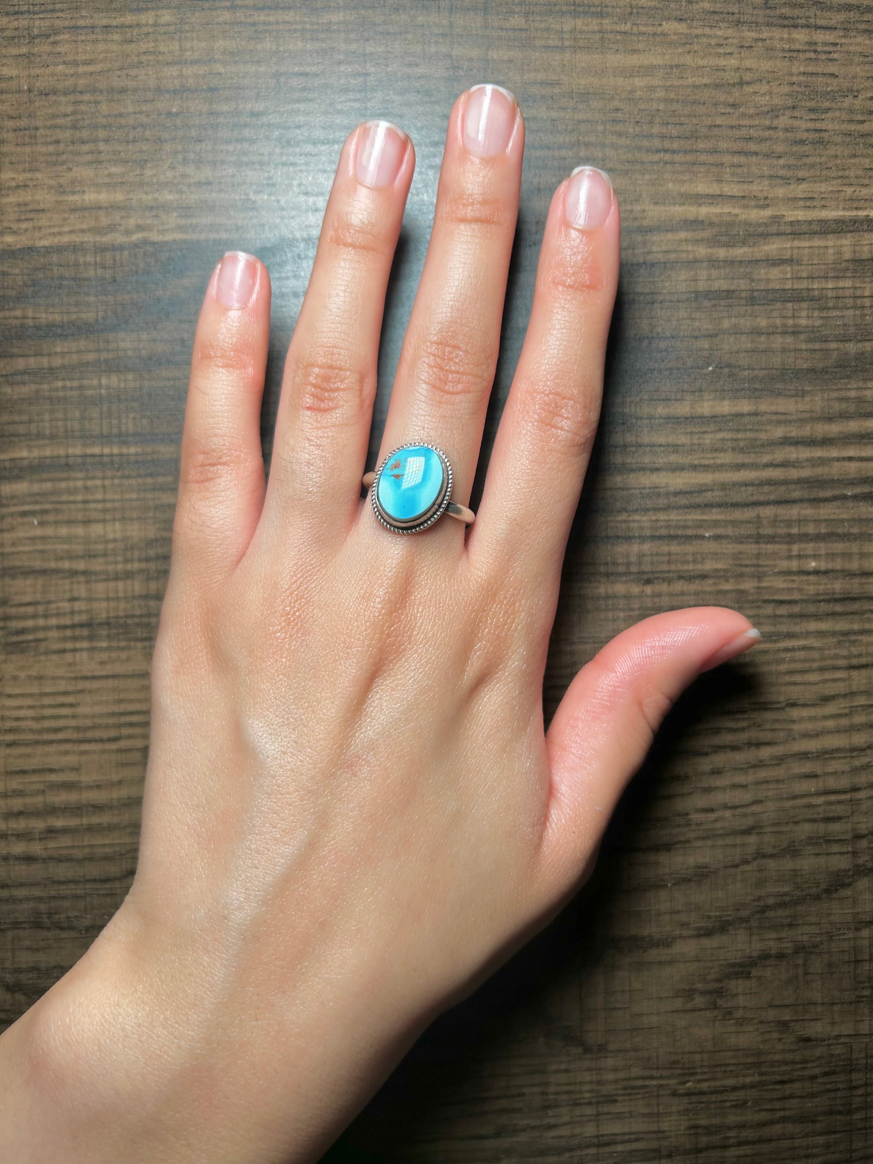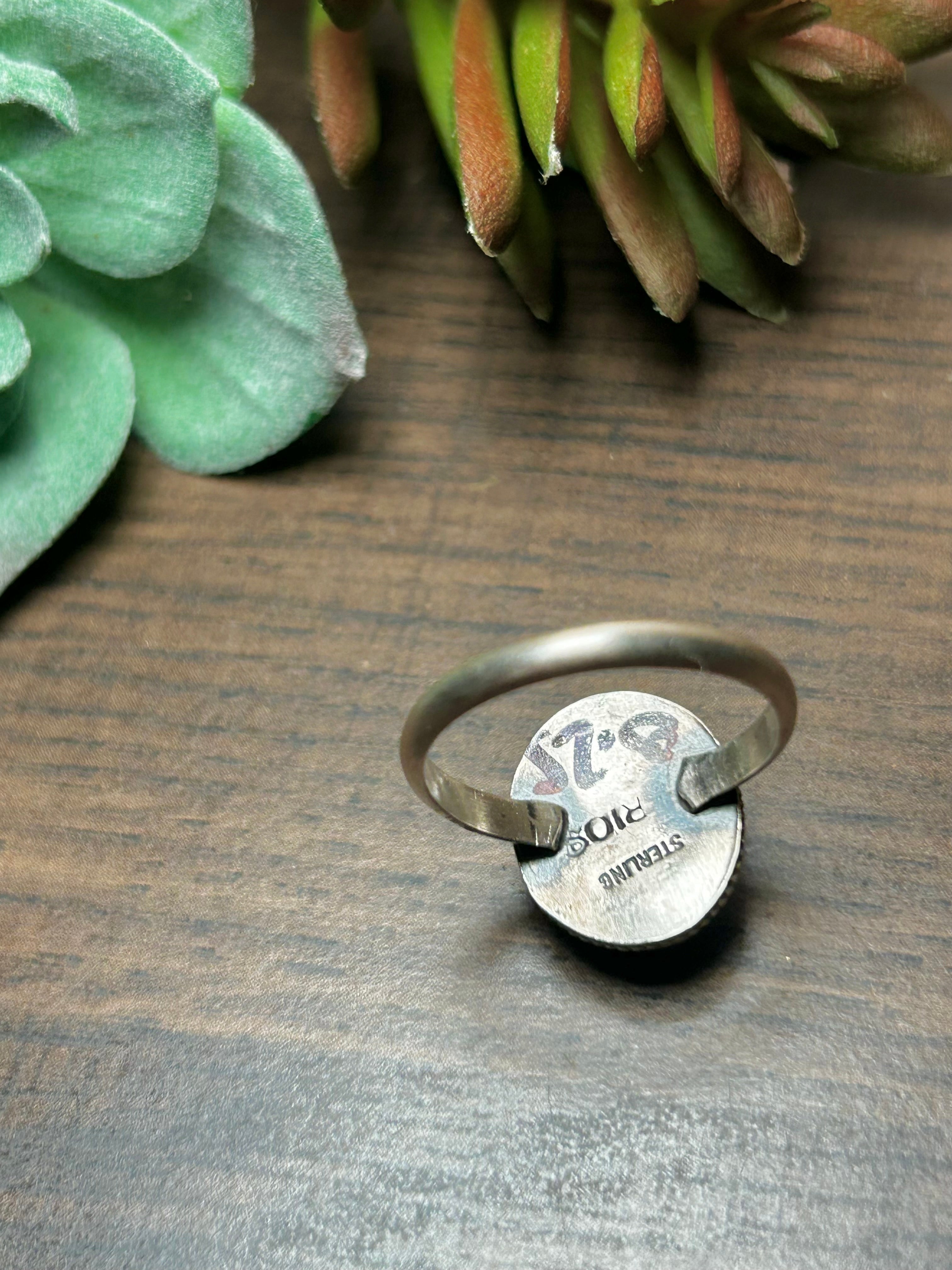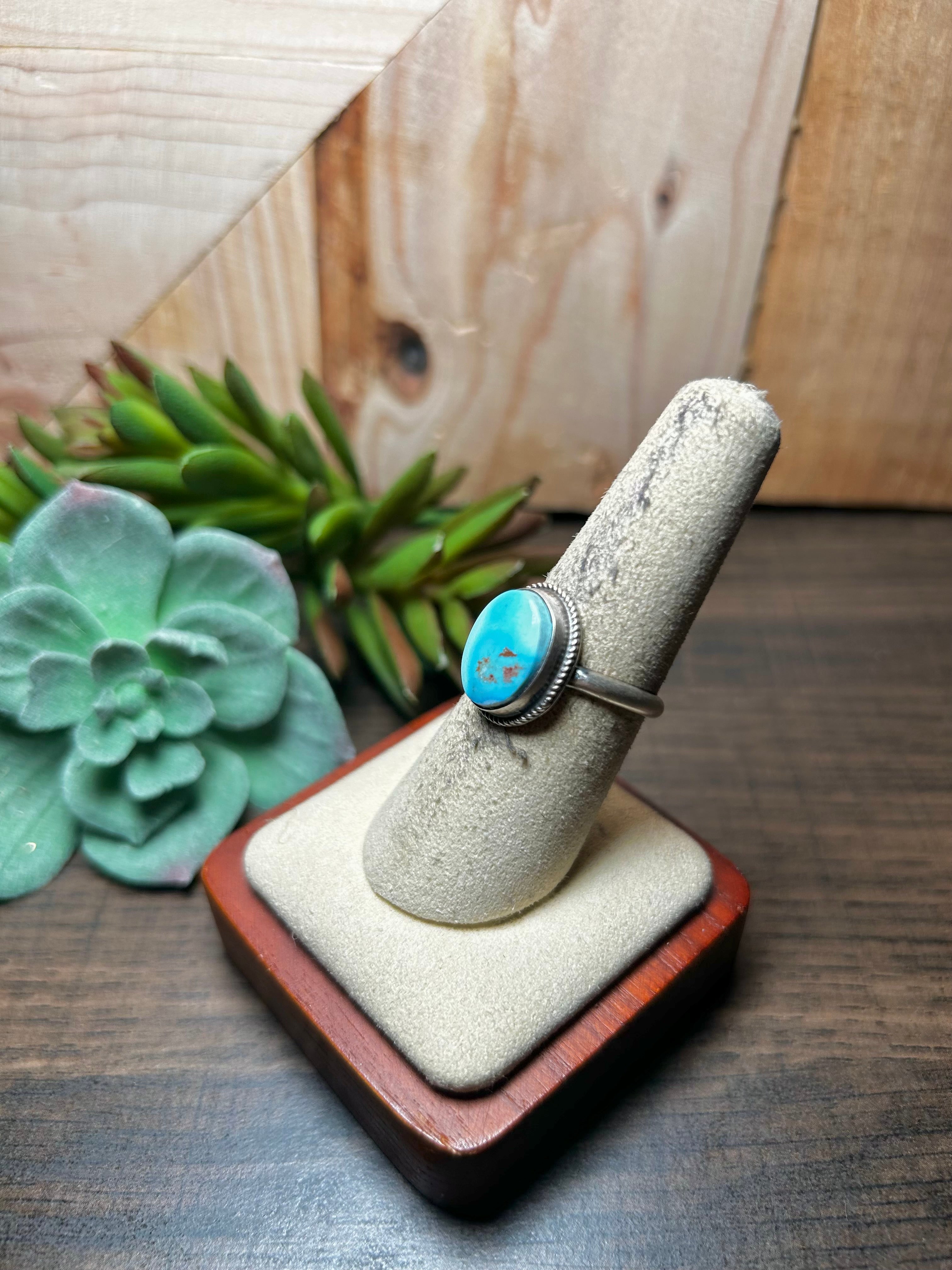 Navajo Made Golden Turquoise & Sterling Silver Ring Size 8.25