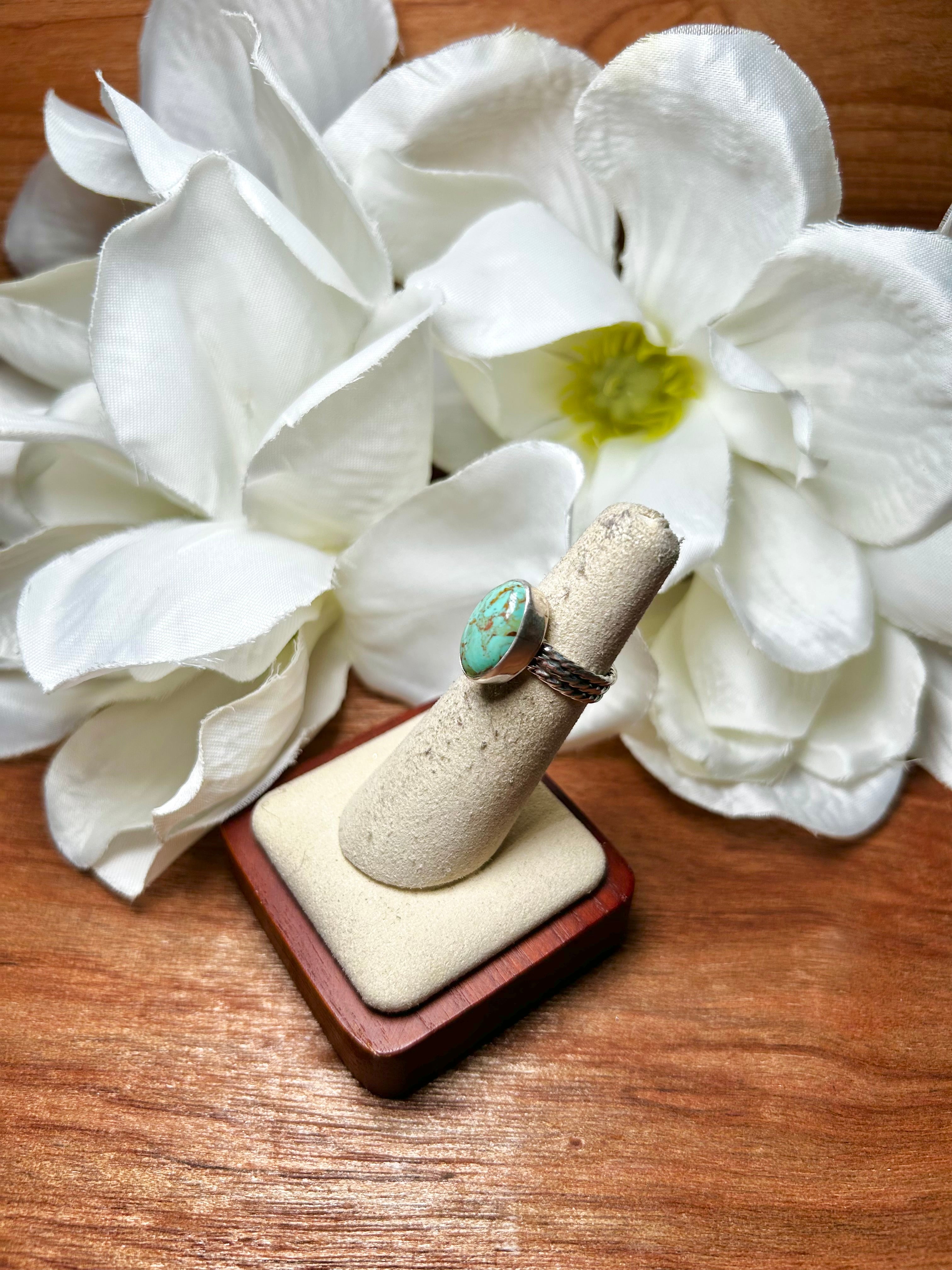 Navajo Made Green Turquoise & Sterling Silver Cluster Ring Size 4.5
